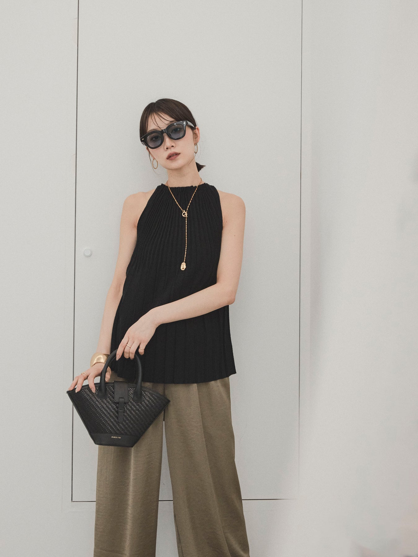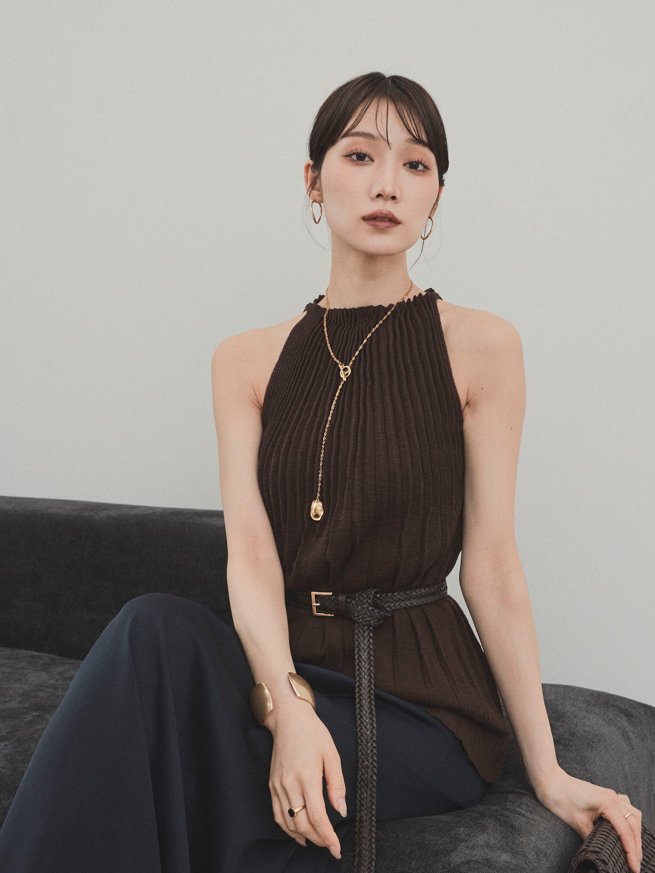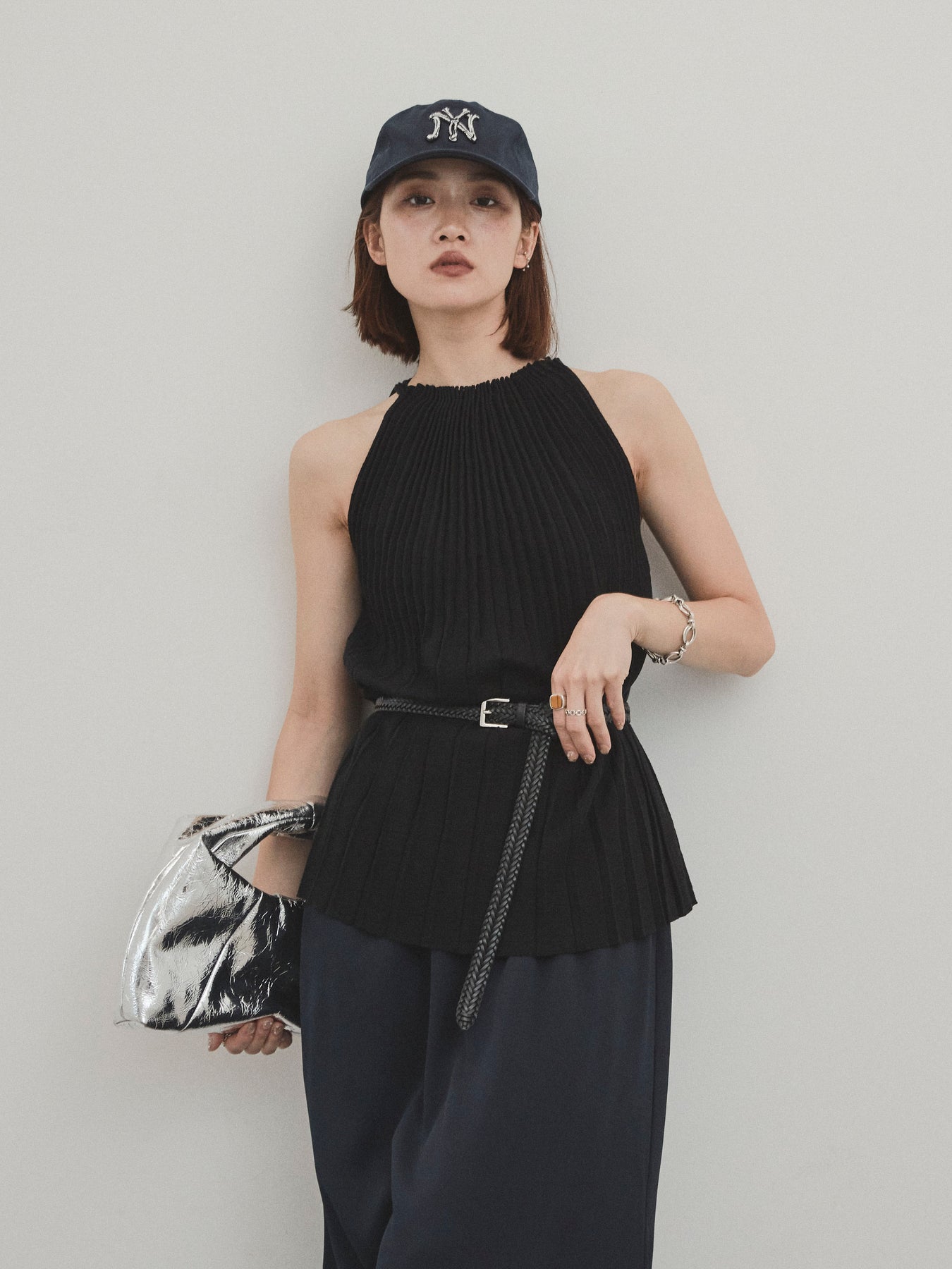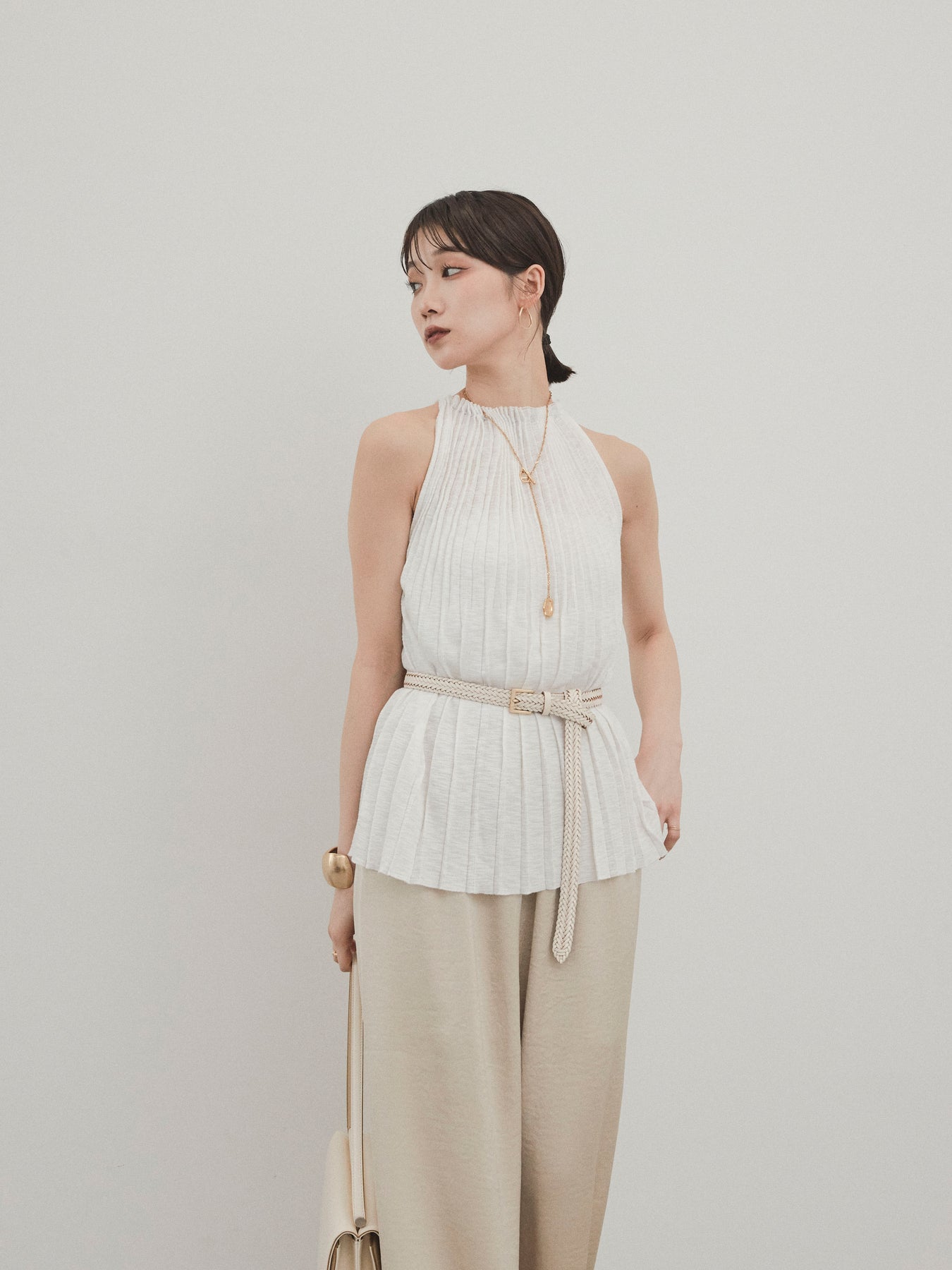 縦ラインが美しいプリーツ編みで仕立てた、大人の洗練を感じさせるニットキャミソール。 身体のラインを拾いすぎない絶妙なシルエットで、スタイルアップも叶える一枚です。 ややハイネック寄りのデザインと肩の露出を抑えた絶妙なアームホールのカットが、ヘルシーながらも上品な印象に。 さらりとした肌あたりのニット素材で、暑い季節でも快適に着用できます。 一枚での着用はもちろん、ジャケットやシャツのインナーとしても活躍する万能トップス。 カジュアルからきれいめまで、幅広いコーディネートに対応できるアイテムです。