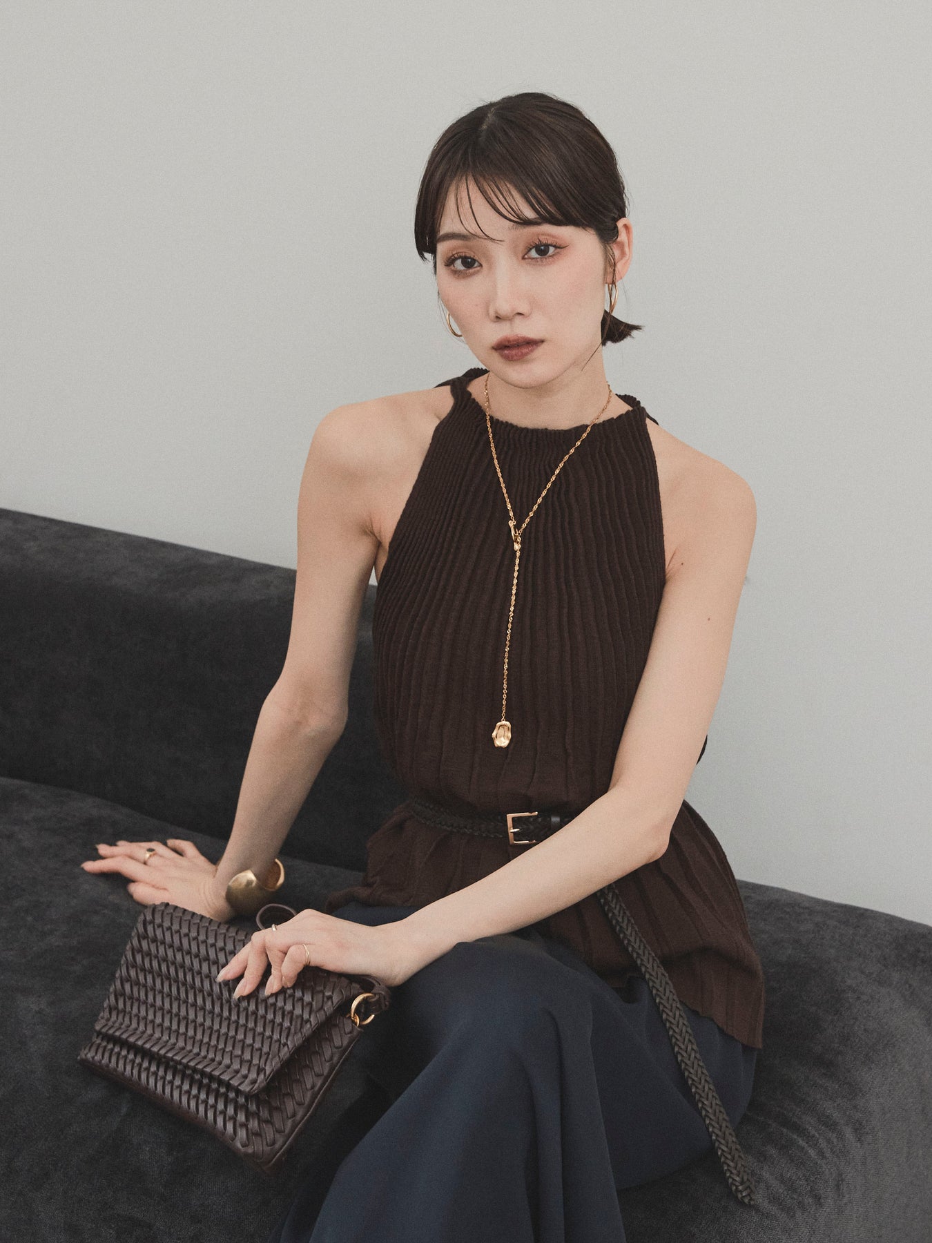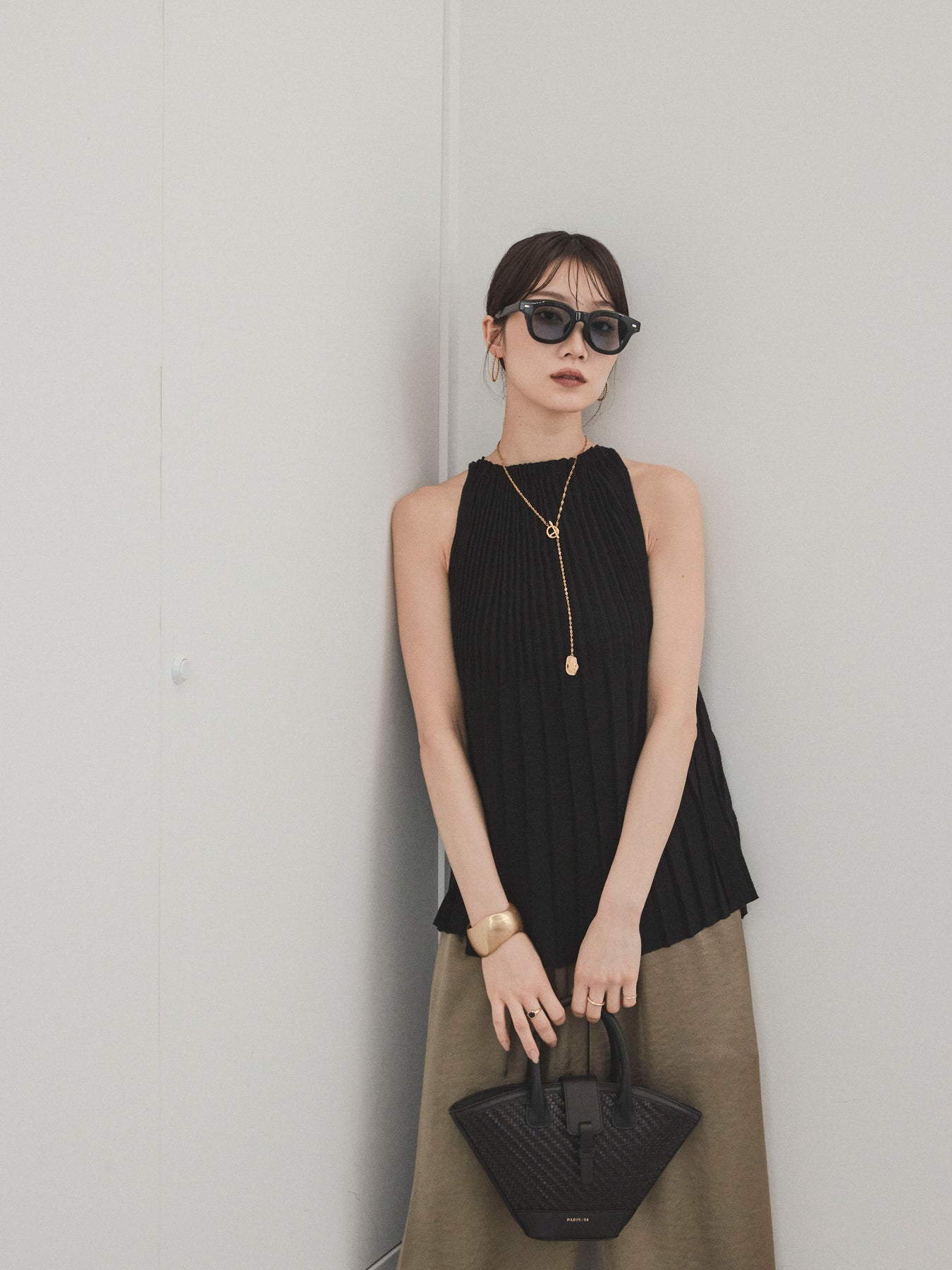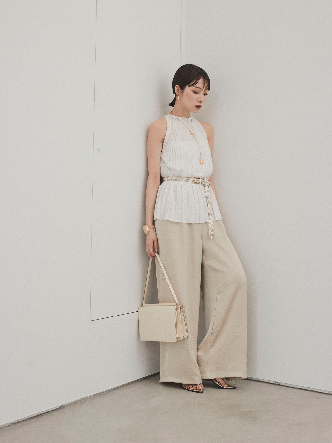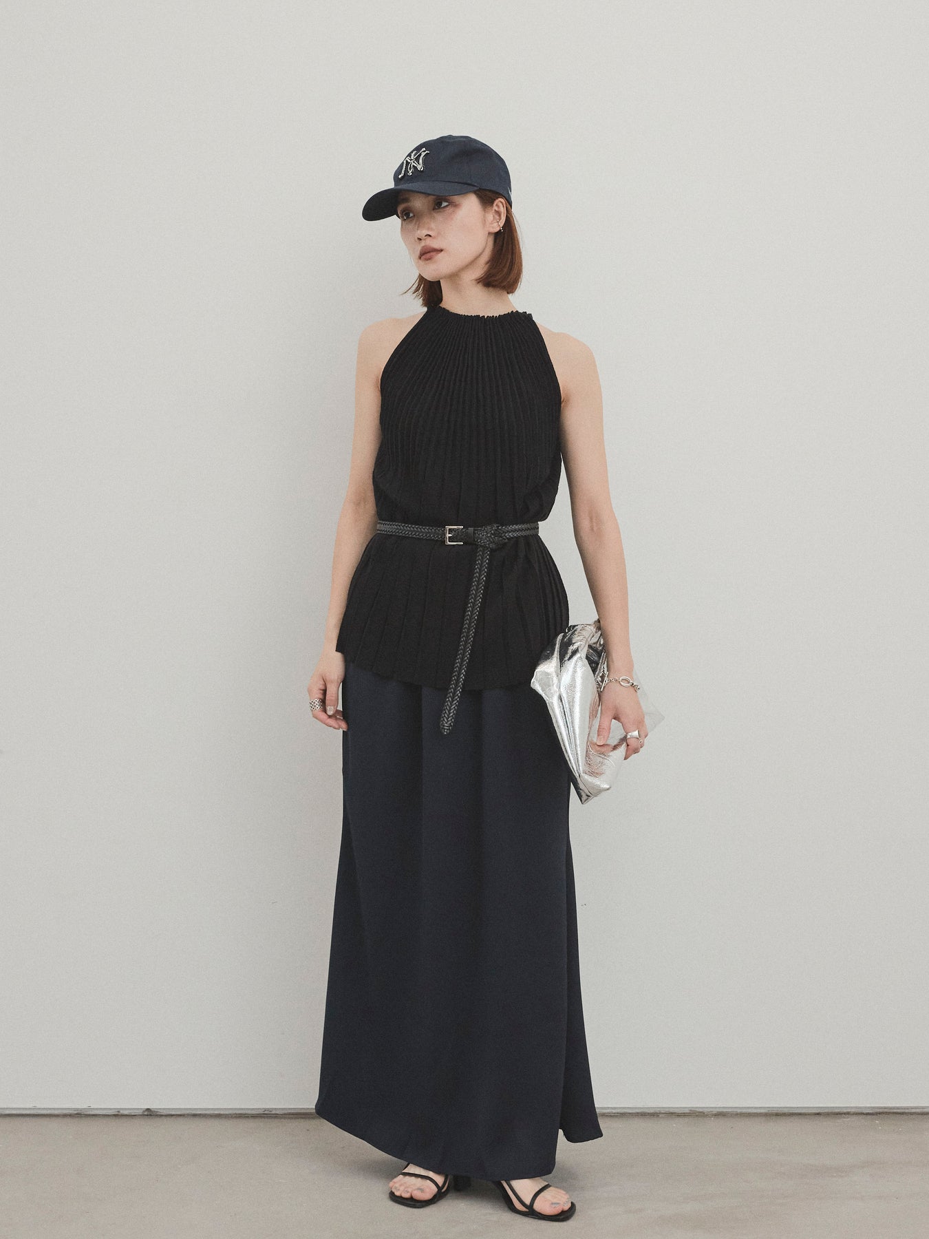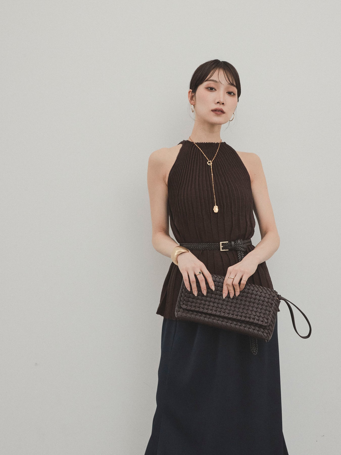縦ラインが美しいプリーツ編みで仕立てた、大人の洗練を感じさせるニットキャミソール。 身体のラインを拾いすぎない絶妙なシルエットで、スタイルアップも叶える一枚です。 ややハイネック寄りのデザインと肩の露出を抑えた絶妙なアームホールのカットが、ヘルシーながらも上品な印象に。 さらりとした肌あたりのニット素材で、暑い季節でも快適に着用できます。 一枚での着用はもちろん、ジャケットやシャツのインナーとしても活躍する万能トップス。 カジュアルからきれいめまで、幅広いコーディネートに対応できるアイテムです。