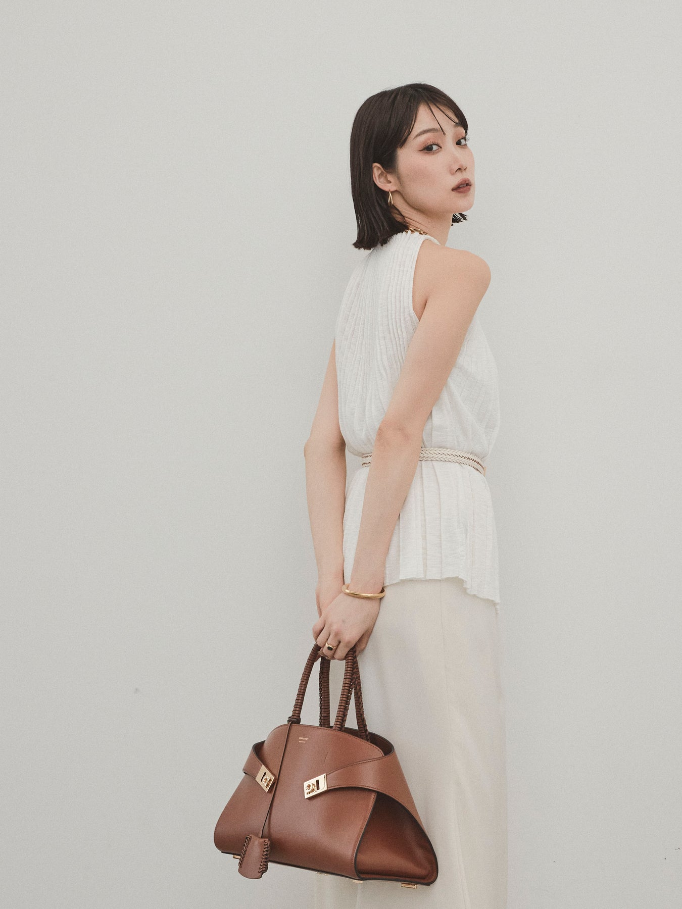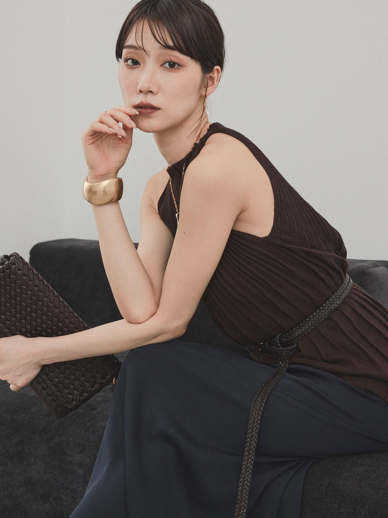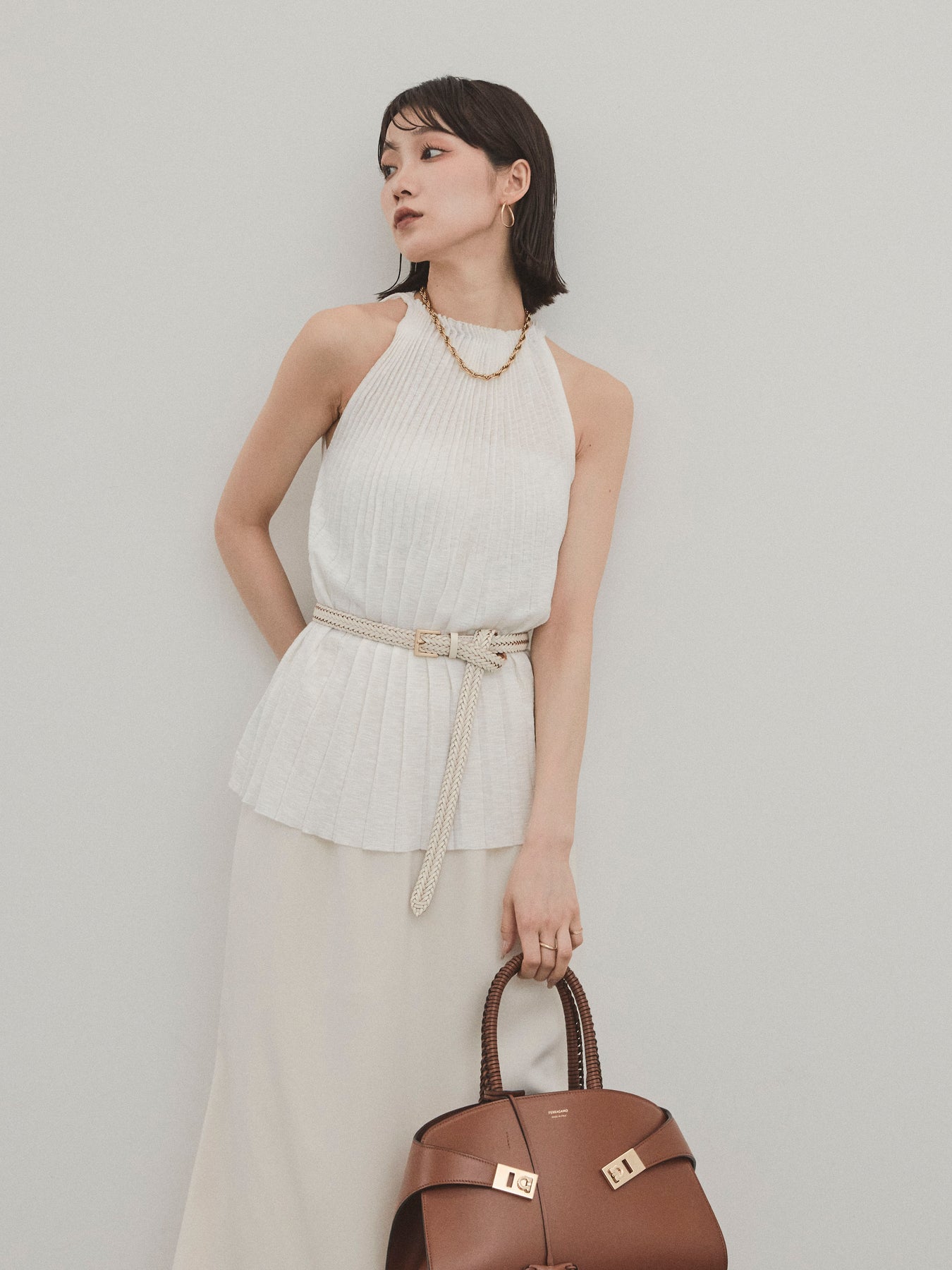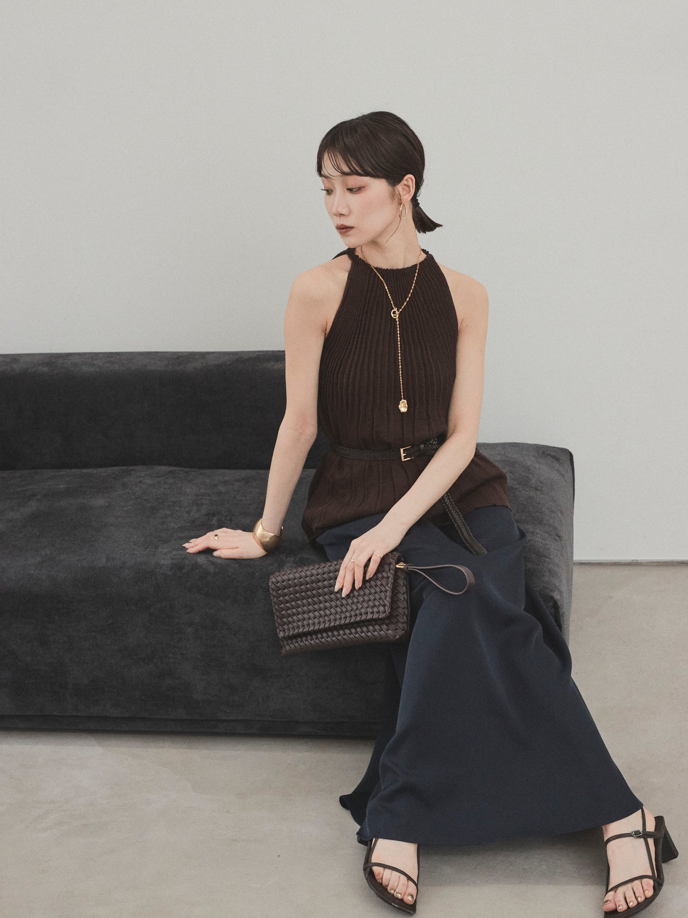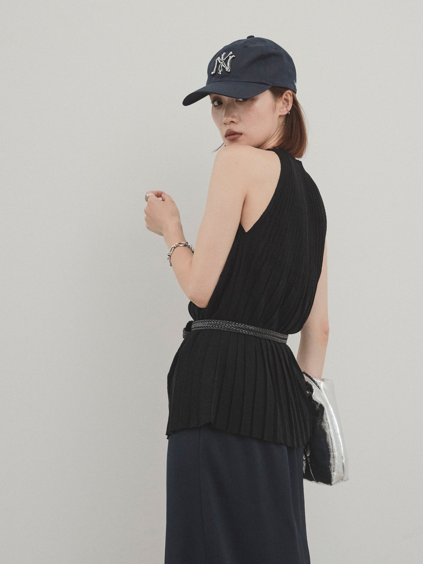 縦ラインが美しいプリーツ編みで仕立てた、大人の洗練を感じさせるニットキャミソール。 身体のラインを拾いすぎない絶妙なシルエットで、スタイルアップも叶える一枚です。 ややハイネック寄りのデザインと肩の露出を抑えた絶妙なアームホールのカットが、ヘルシーながらも上品な印象に。 さらりとした肌あたりのニット素材で、暑い季節でも快適に着用できます。 一枚での着用はもちろん、ジャケットやシャツのインナーとしても活躍する万能トップス。 カジュアルからきれいめまで、幅広いコーディネートに対応できるアイテムです。