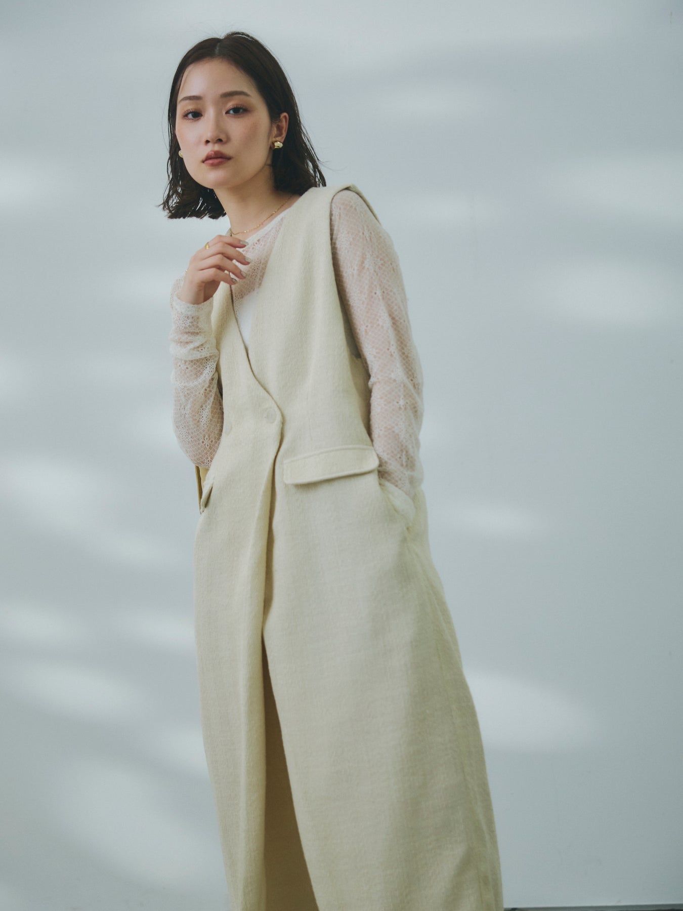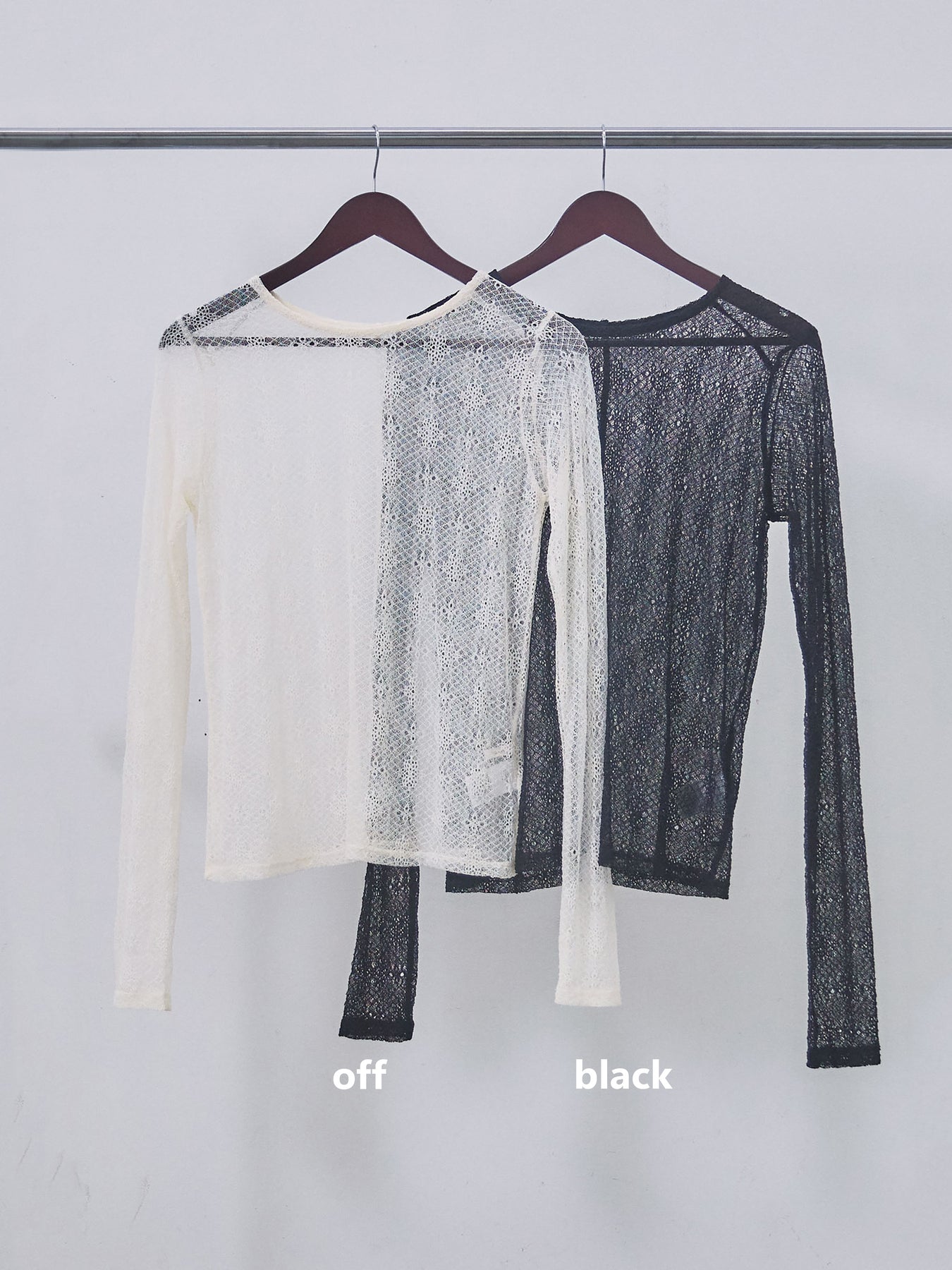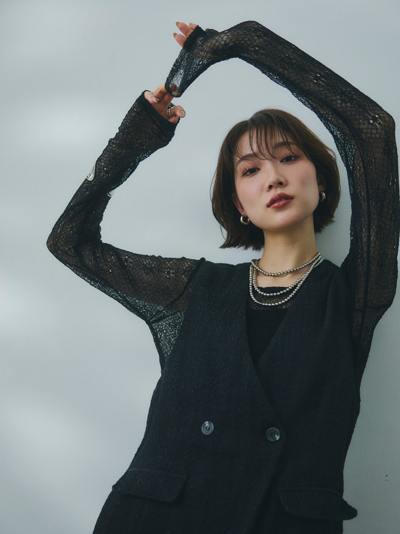 繊細なネットレースが軽やかな抜け感を演出するロングスリーブトップス。細やかな編み柄がさりげない表情を生み、シンプルながらもスタイリングに奥行きをプラスします。程よい透け感が女性らしい柔らかな印象を引き立て、インナーとのレイヤードでさまざまな着こなしを楽しめる一着。コンパクトなシルエットでボディラインに自然に沿い、すっきりとしたバランスに仕上がっています。デニムやスラックスとのカジュアルスタイルから、ワンピースのインナー使いまで幅広く活躍するアイテムです。 ※ボトムス、キャミソール(インナー)以外の商品は一律でインナーは付属していません。