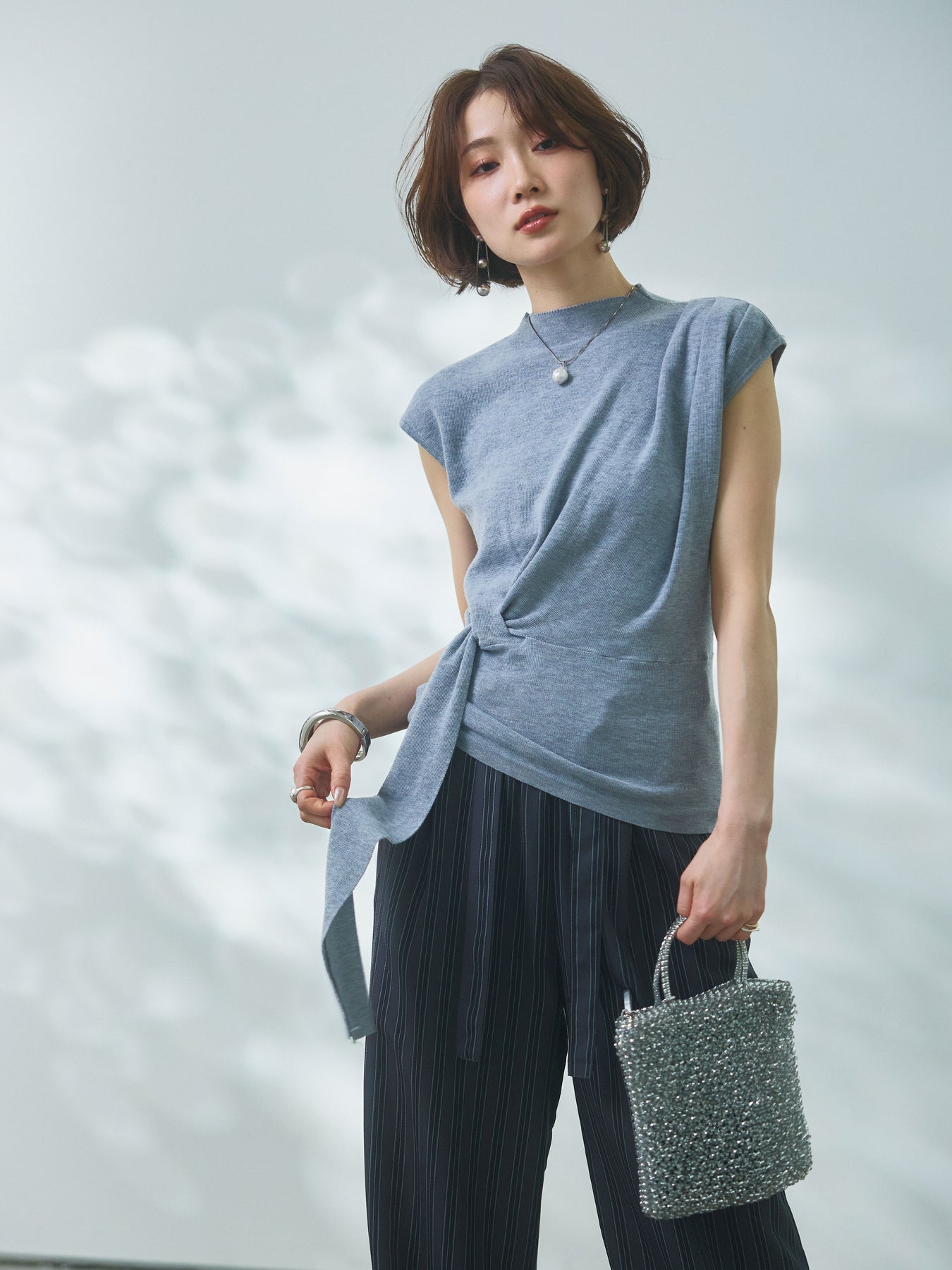 ◆ [予約]サイドベルトボトルネックノースリーブニットトップス