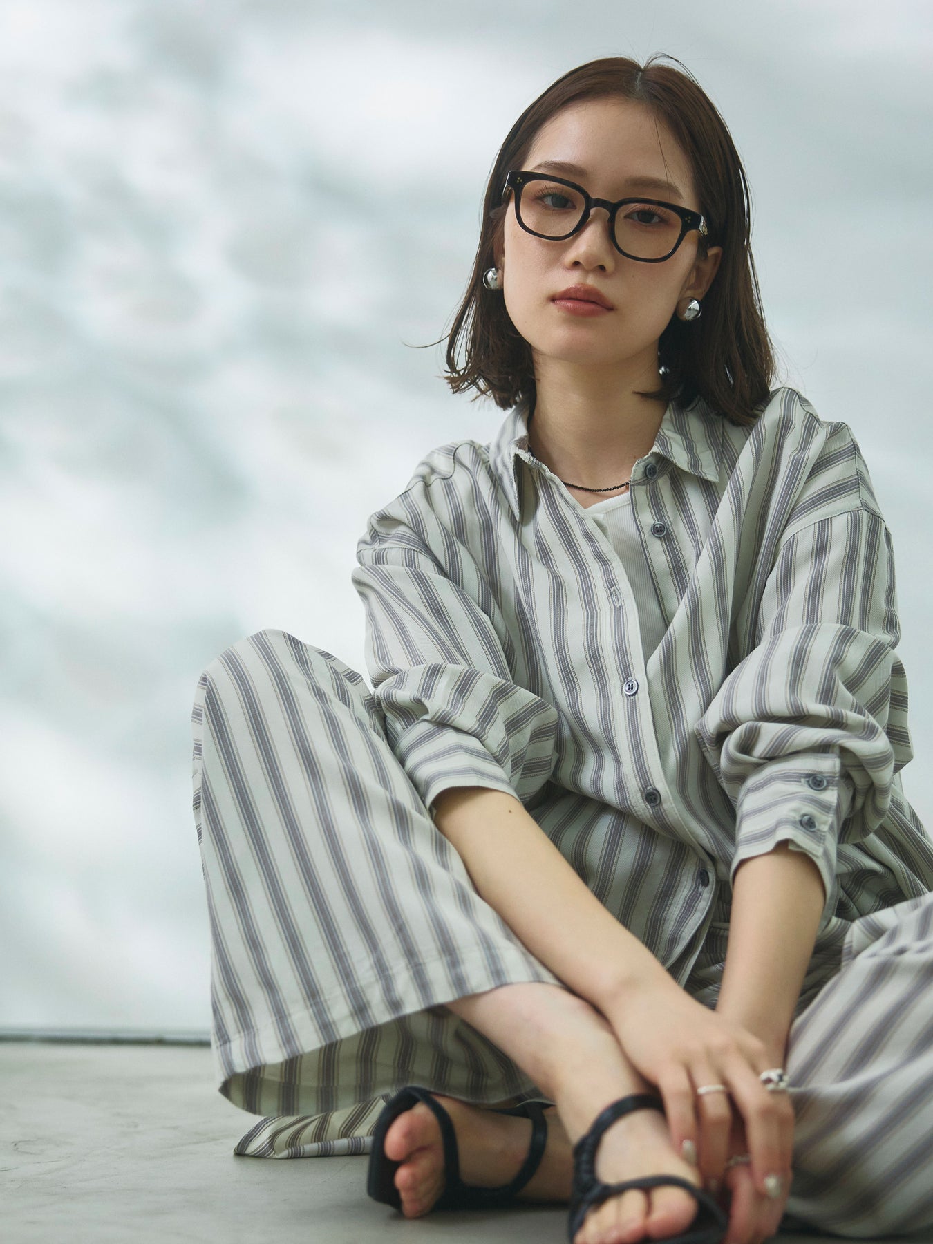縦ラインを強調するストライプ柄が印象的なオーバーシャツ。程よくゆとりのあるシルエットが抜け感を演出し、さらっと羽織るだけでこなれたスタイリングが完成します。軽やかな素材感で着心地も良く、デイリーに取り入れやすい一着。ヒップにかかる丈感で体のラインを拾いにくく、バランスよく着用できるのも魅力です。前を閉じてトップスとしてはもちろん、羽織りとしても活躍し、同素材のボトムスと合わせたセットアップ風の着こなしもおすすめ。カジュアルからきれいめまで幅広いスタイリングに対応するアイテムです。 ※ボトムス、キャミソール(インナー)以外の商品は一律でインナーは付属していません。