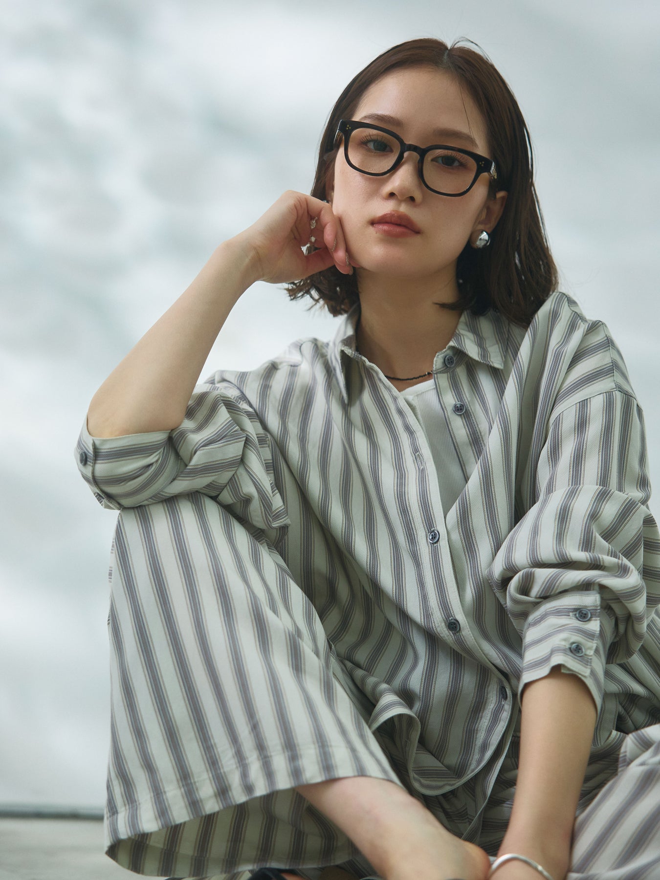 縦ラインを強調するストライプ柄が印象的なオーバーシャツ。程よくゆとりのあるシルエットが抜け感を演出し、さらっと羽織るだけでこなれたスタイリングが完成します。軽やかな素材感で着心地も良く、デイリーに取り入れやすい一着。ヒップにかかる丈感で体のラインを拾いにくく、バランスよく着用できるのも魅力です。前を閉じてトップスとしてはもちろん、羽織りとしても活躍し、同素材のボトムスと合わせたセットアップ風の着こなしもおすすめ。カジュアルからきれいめまで幅広いスタイリングに対応するアイテムです。 ※ボトムス、キャミソール(インナー)以外の商品は一律でインナーは付属していません。