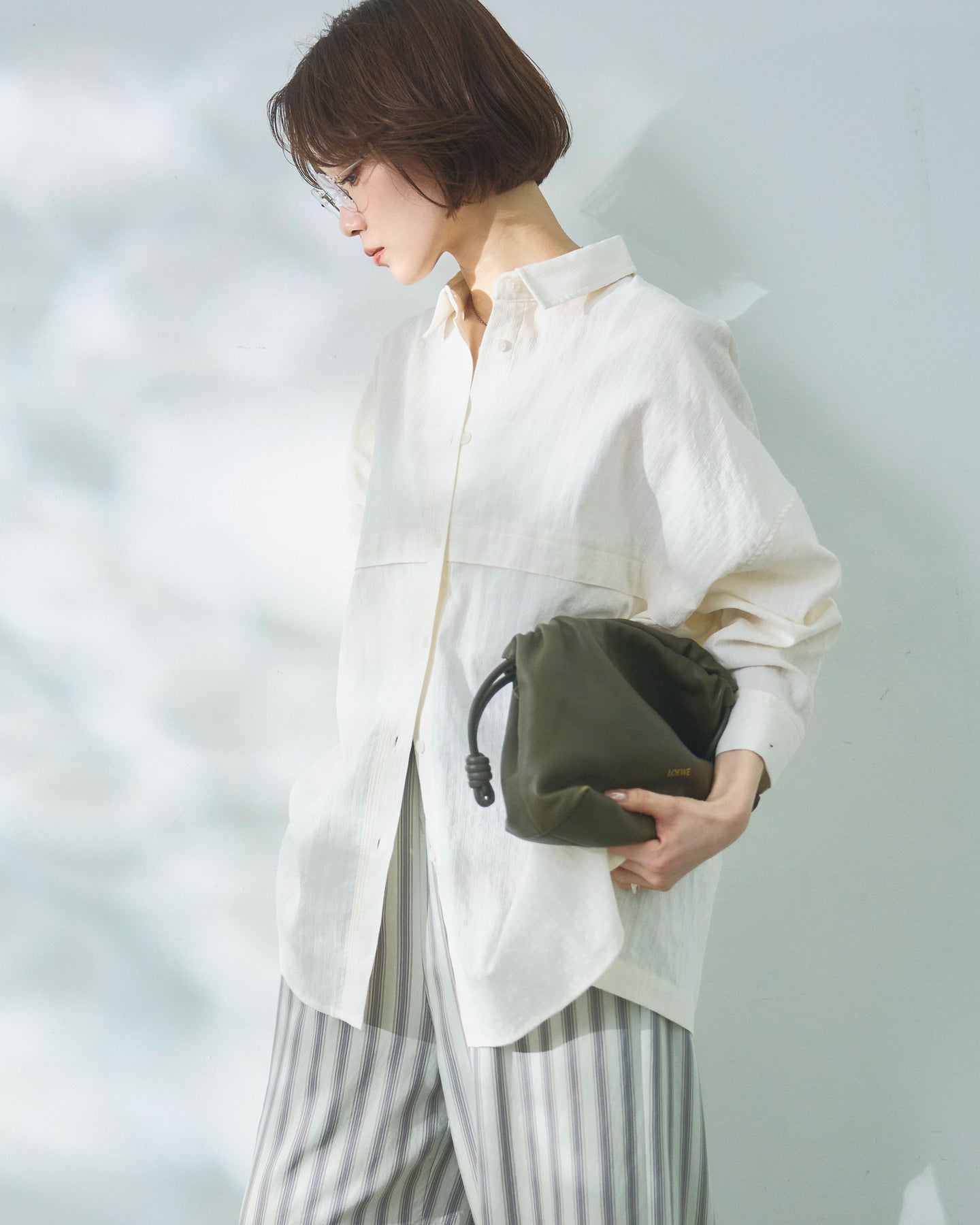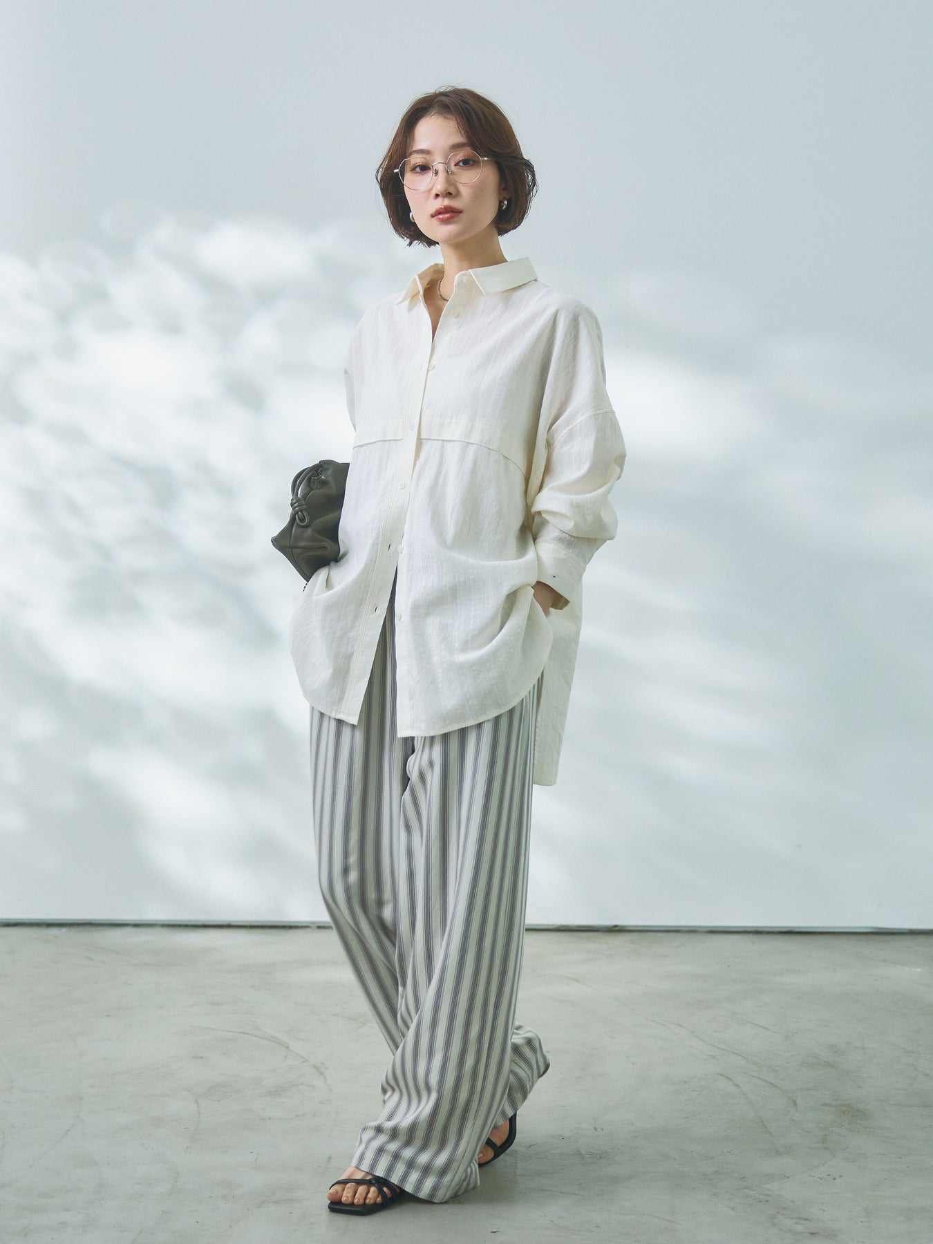 【Allure】[SET]スプリングスラブワイドシャツ+ストライプイージーパンツ(2set)