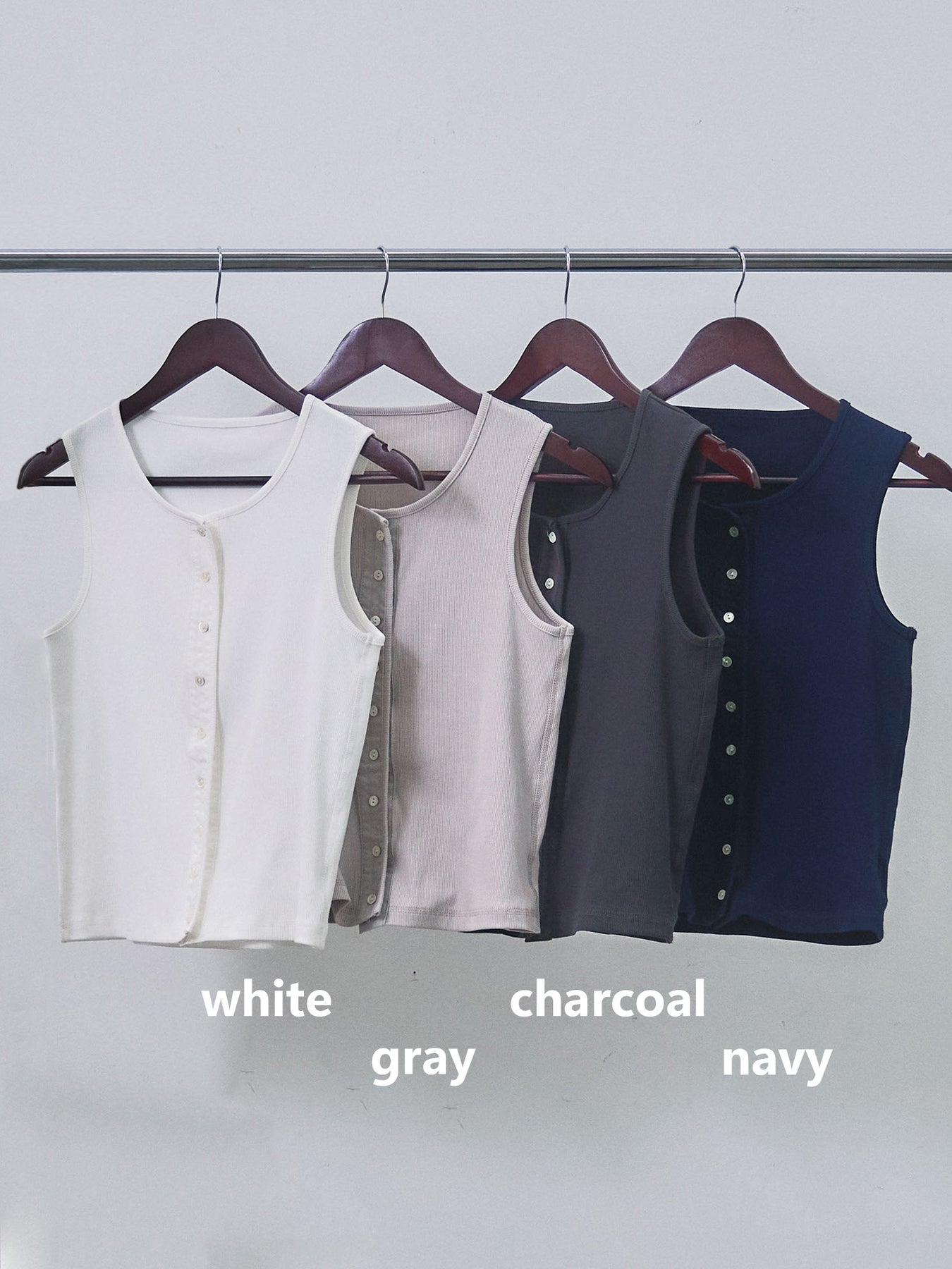 [予約]フロントボタンテレコリブタンクトップ