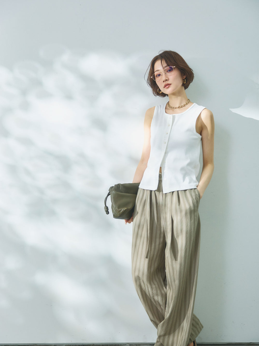 いつものLumierより少し背伸びをした、大人女性の魅力を引き出すラインナップ。変わらずコーディネートセットでご購入いただけます。Lumierのテーマ「ニュアンスカジュアル」をちょっぴりクラスアップした大人の着こなしをお楽しみください。セットでのご購入をご希望の方はこちらのページから。