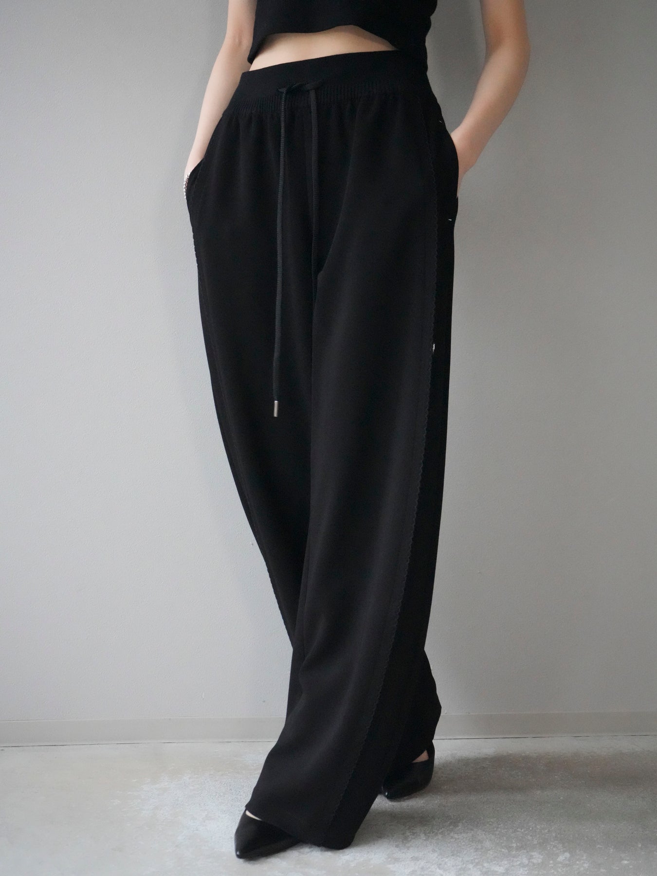 [予約]ステッチデザインウエストリブニットスエットパンツ/black