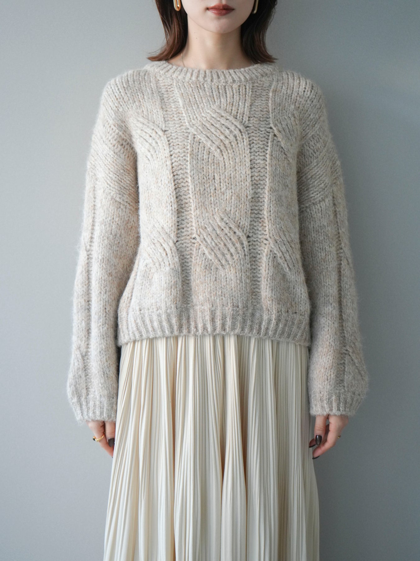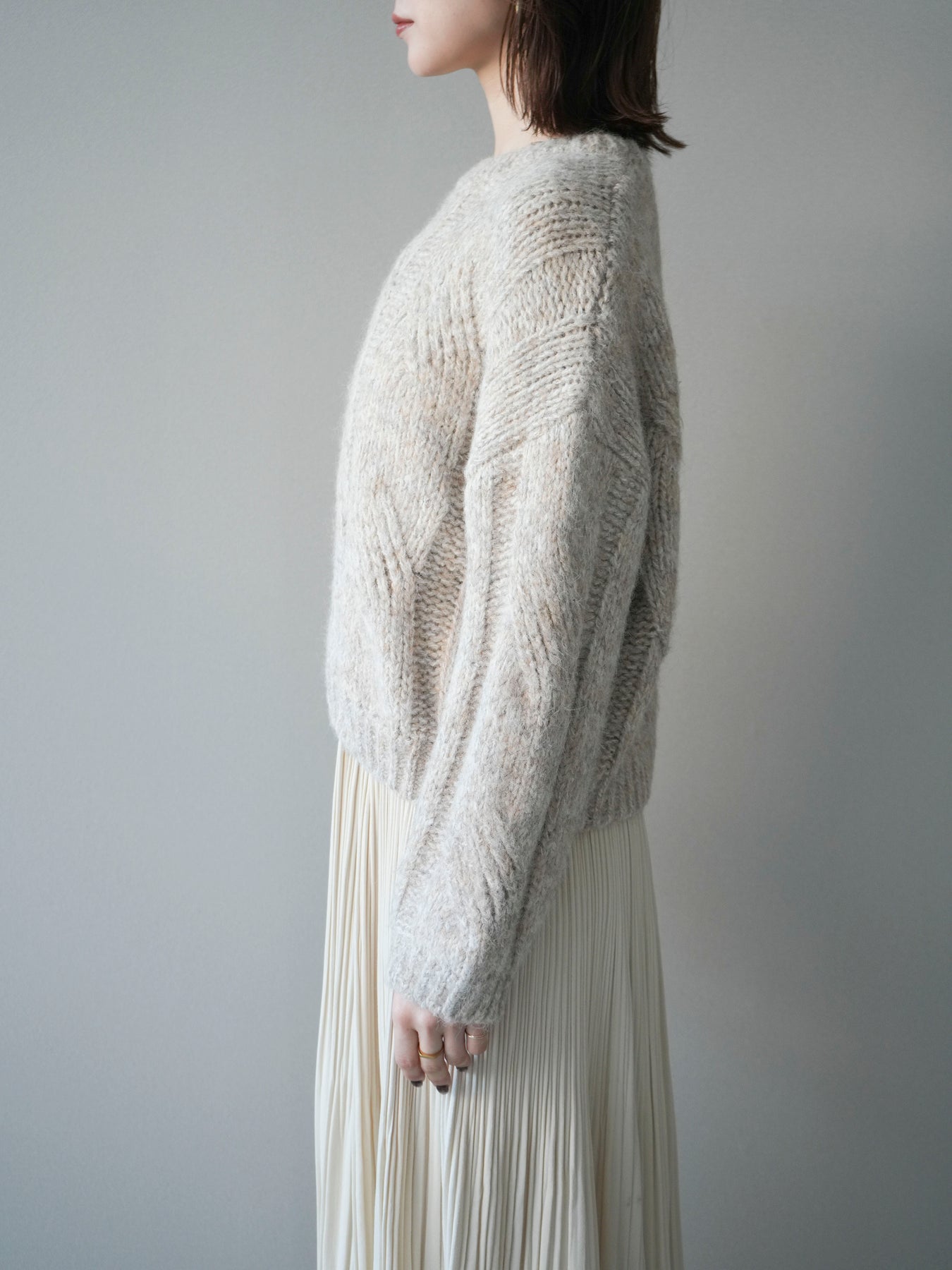[予約]ワイドケーブルミックスニットプルオーバー/ivory