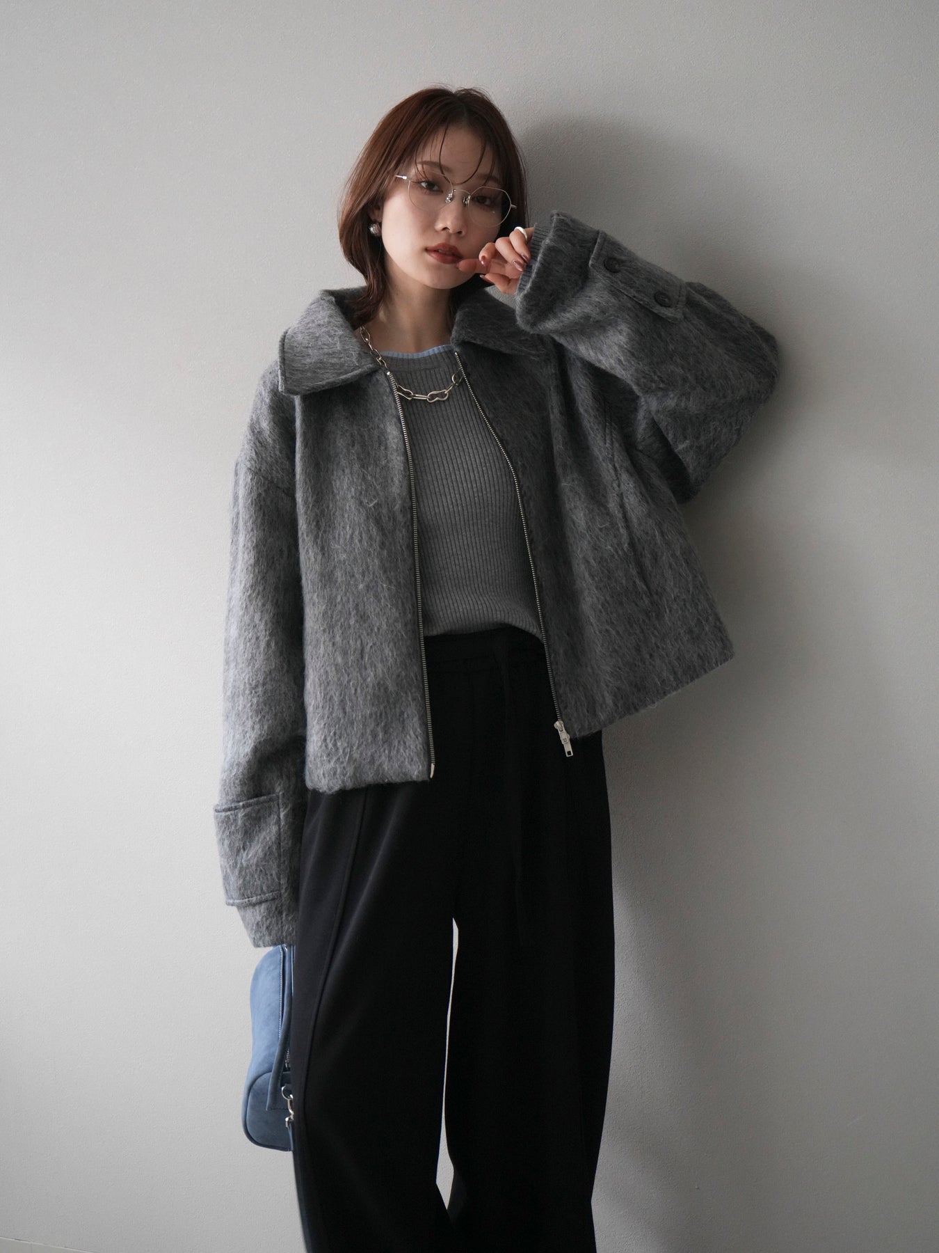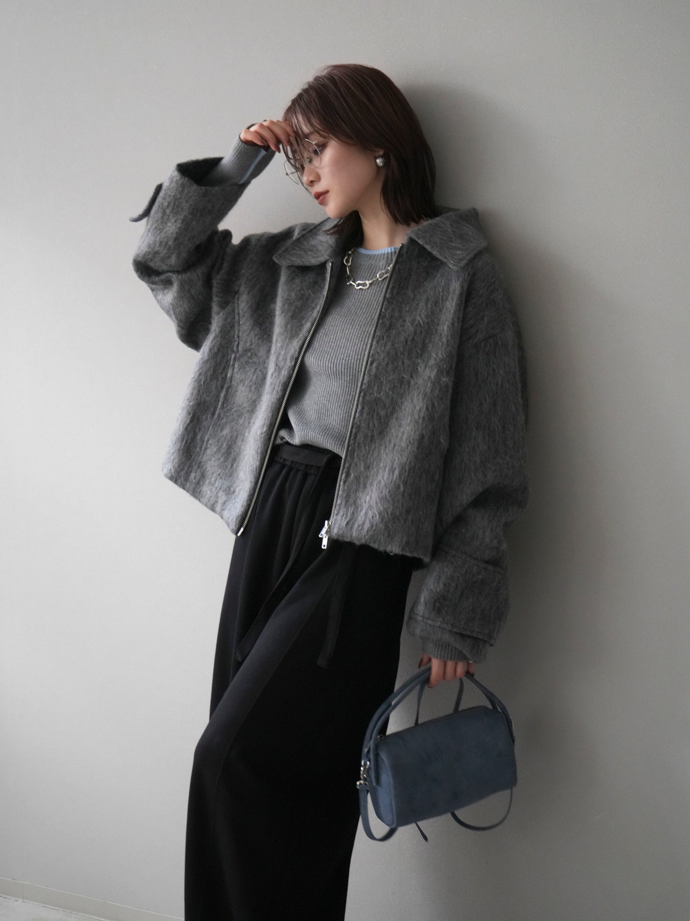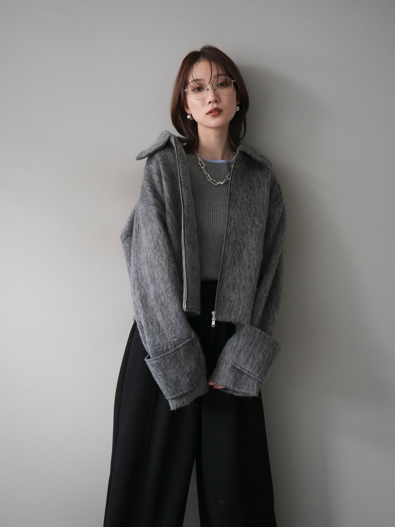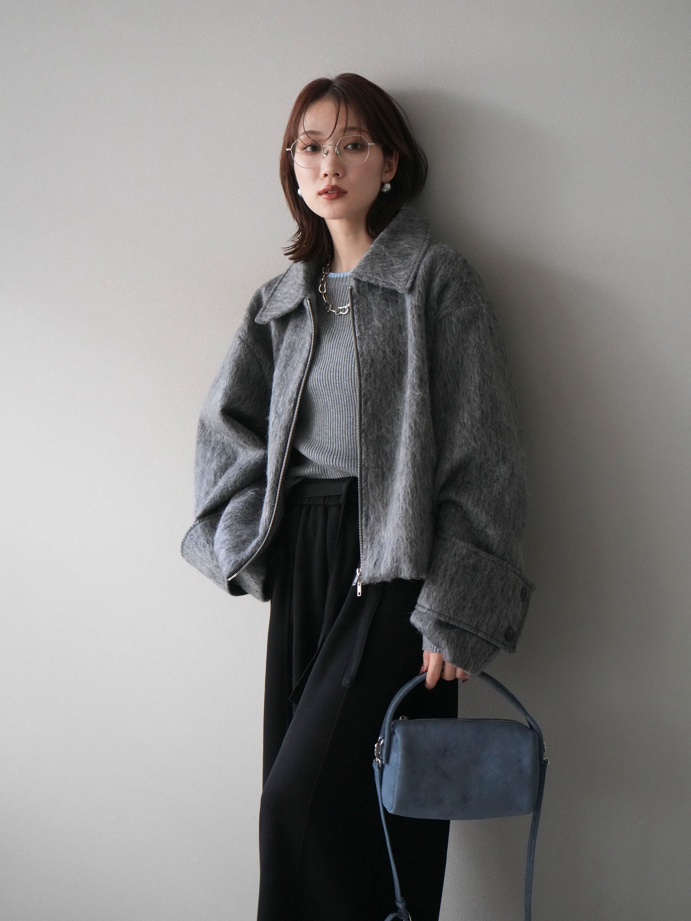 [予約]袖ビックループシャギージップブルゾン/charcoal