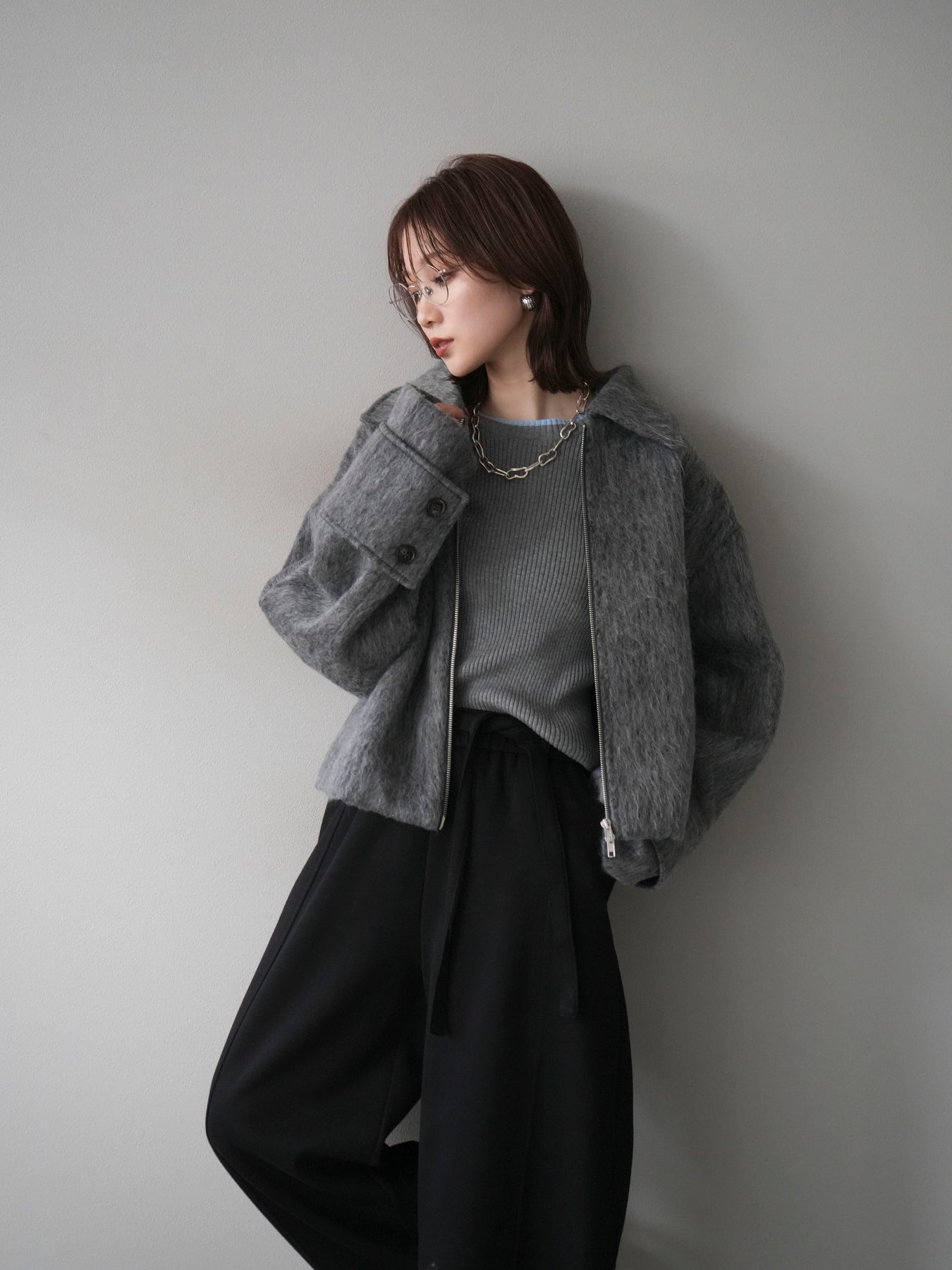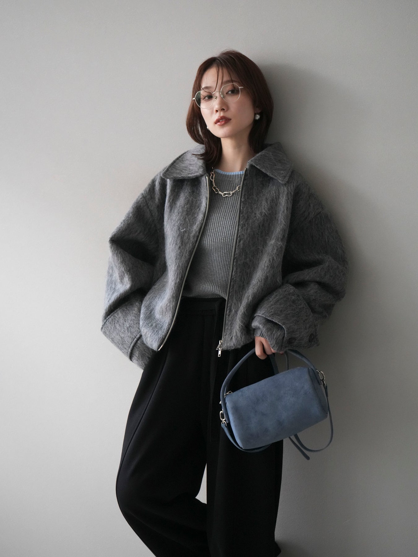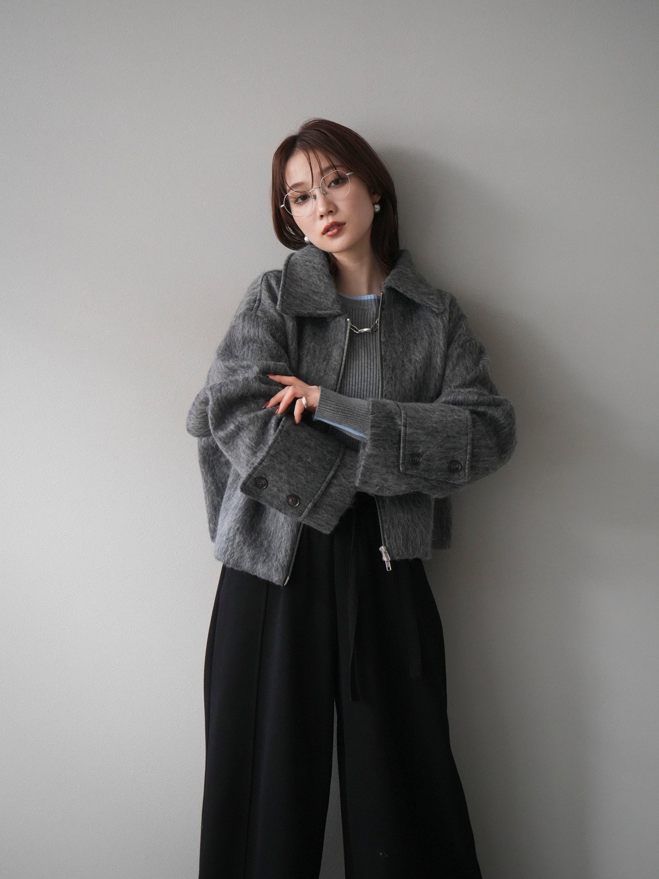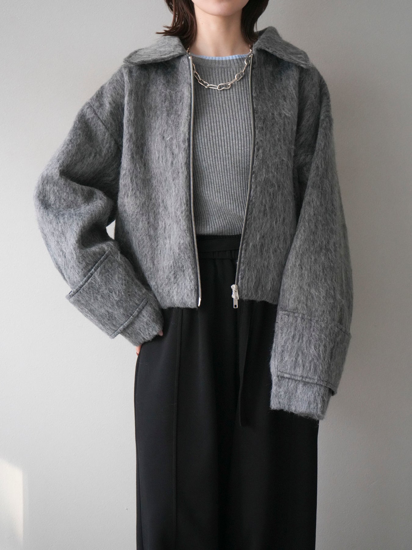 [予約]袖ビックループシャギージップブルゾン/charcoal