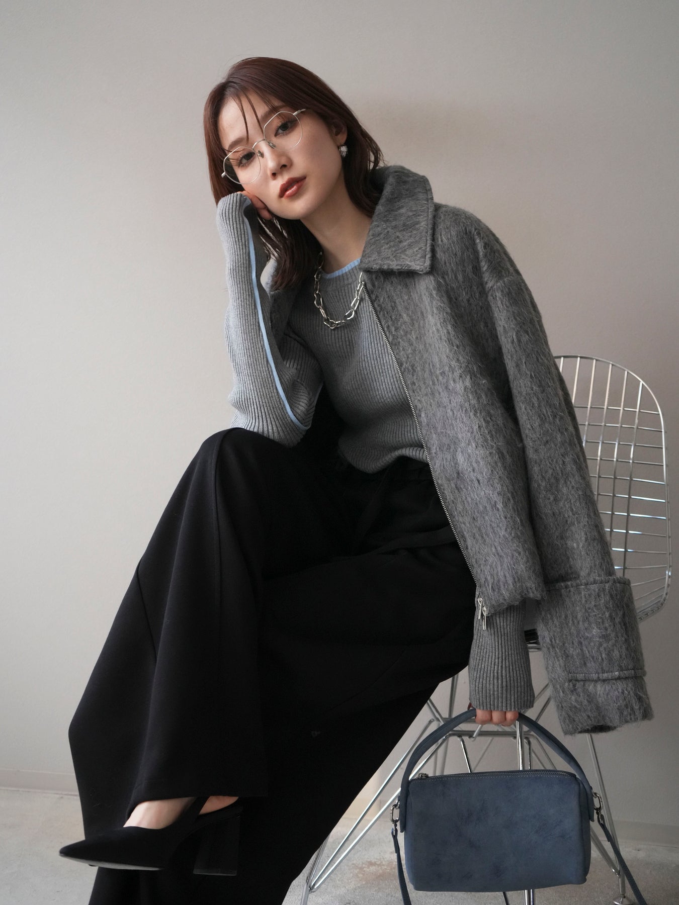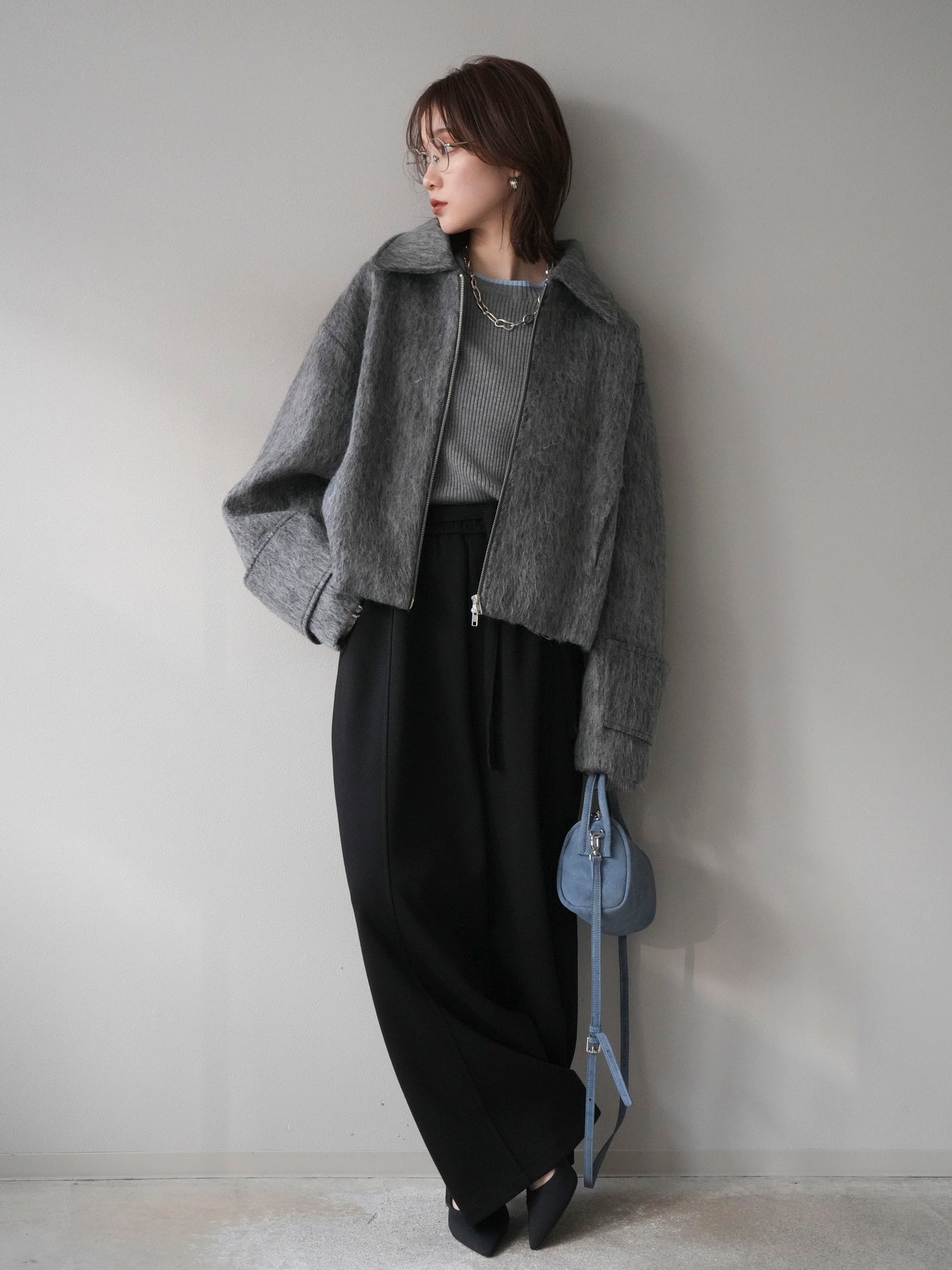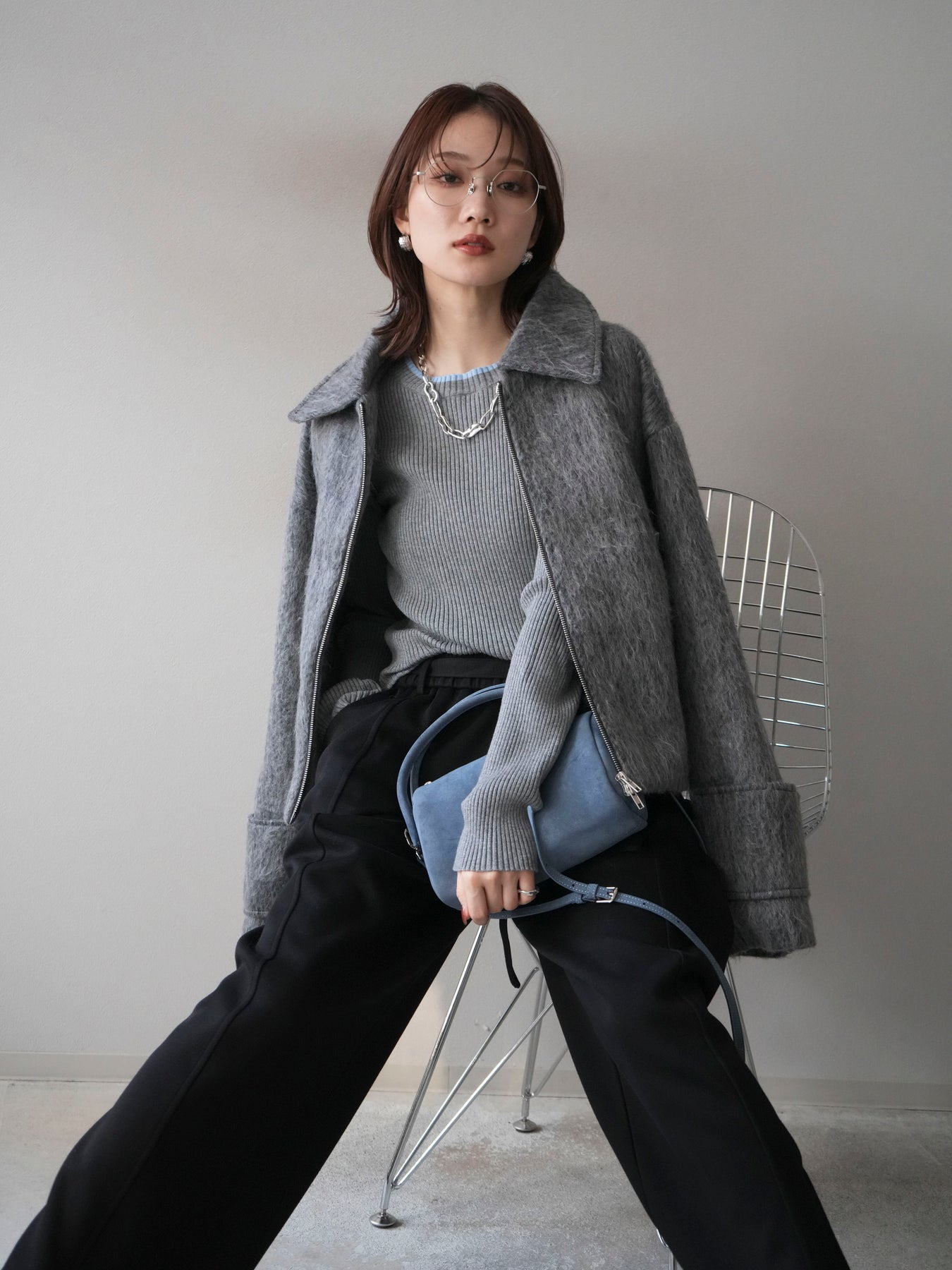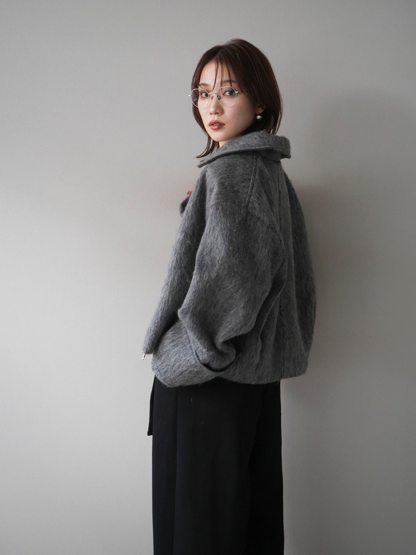 [予約]袖ビックループシャギージップブルゾン/charcoal
