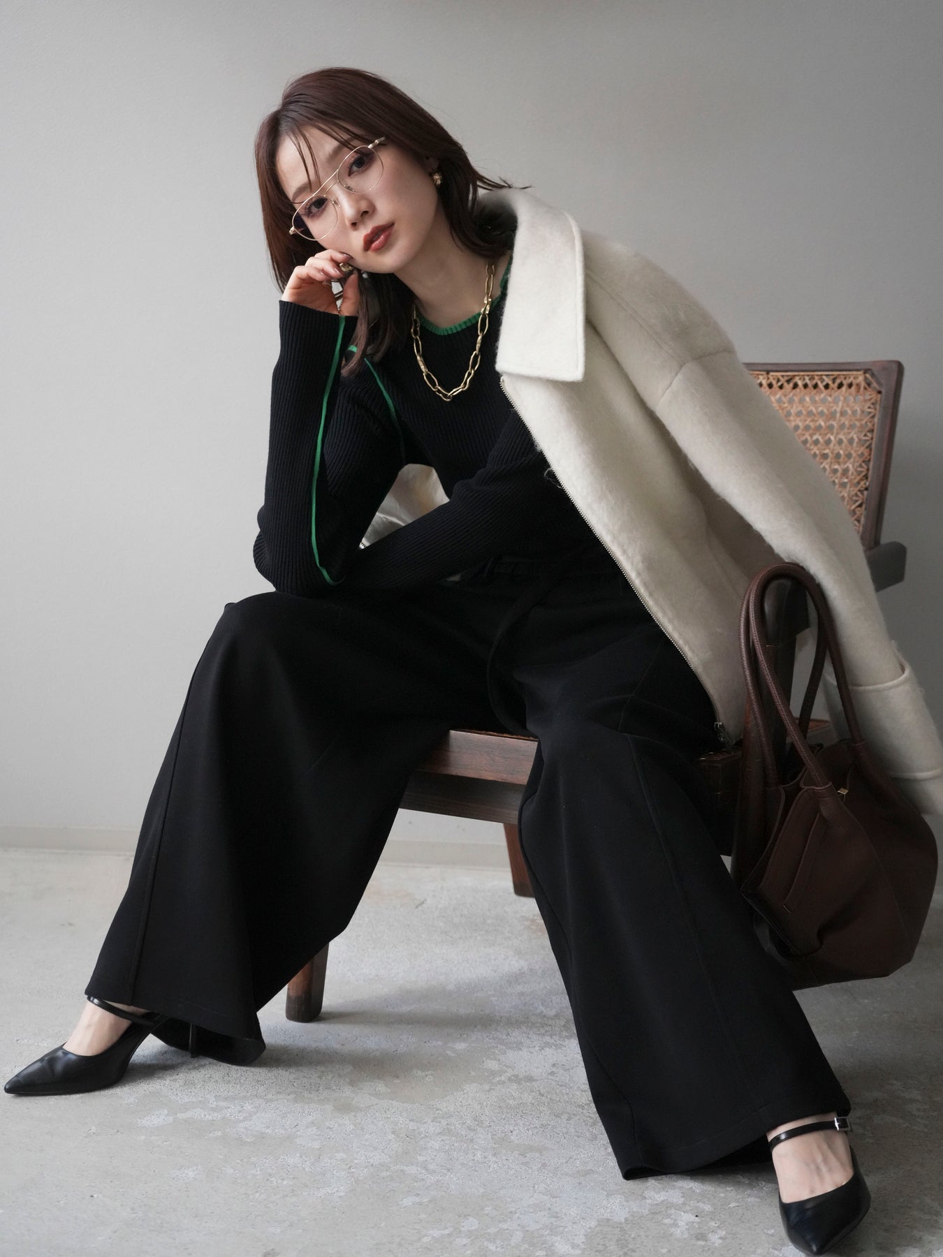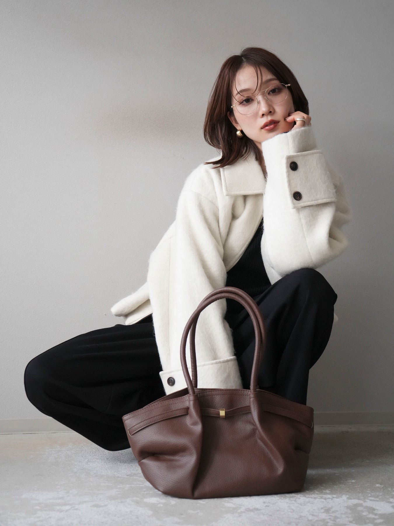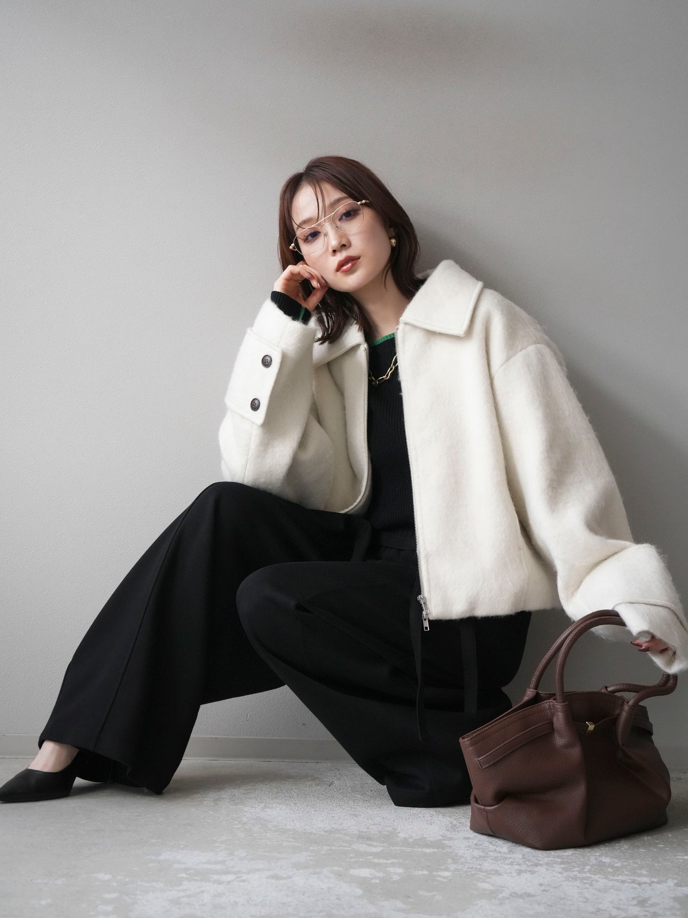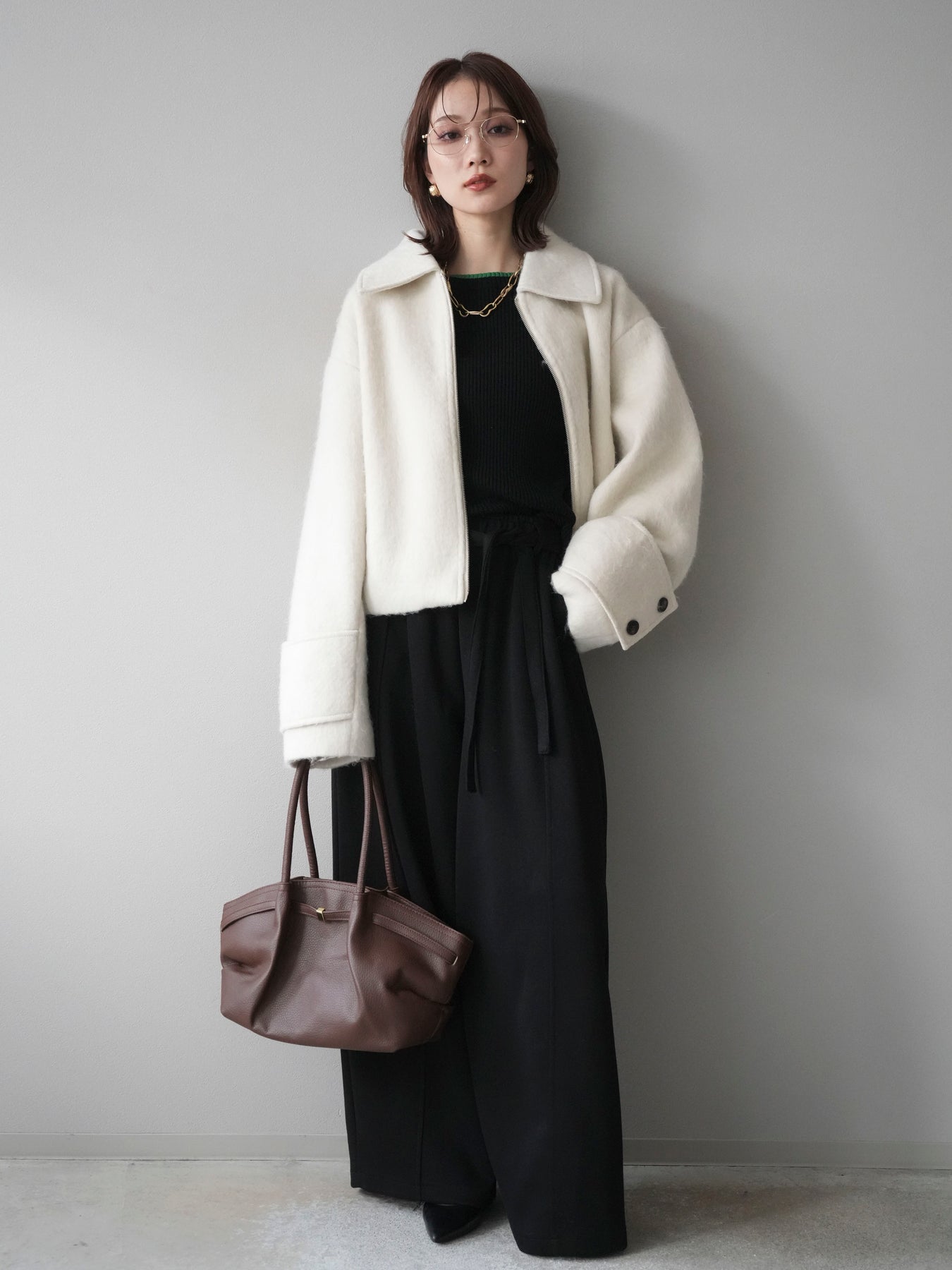 ふんわりとしたビッグループシャギー素材が存在感を放つジップブルゾン。 毛足の長い生地が光を柔らかく反射し、上品なニュアンスを漂わせます。 コンパクトな丈感ながらも袖に程よいボリュームを持たせ、バランスの取れたシルエットに。 ジップを閉めればすっきりとした印象に、開けて羽織れば抜け感のあるスタイルが楽しめます。 デニムやスカートなど、幅広いコーディネートにマッチする今季注目のアウターです。 ※ボトムス、キャミソール(インナー)以外の商品は一律でインナーは付属していません。