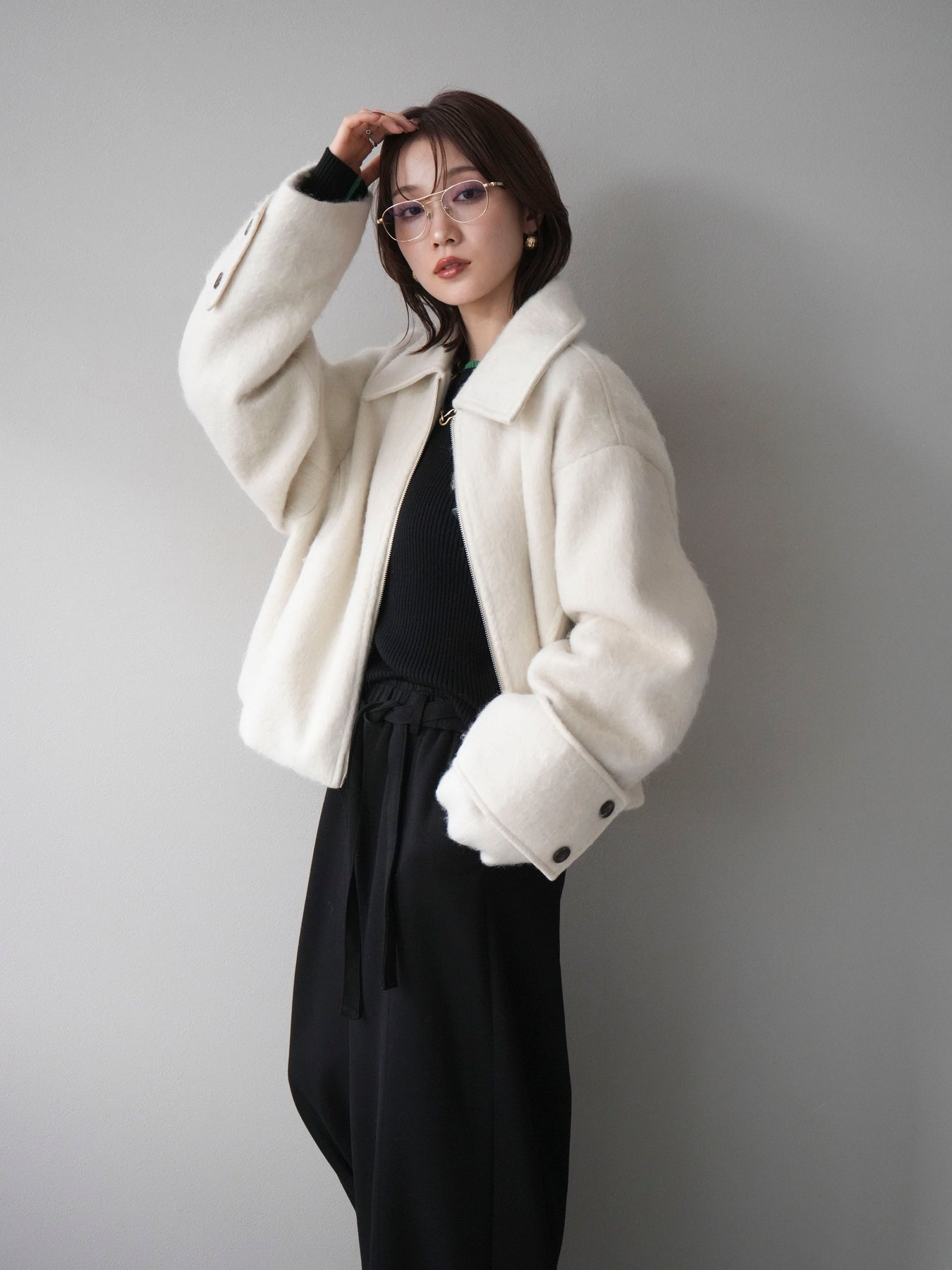 [予約]袖ビックループシャギージップブルゾン/ivory
