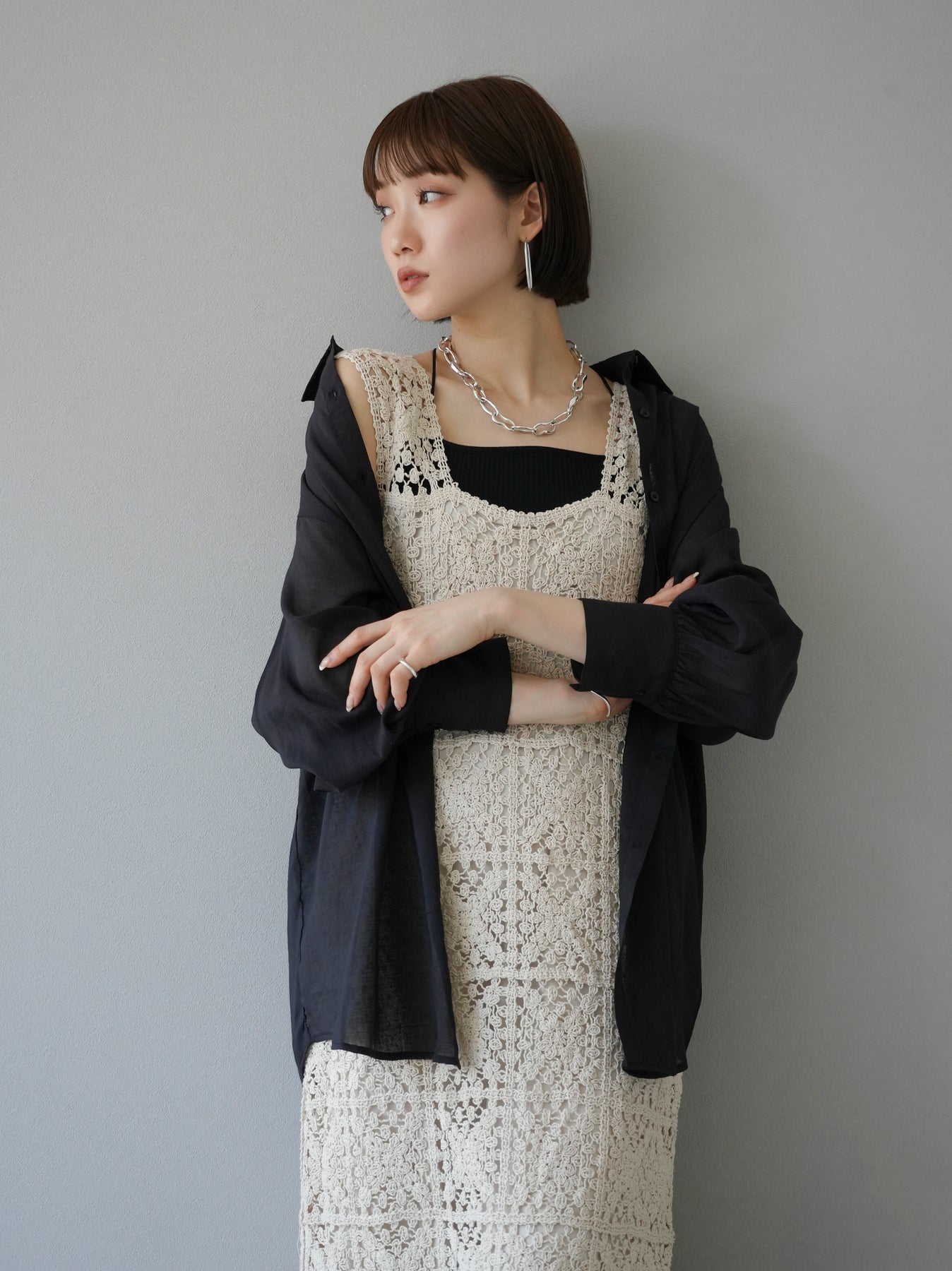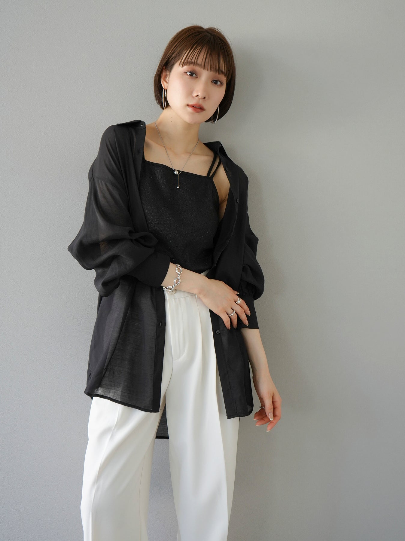 [予約]ボリュームスリーブシアーオーバーシャツ/ブラック