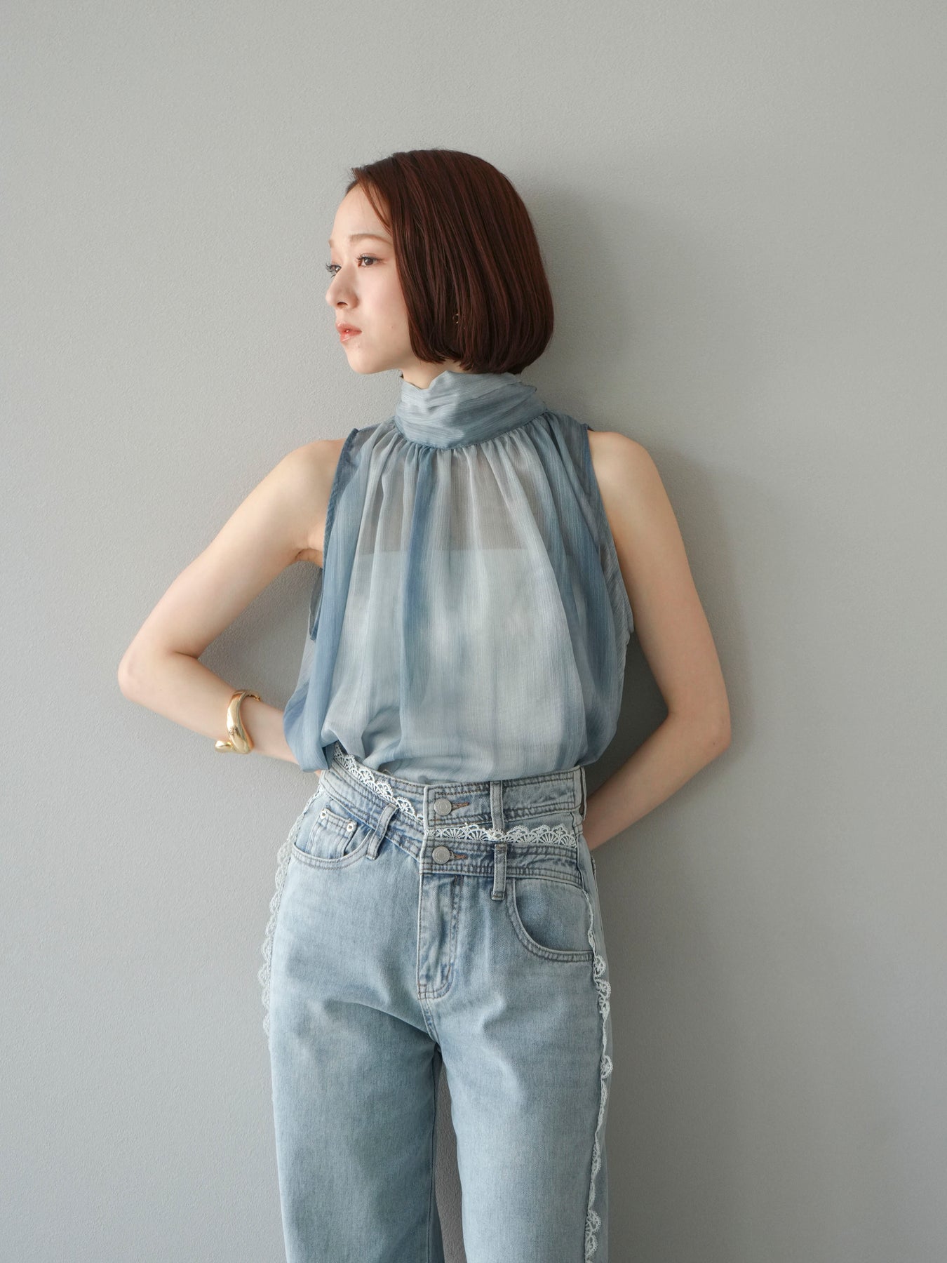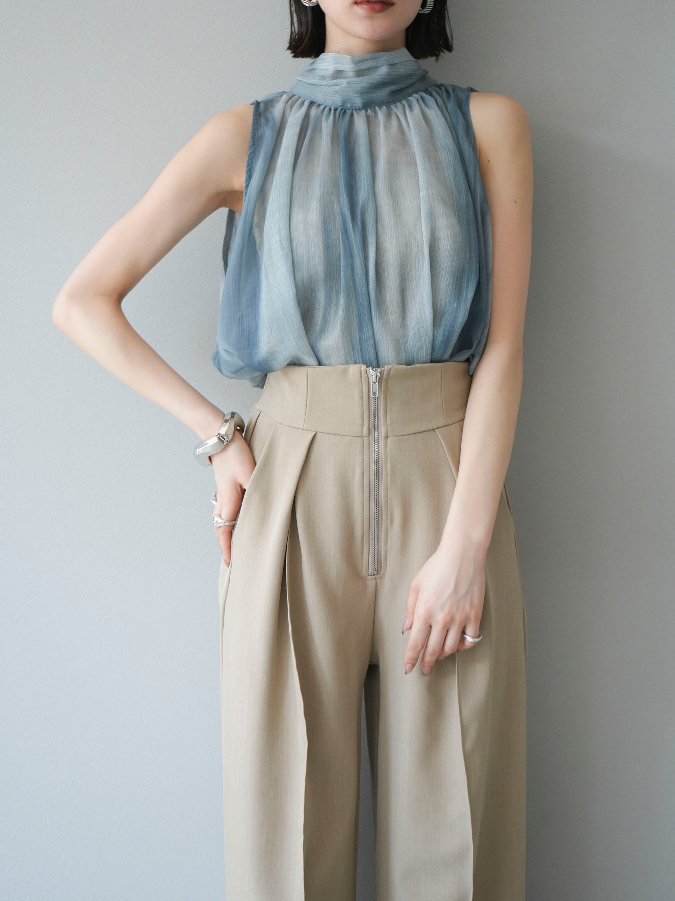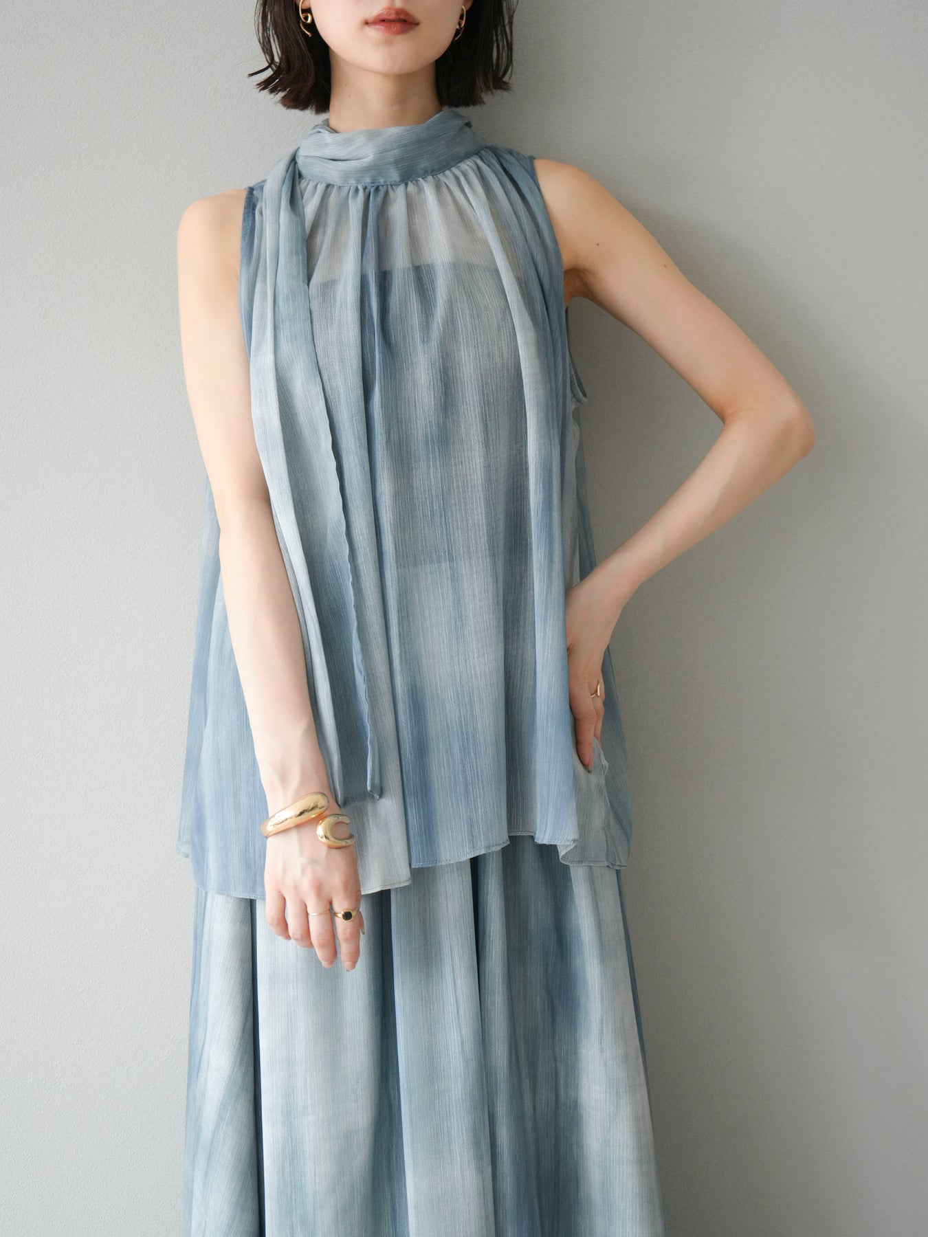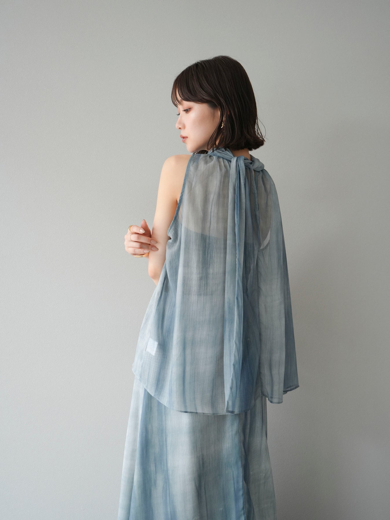 [予約]ニュアンスシアーホルターネックブラウス/グリーン
