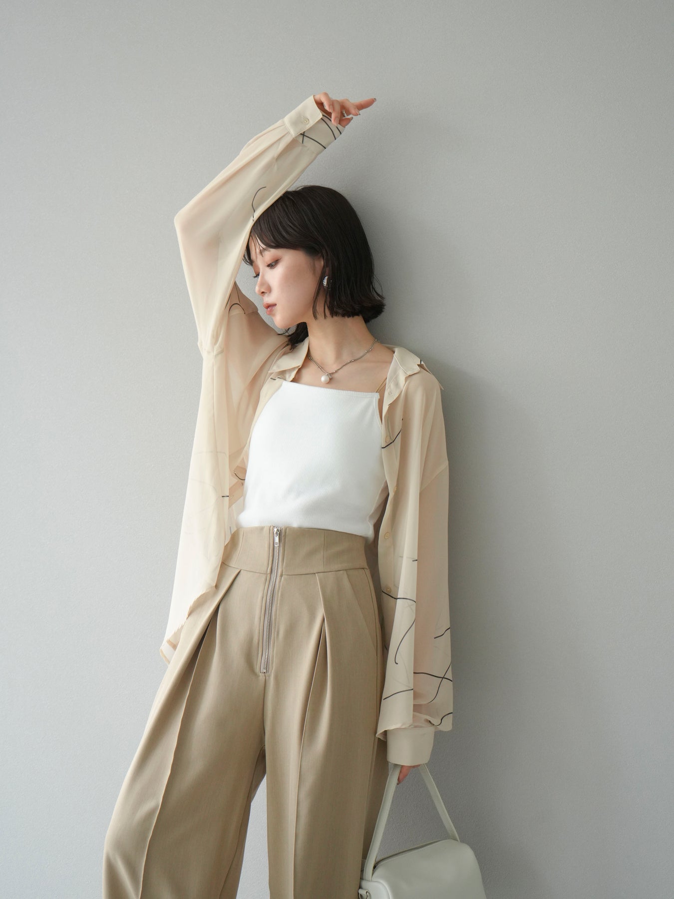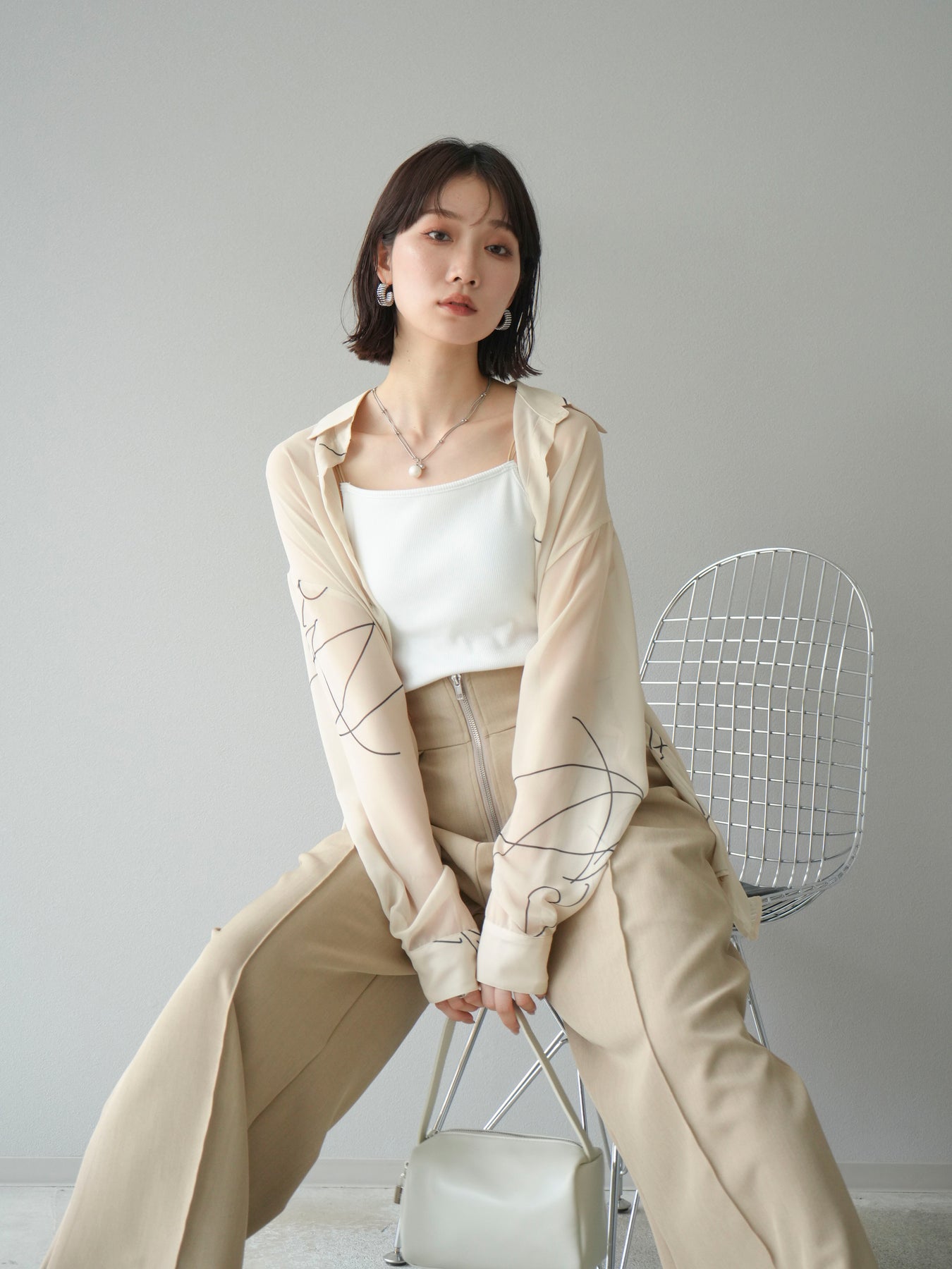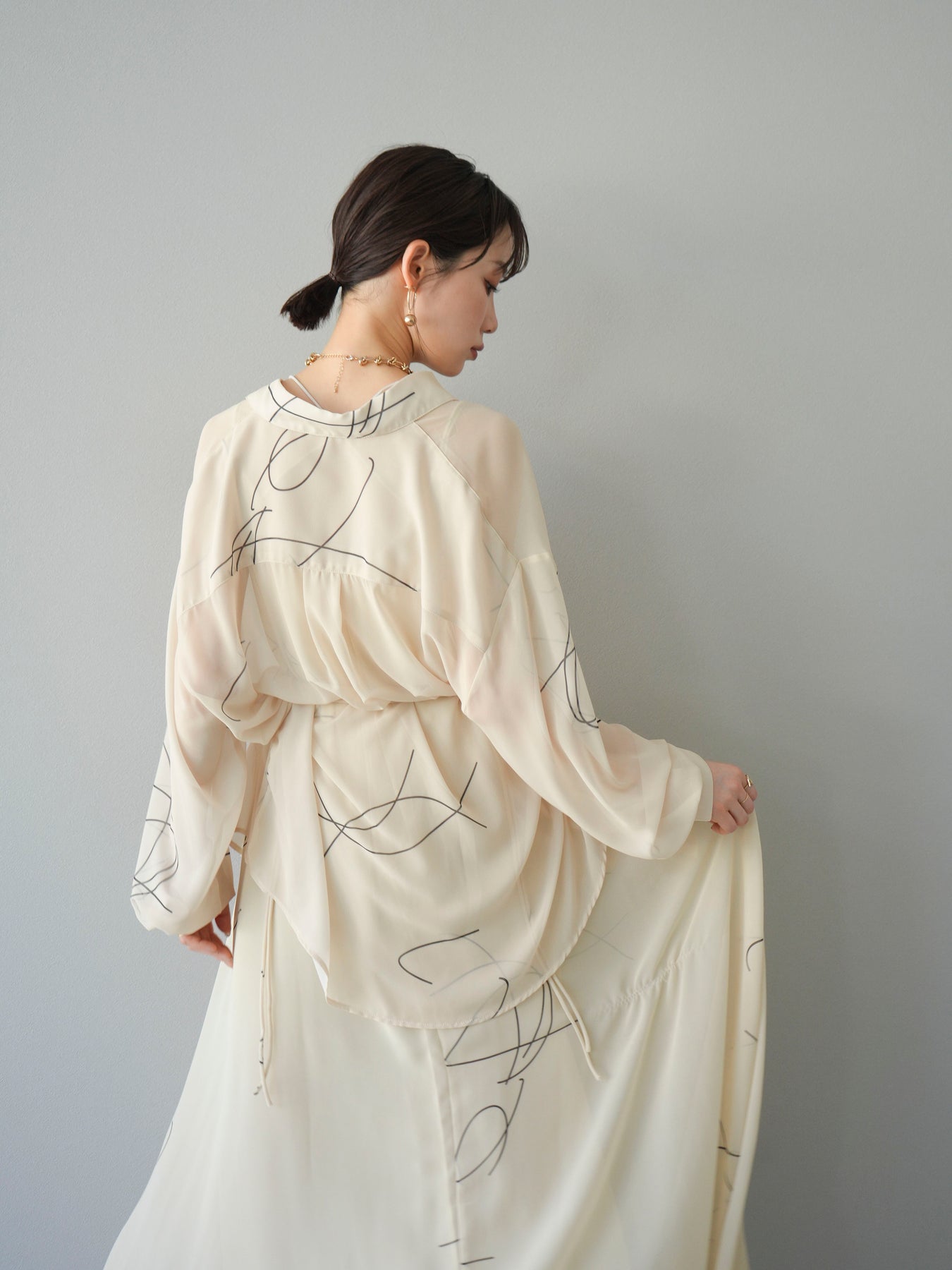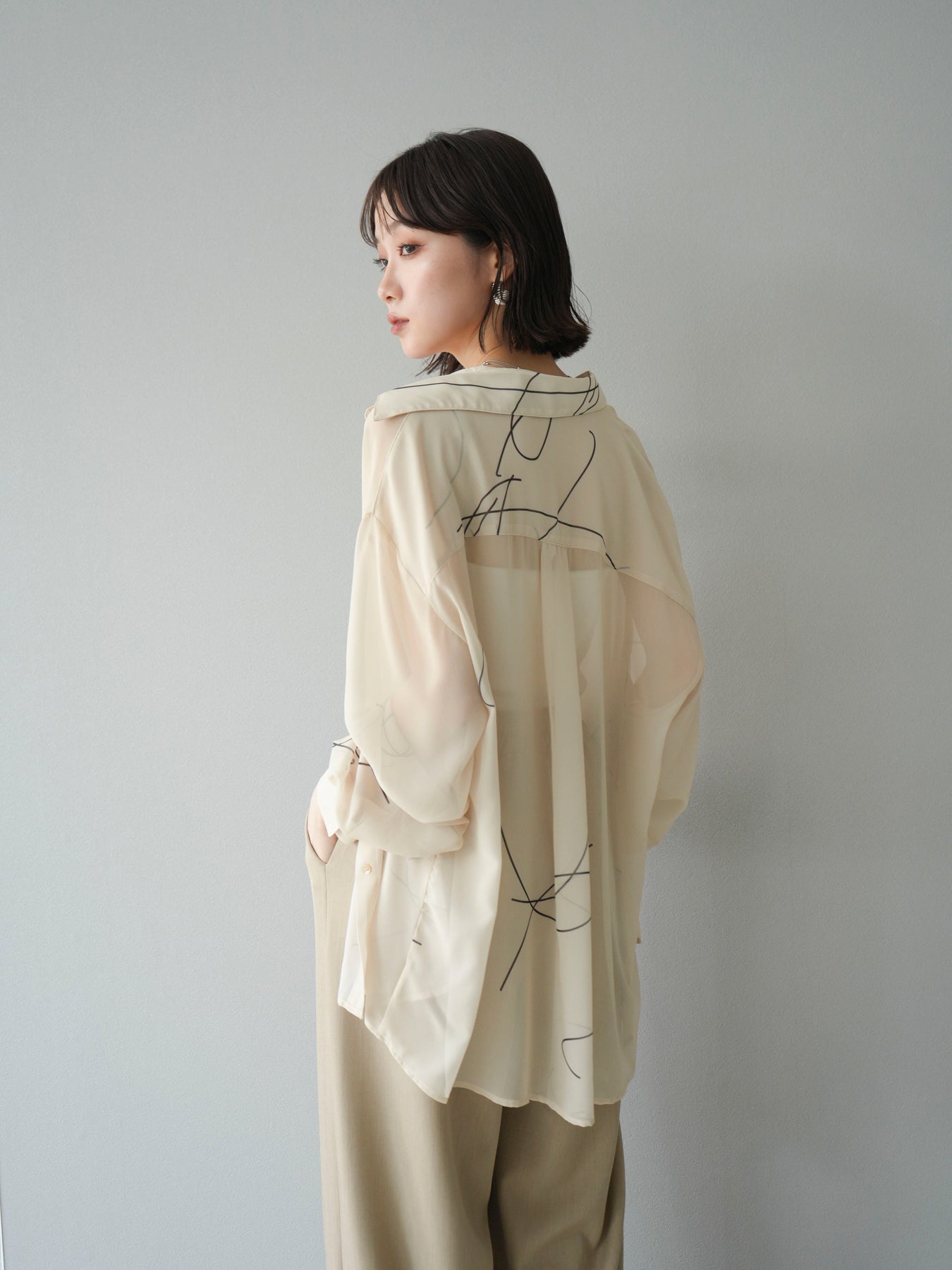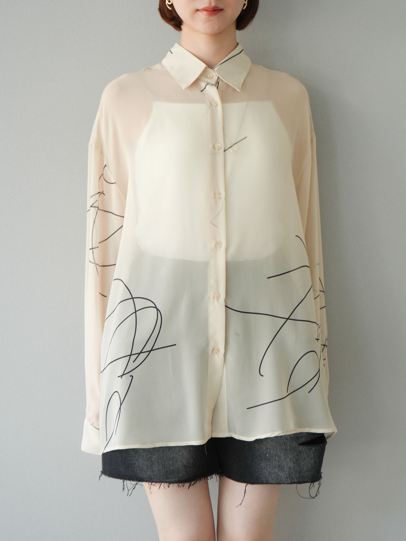 [予約]ペンタッチシフォンシャツ/アイボリー
