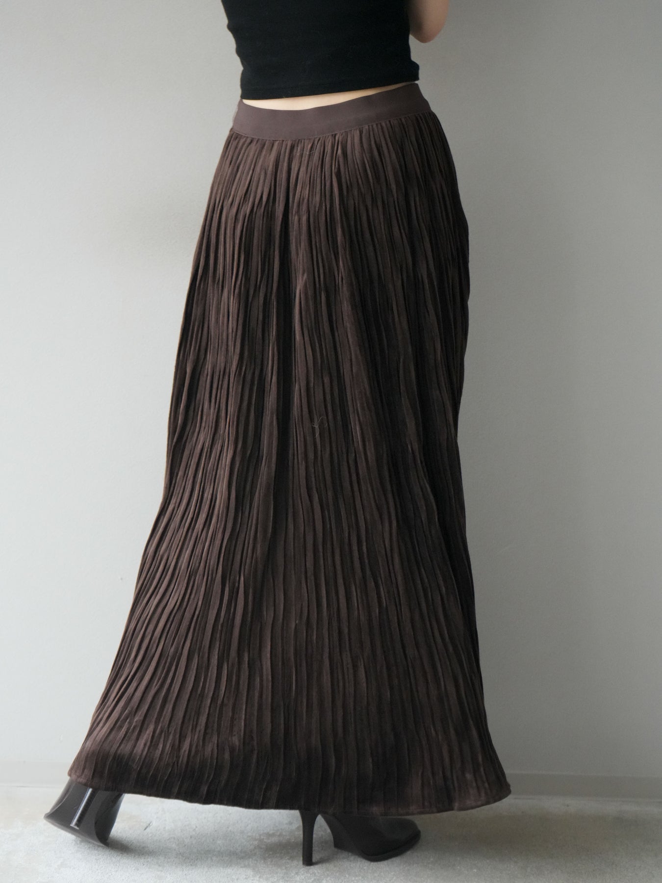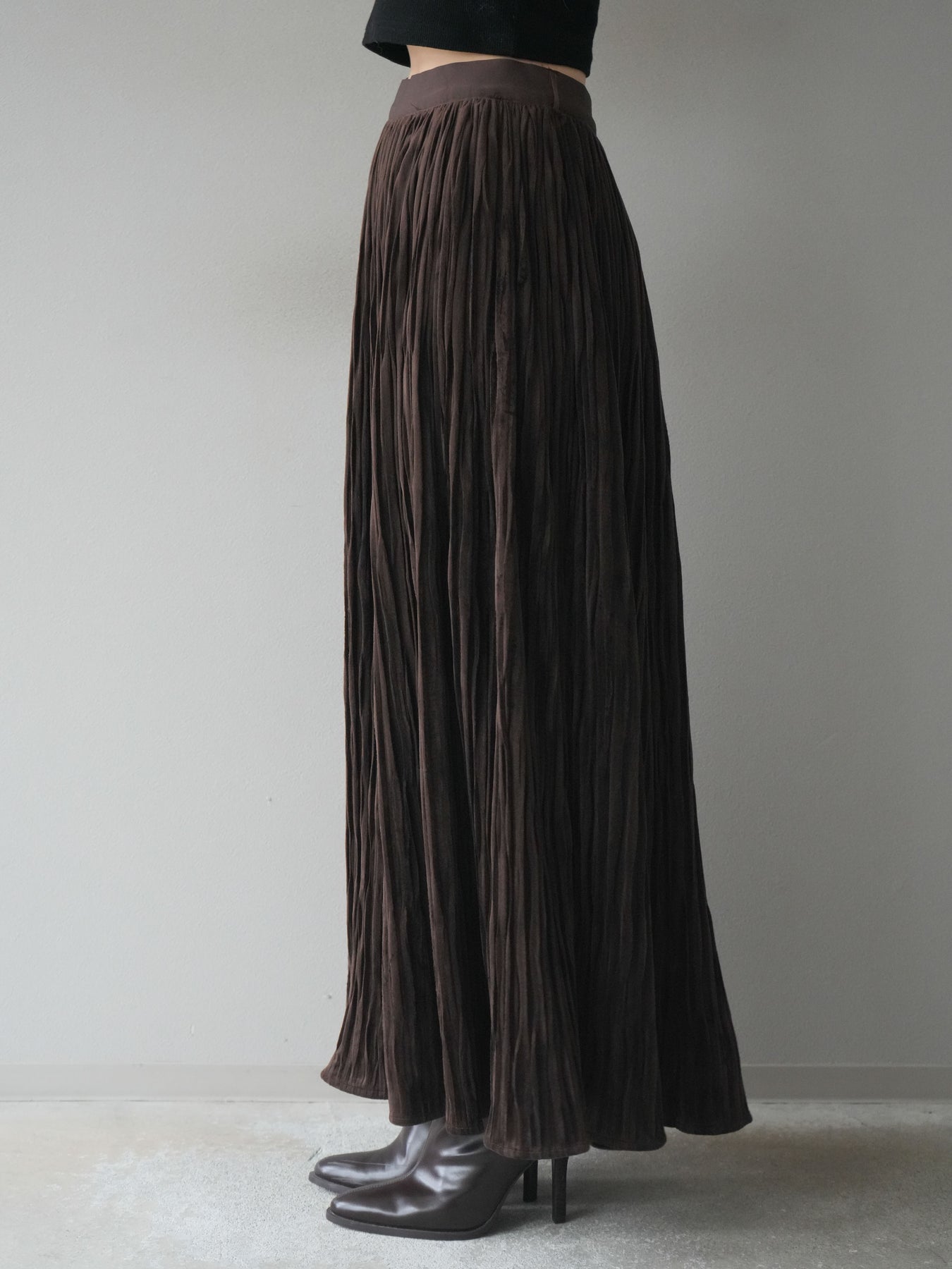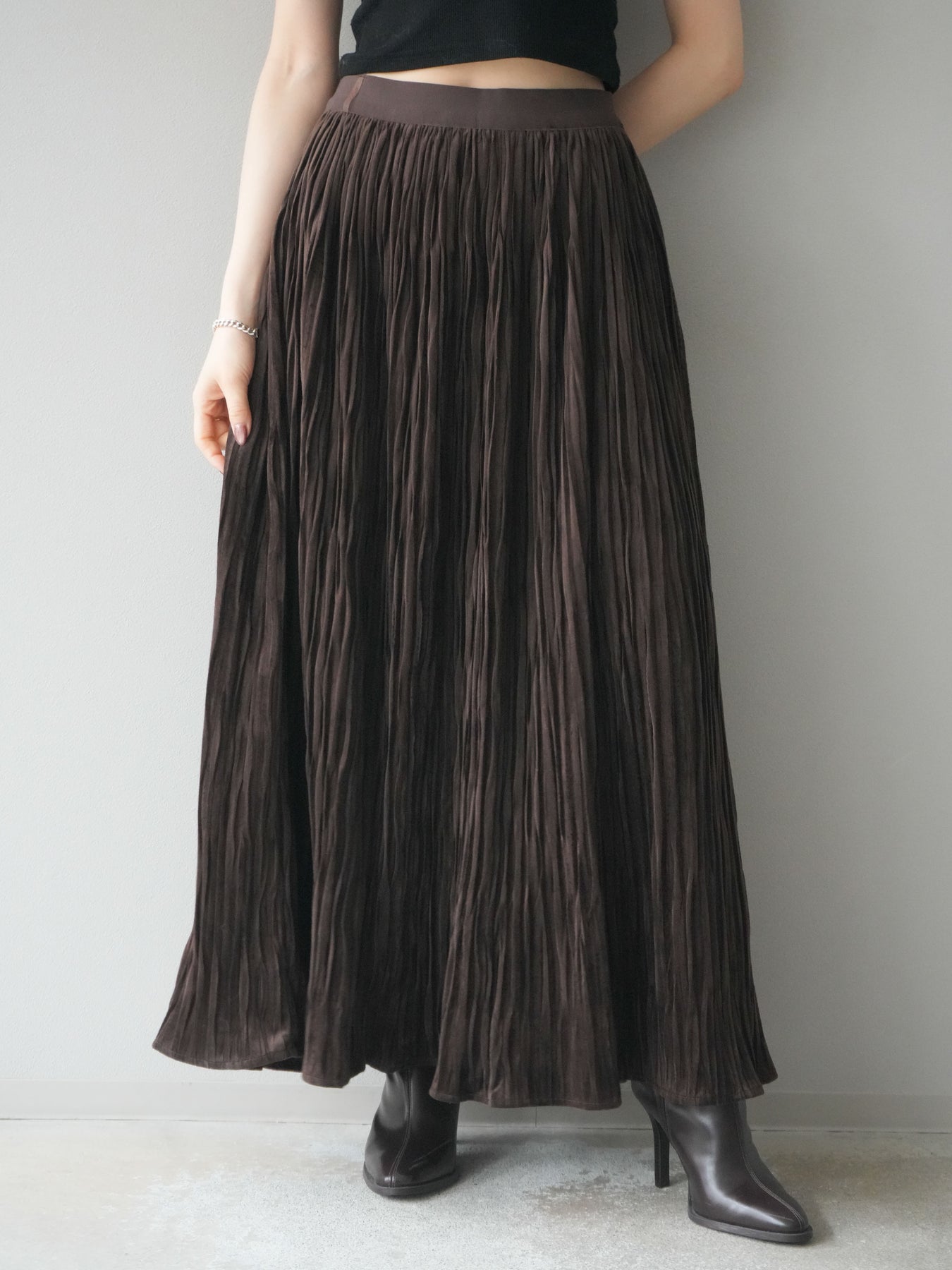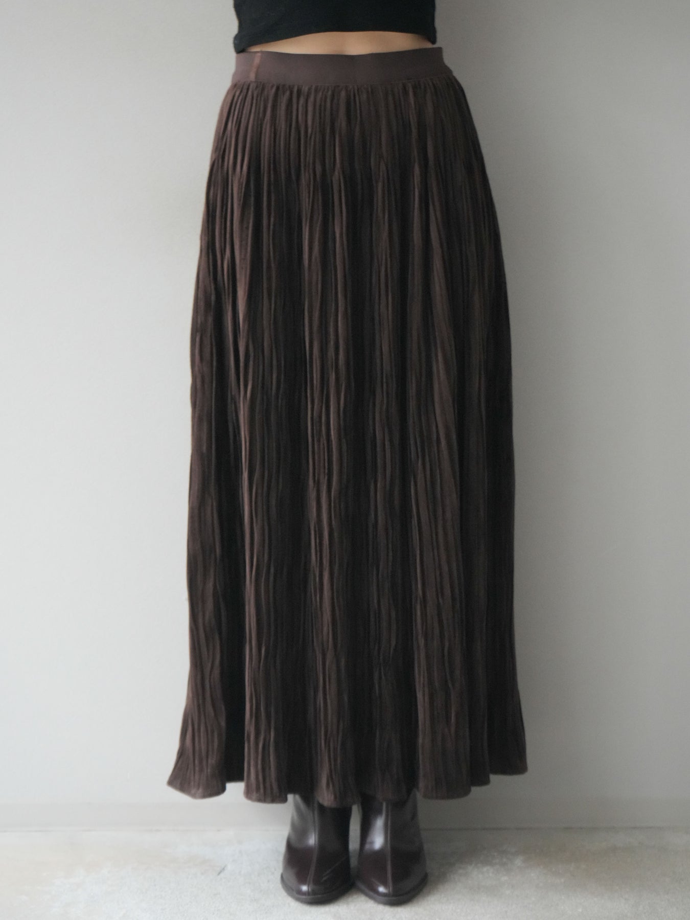 [予約]スエードワッシャープリーツスカート/brown