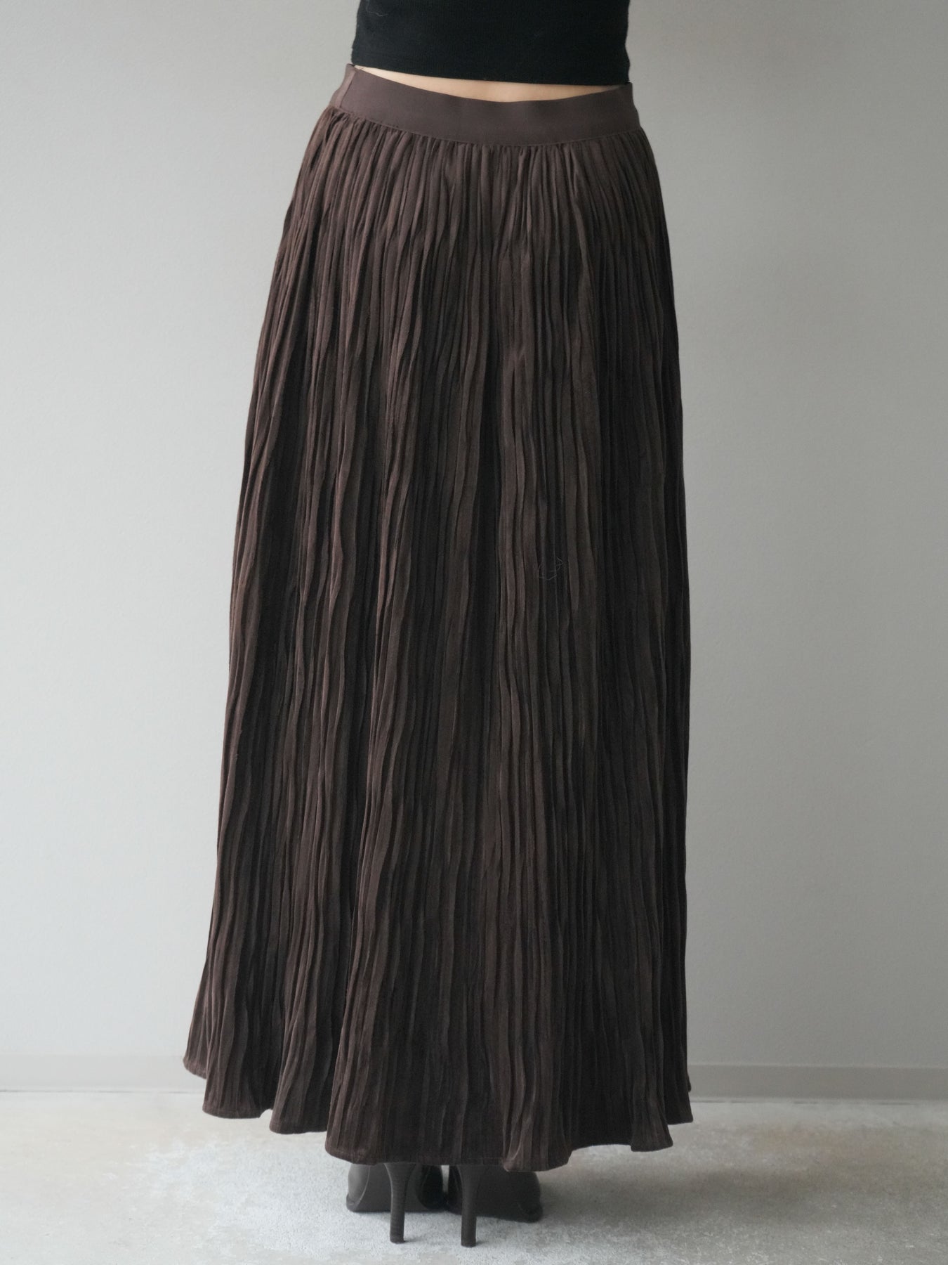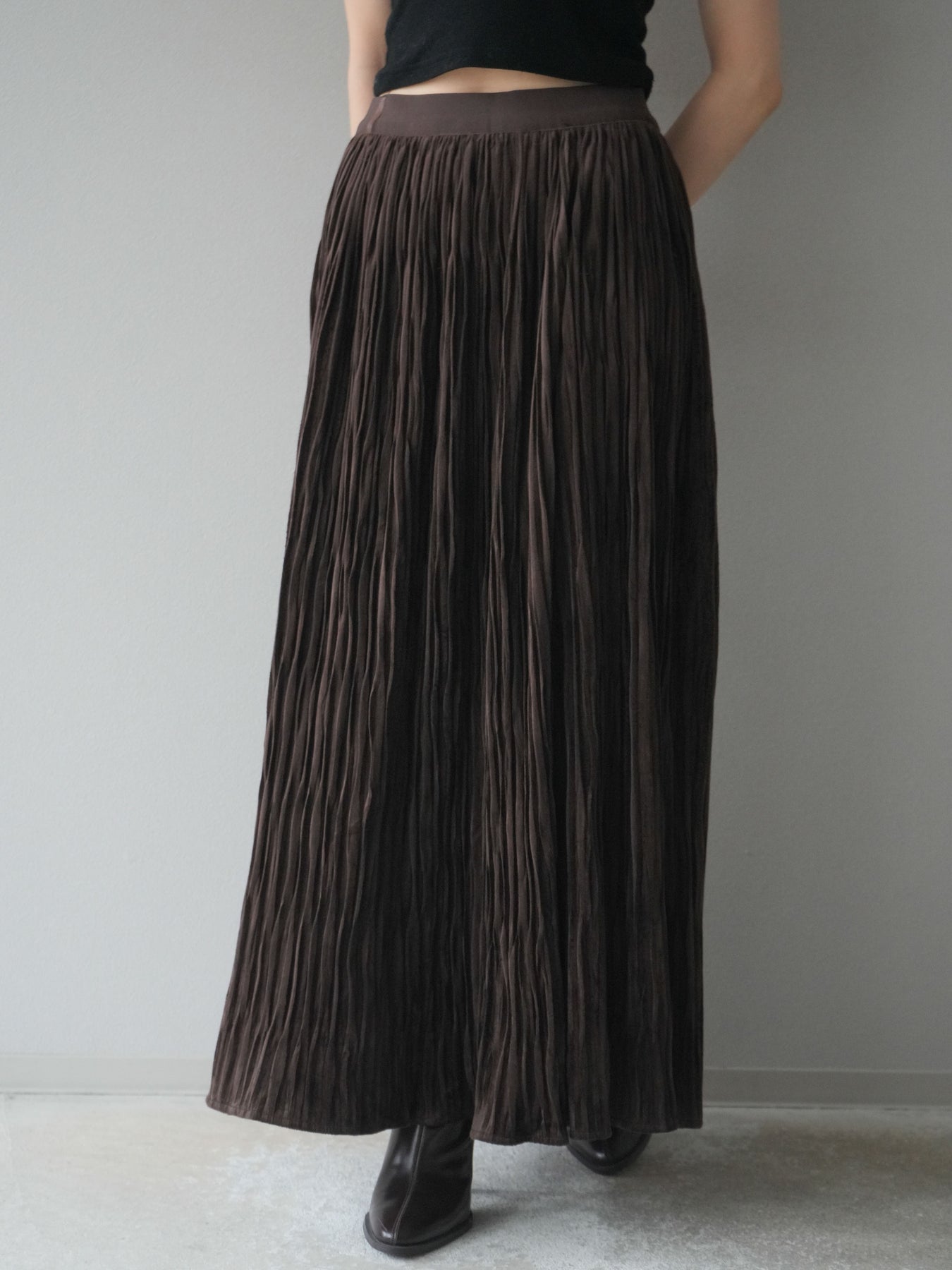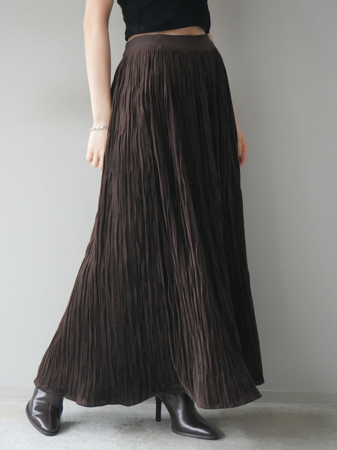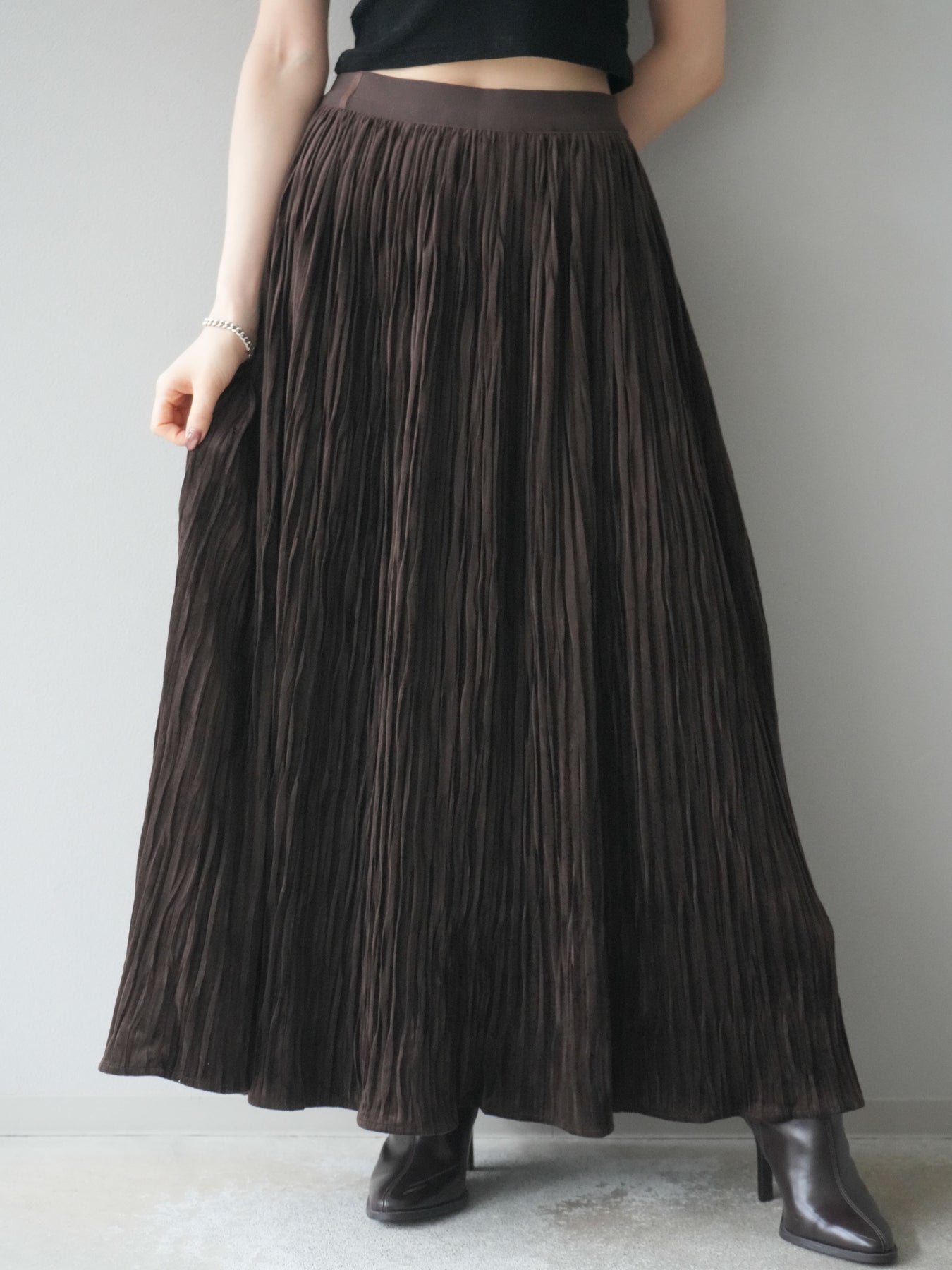 [予約]スエードワッシャープリーツスカート/brown
