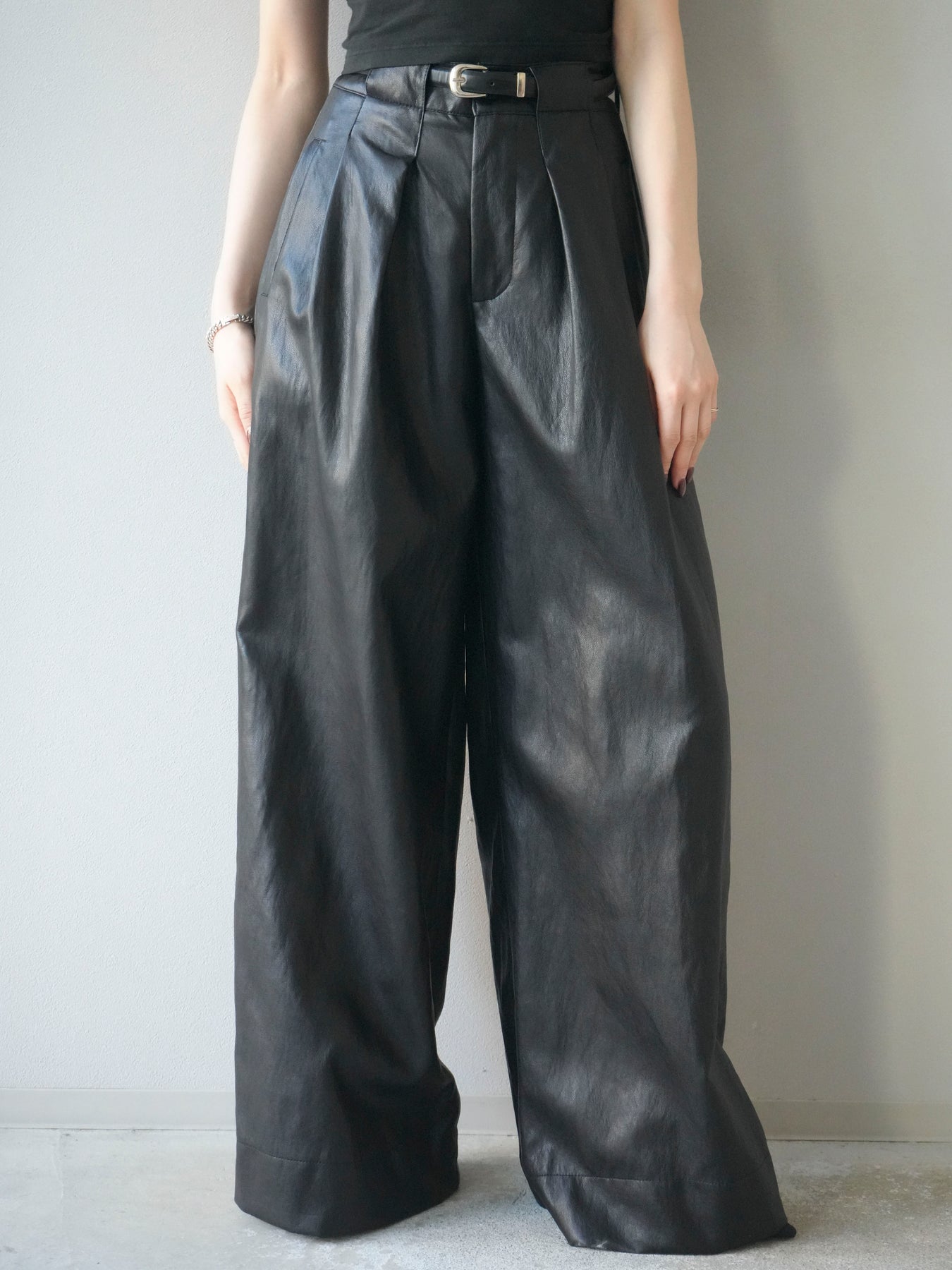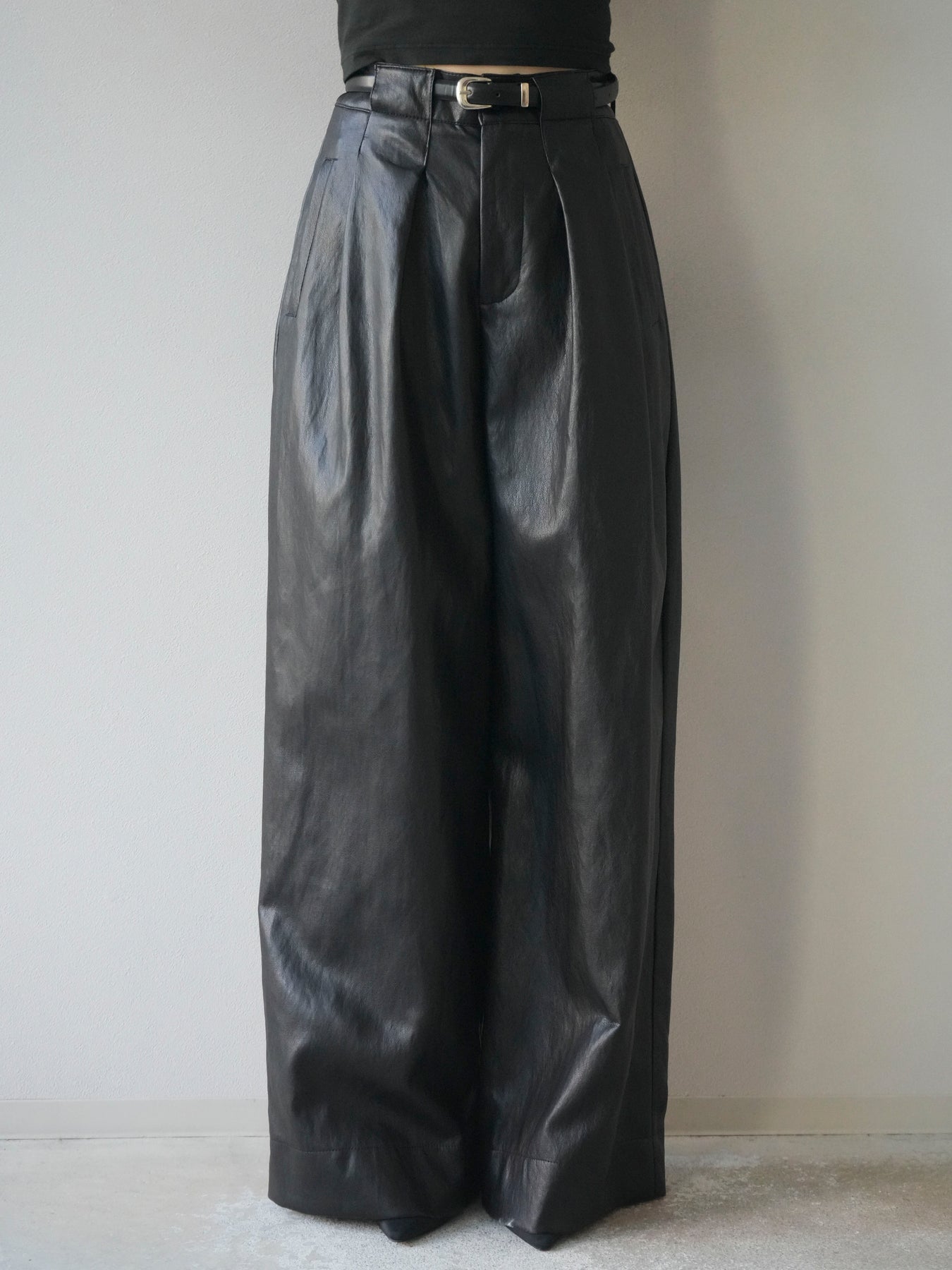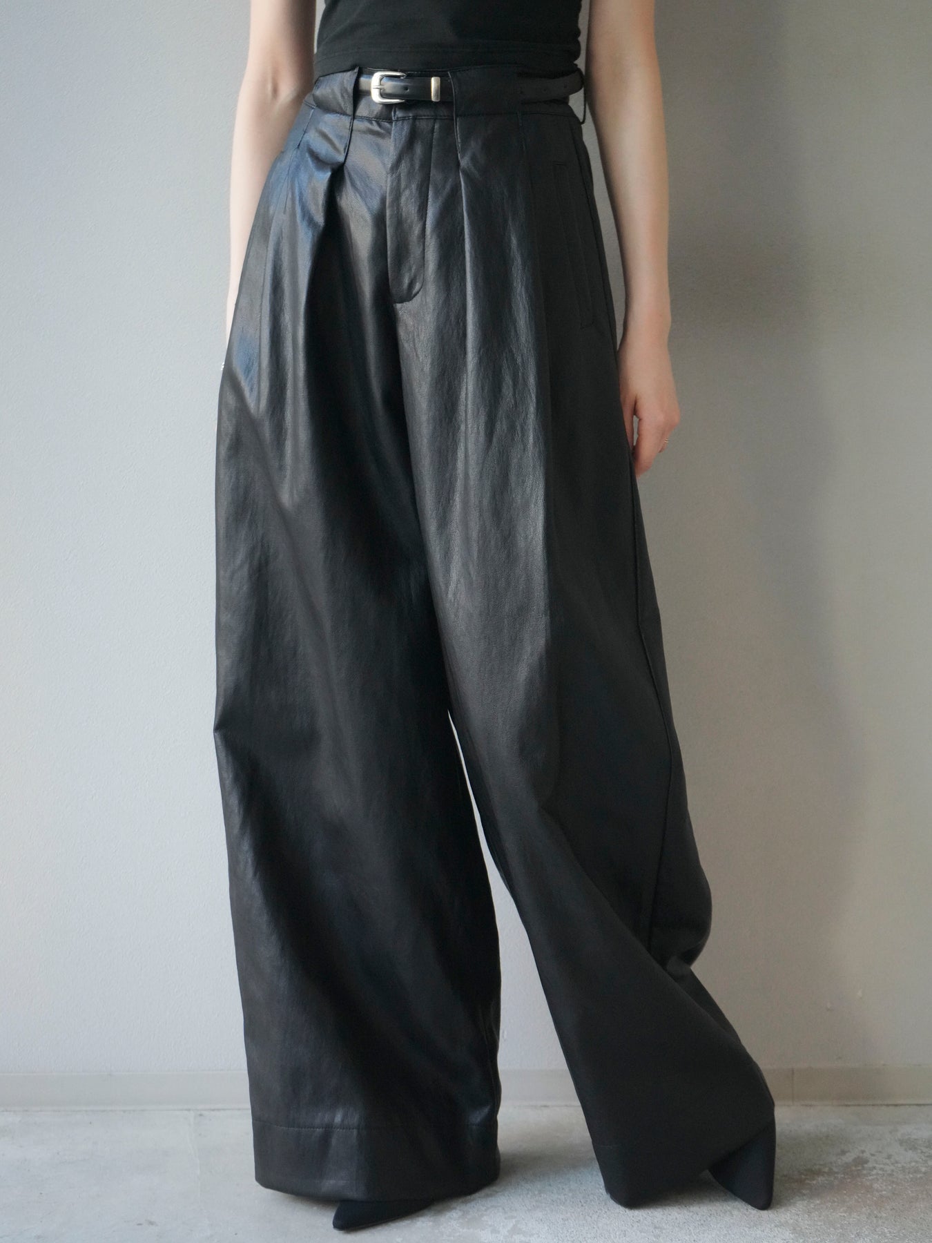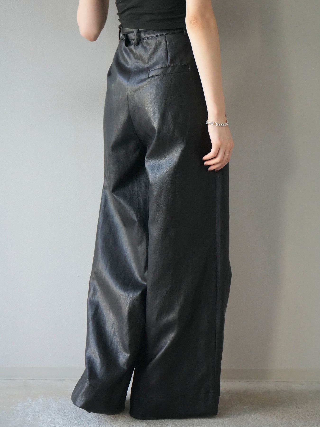 [予約]レザーワイドパンツ/black