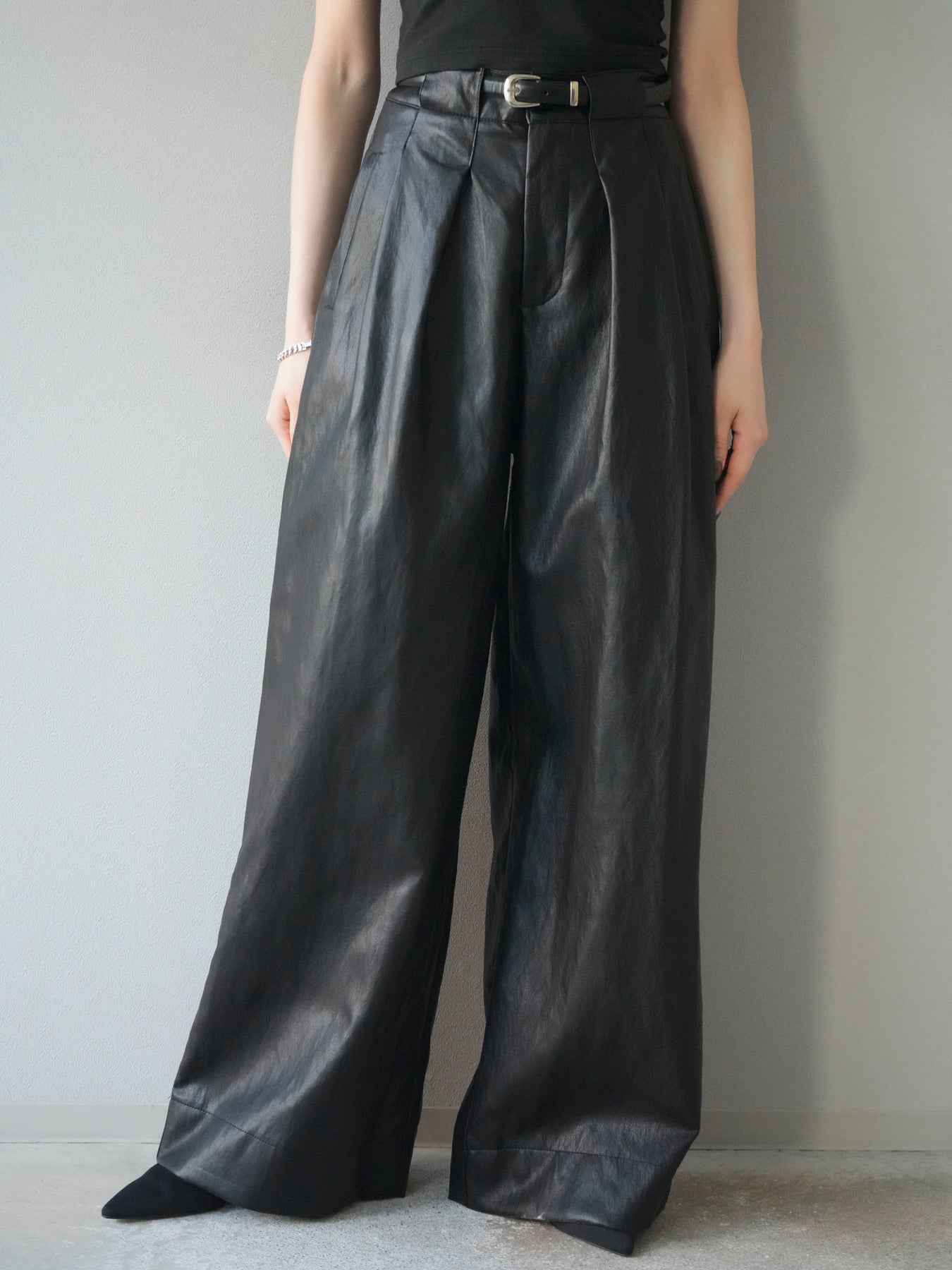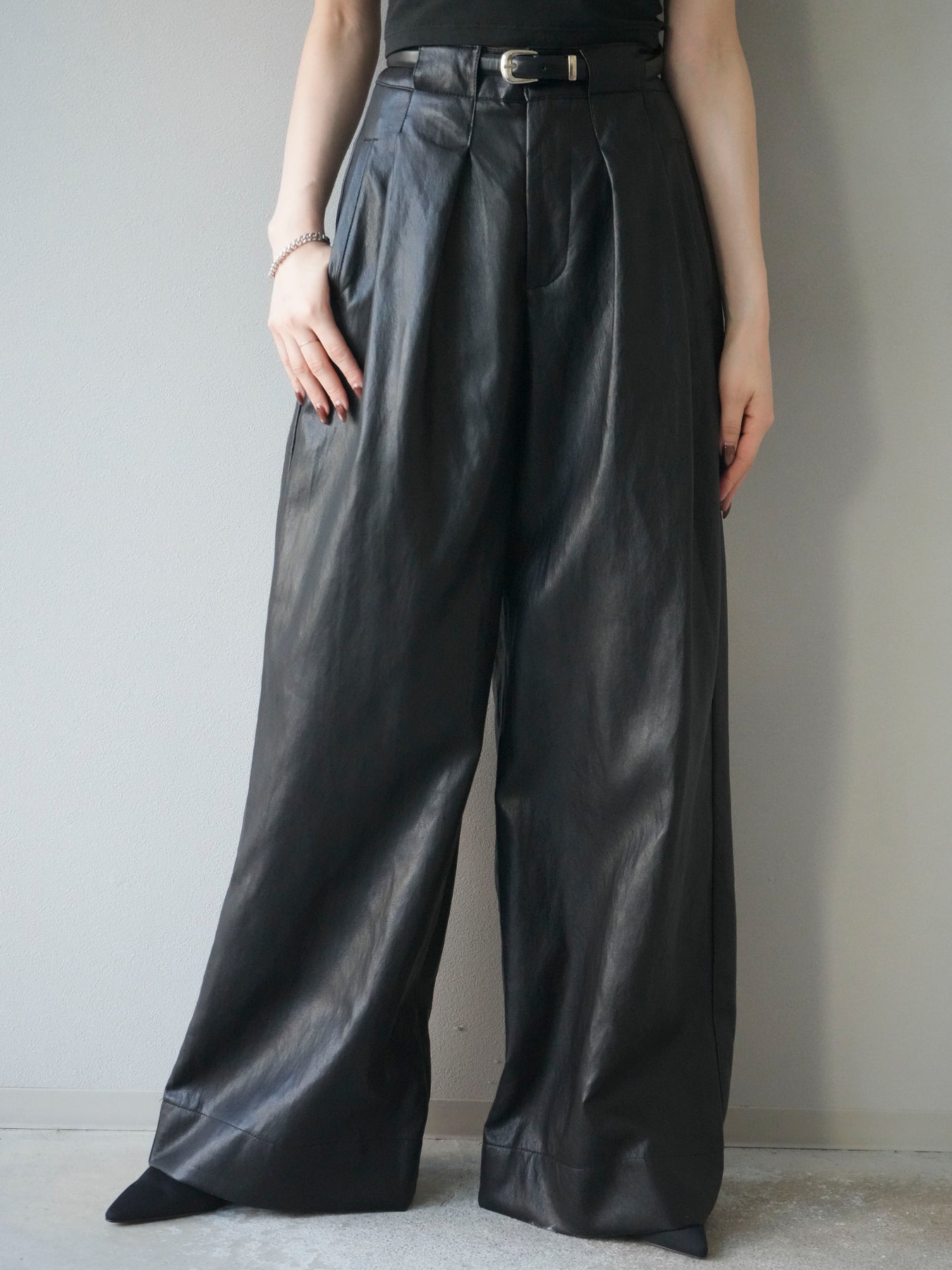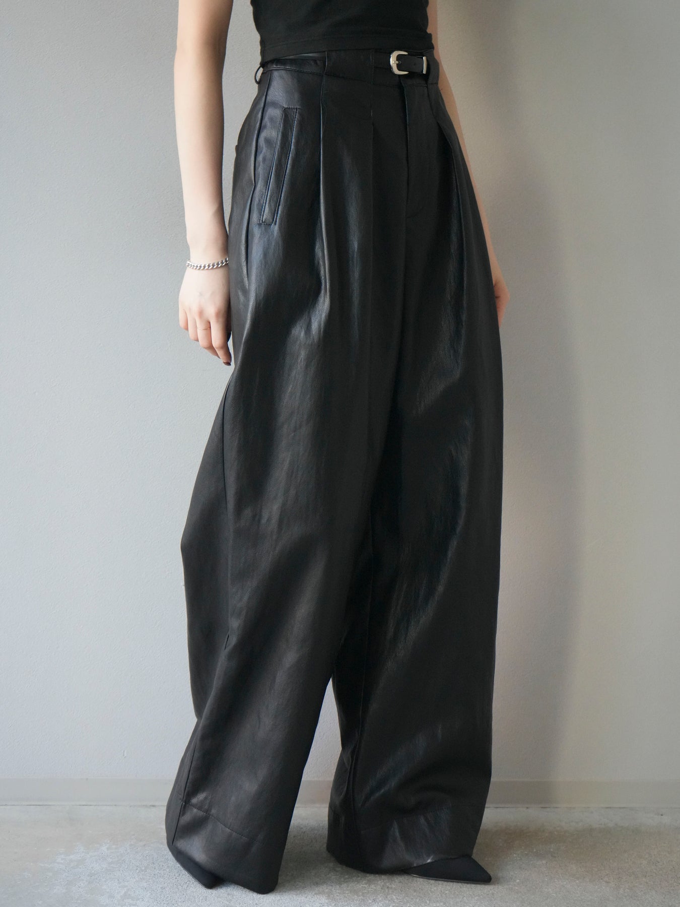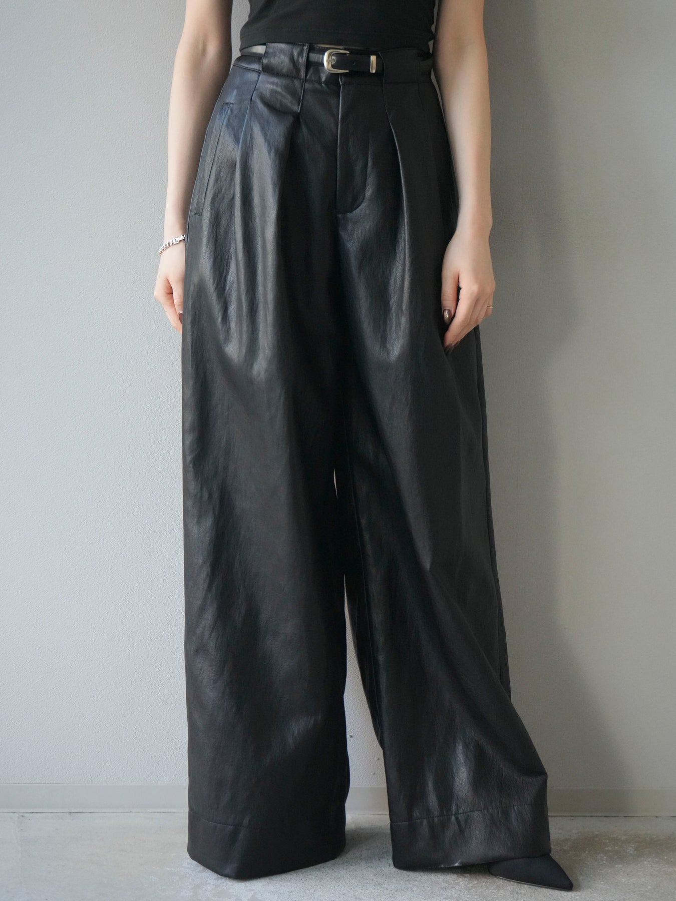 [予約]レザーワイドパンツ/black