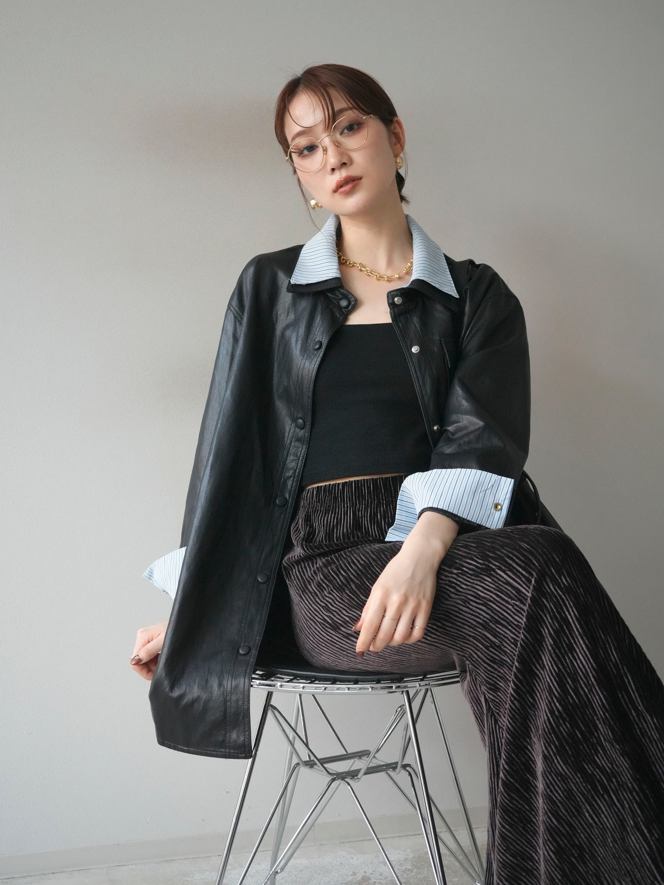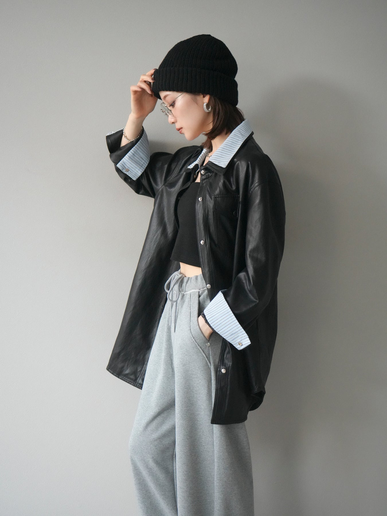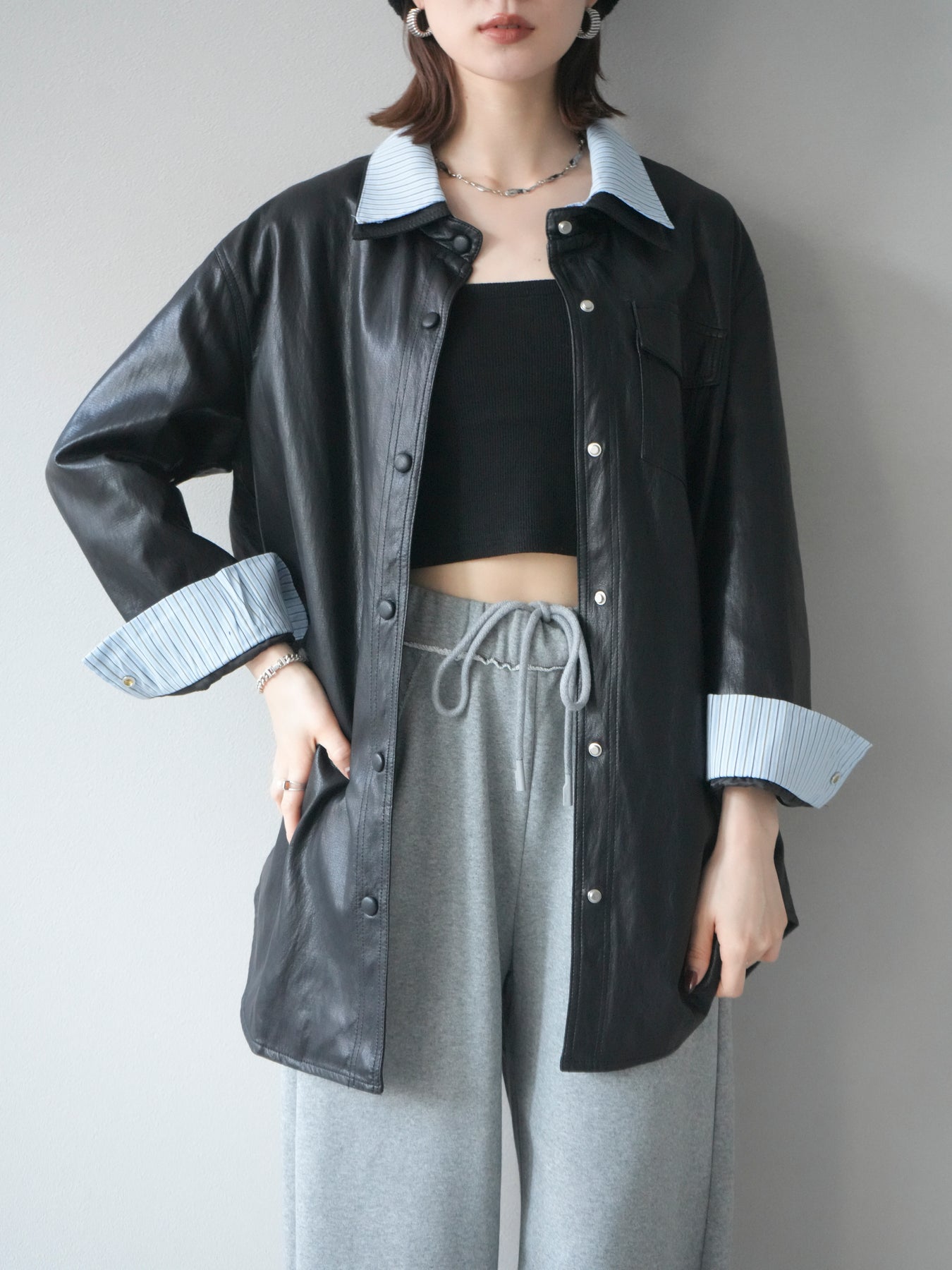 [予約]シャツレイヤードデザインレザージャケットに関連する商品を探す↓