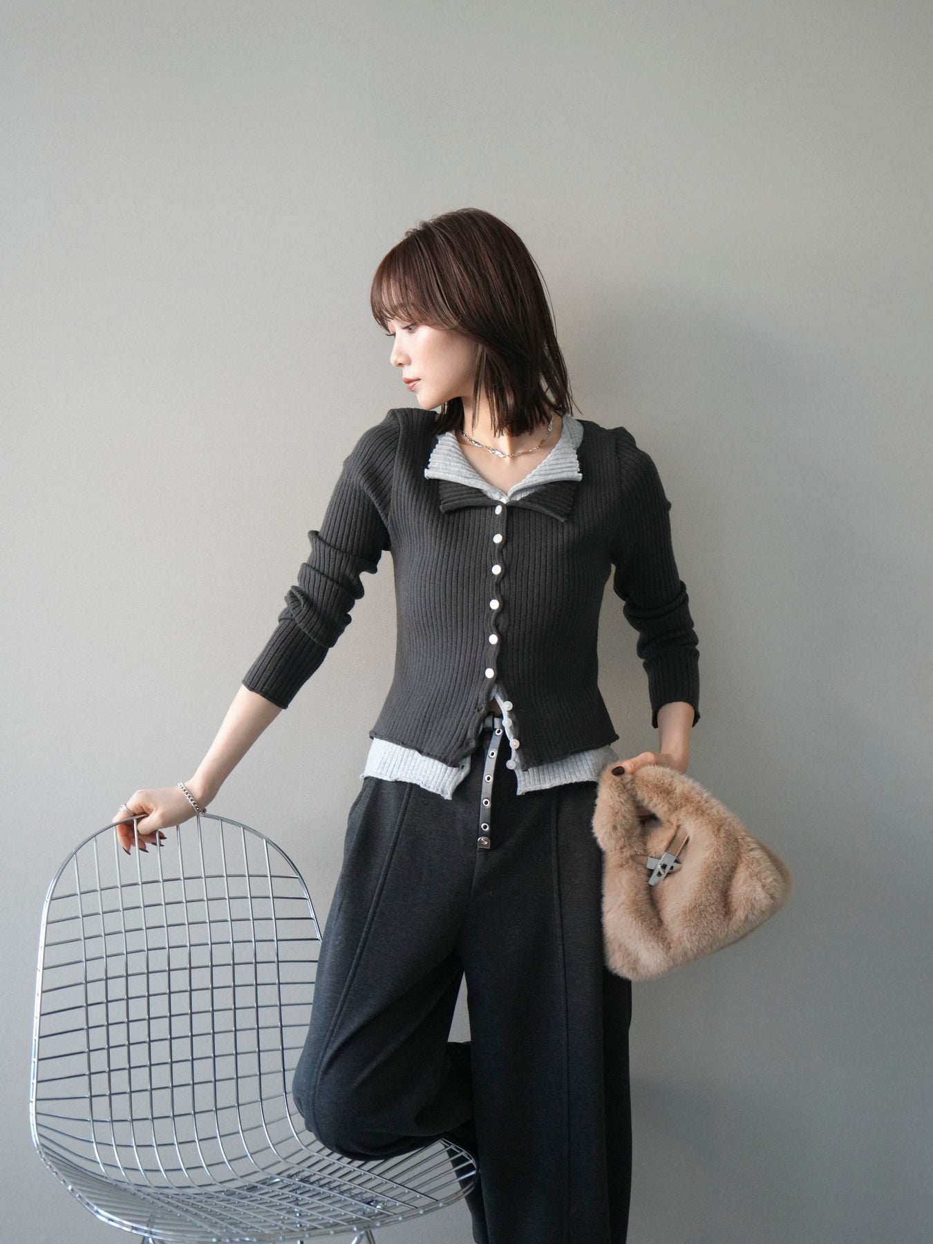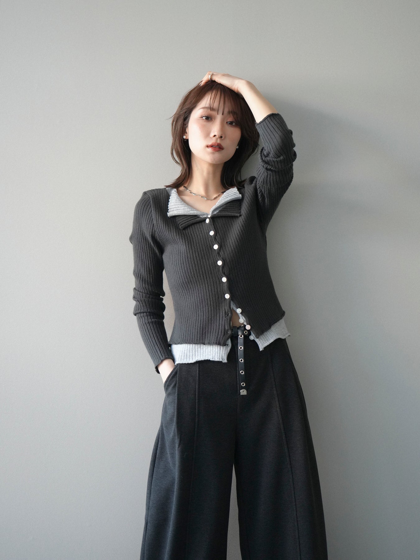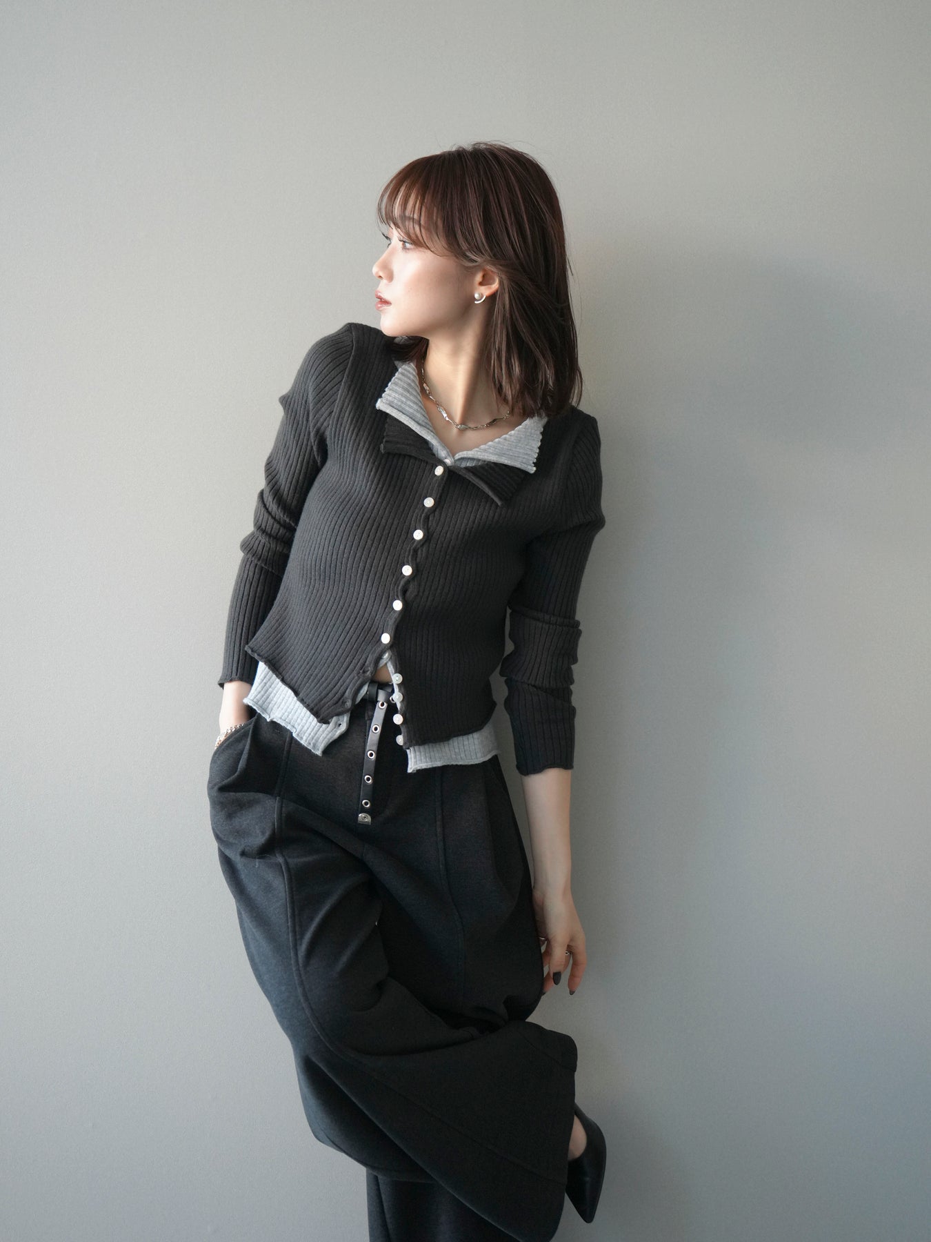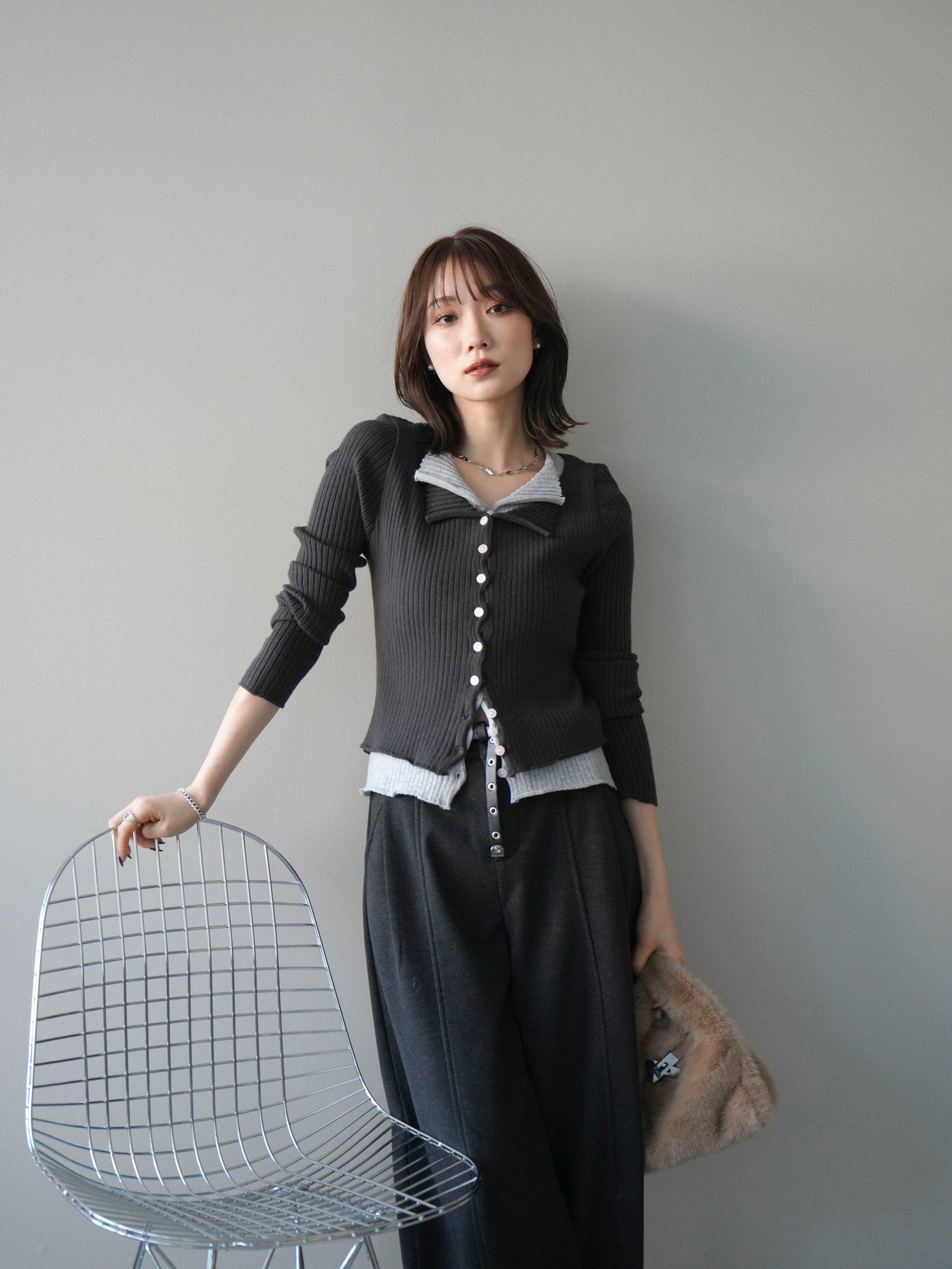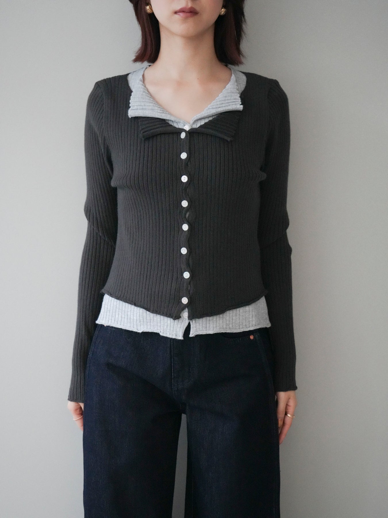 [予約]配色レイヤードリブニットカーディガン/charcoal