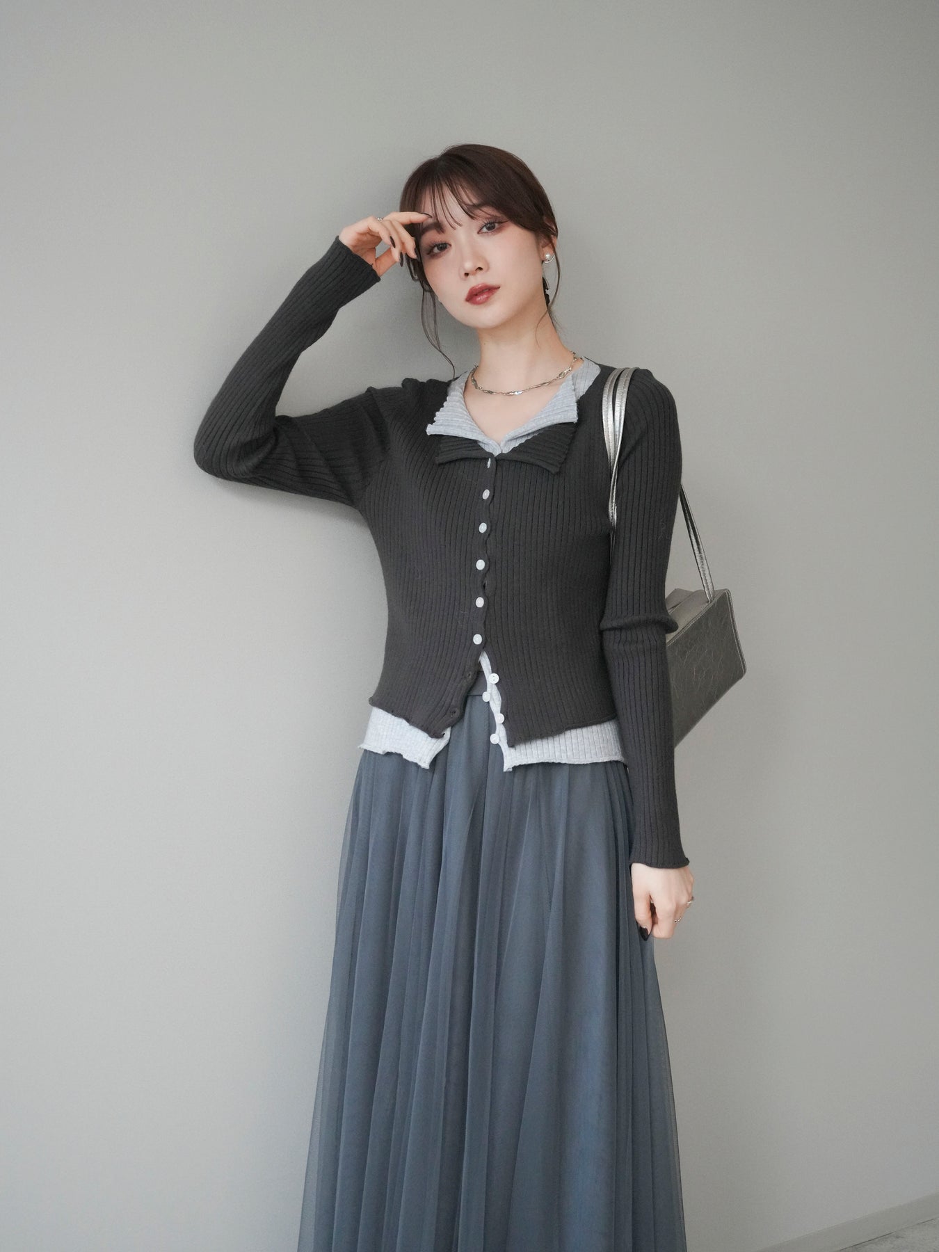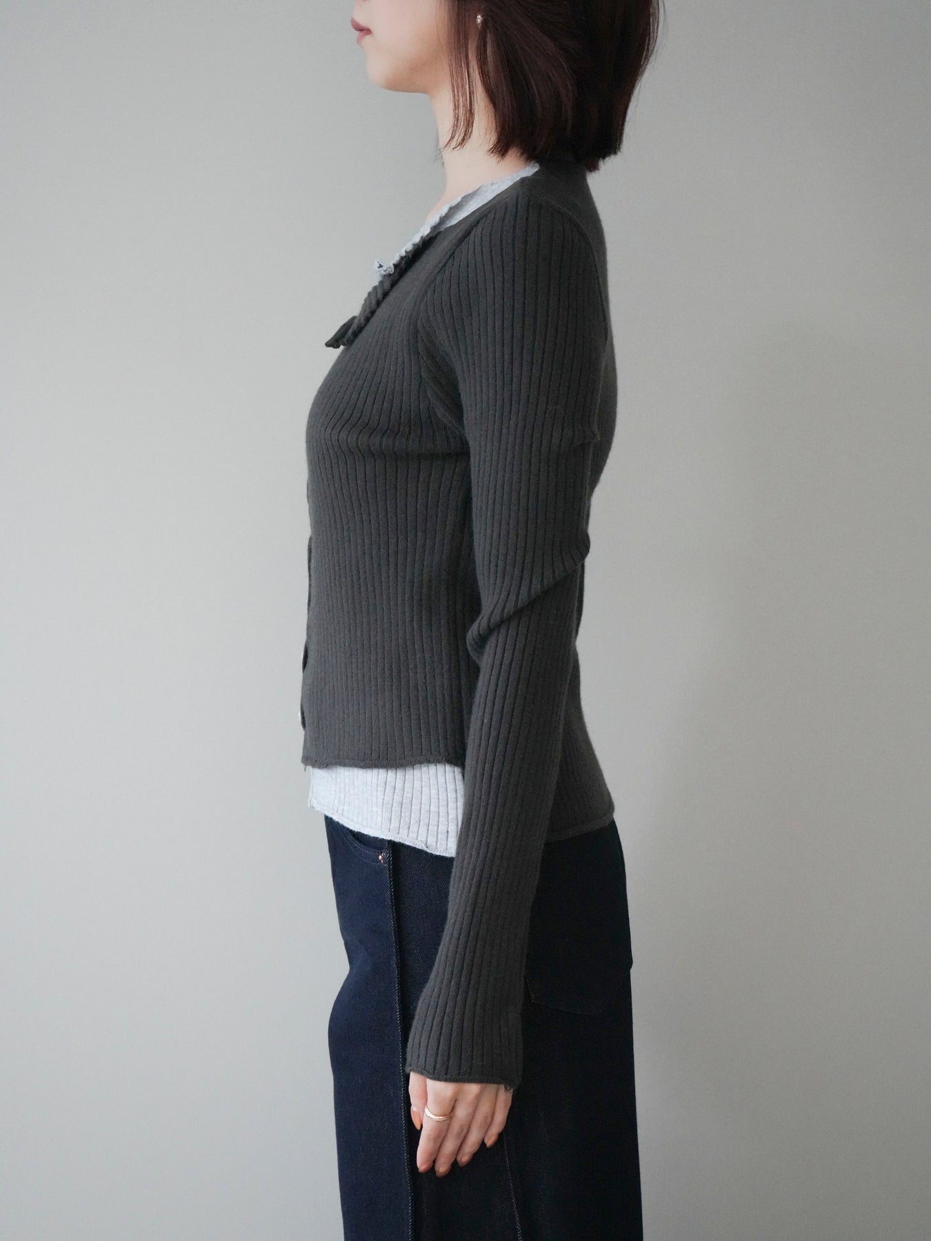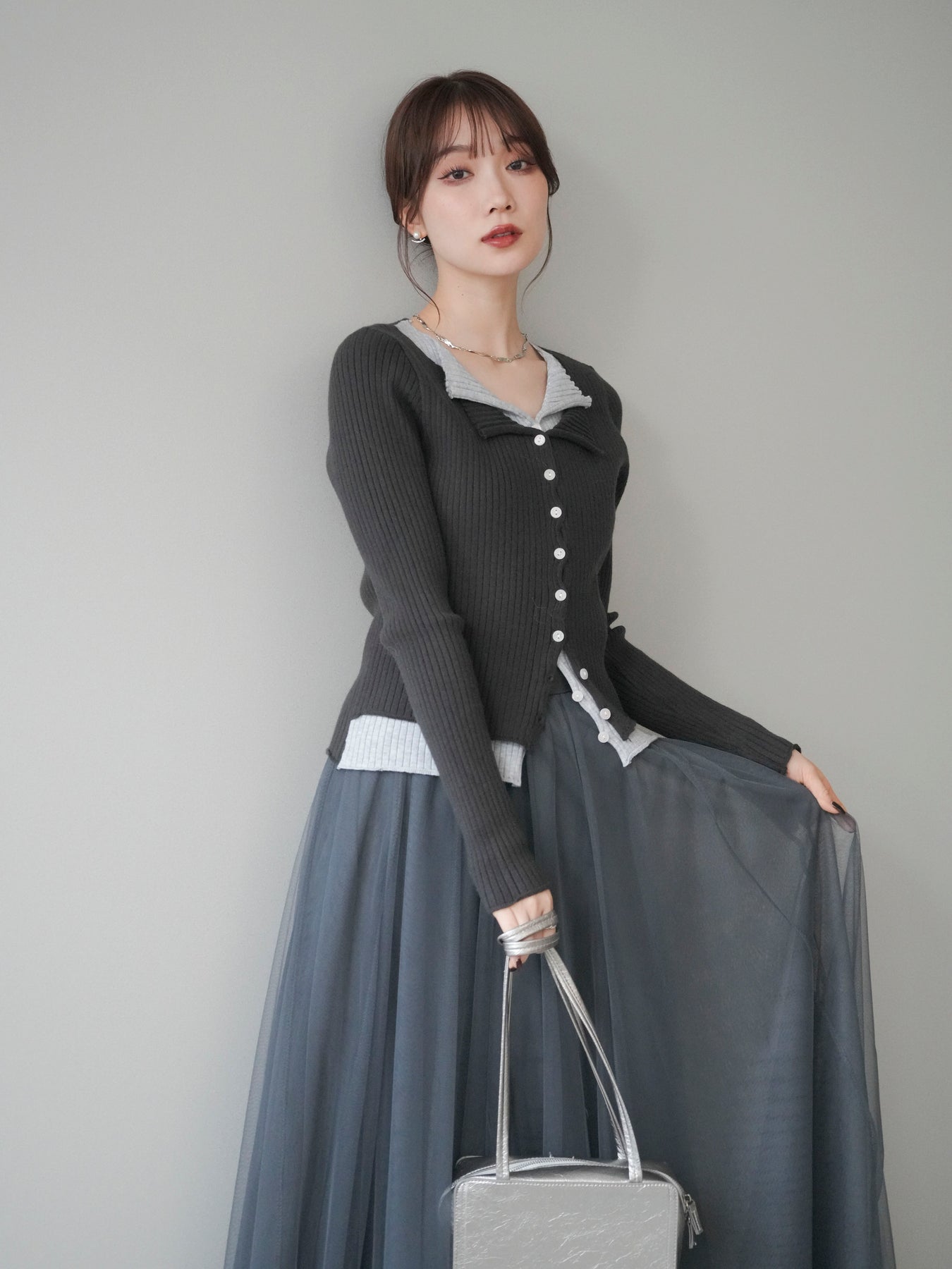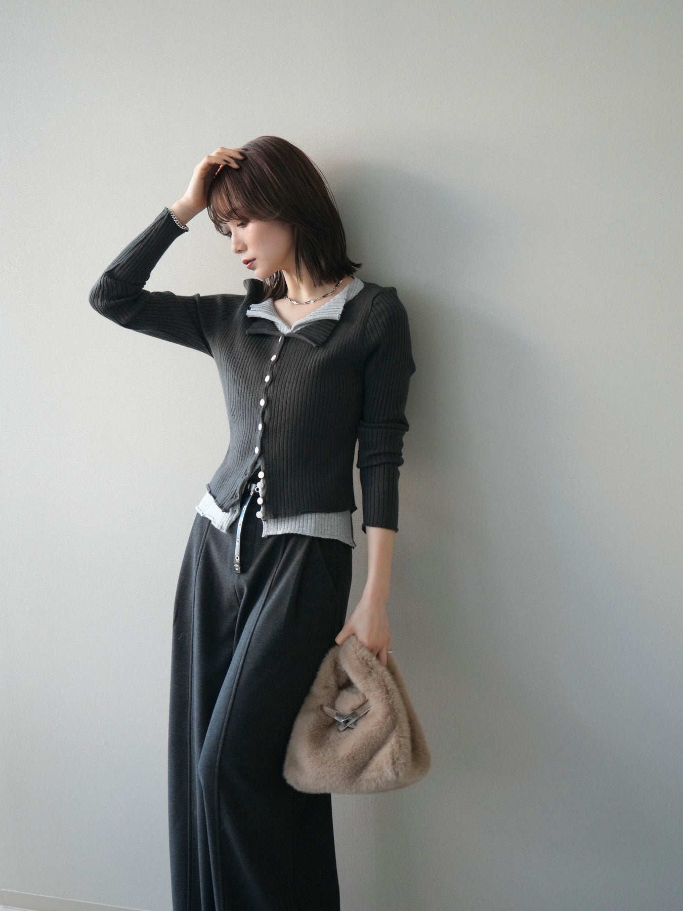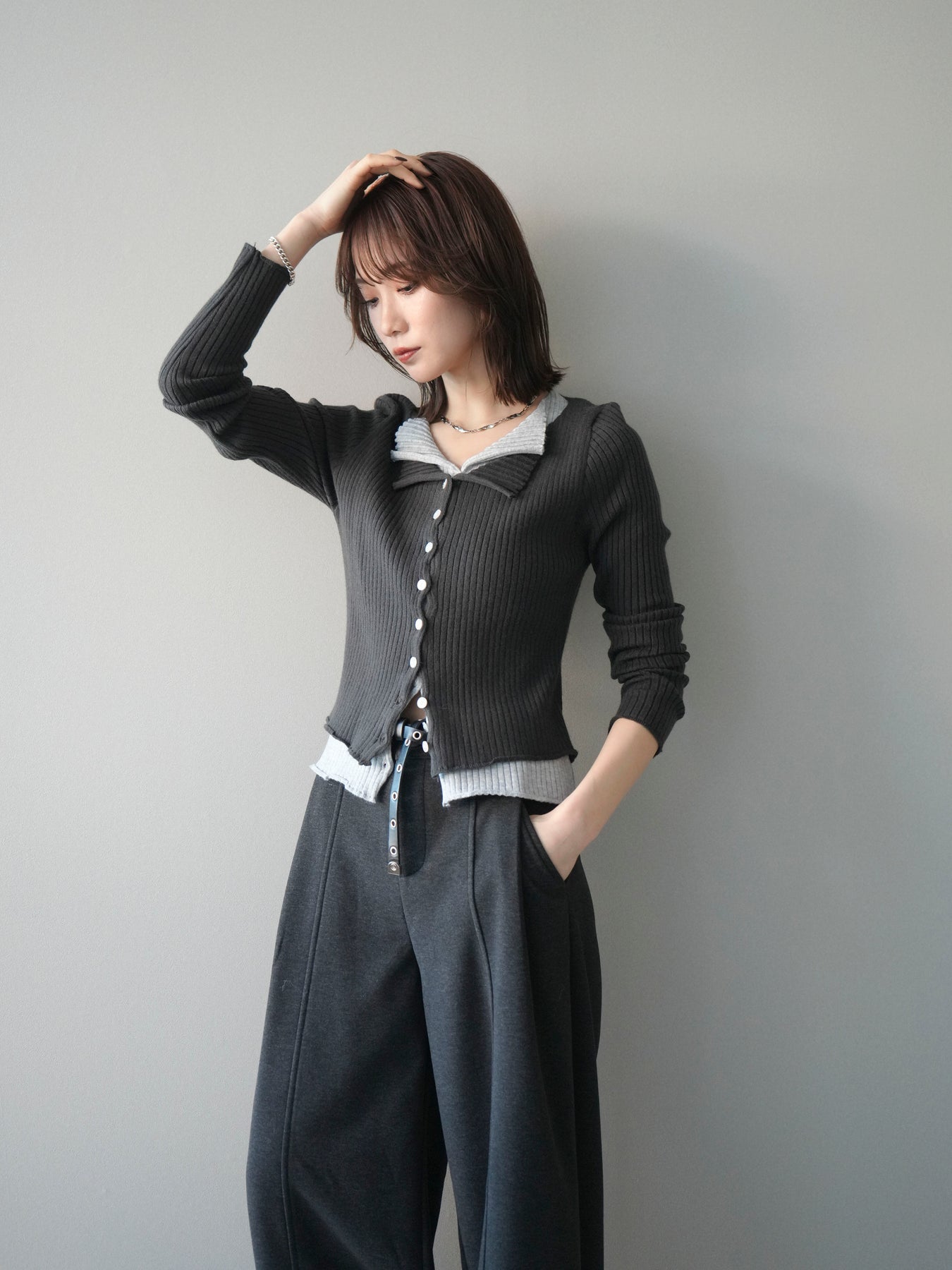[予約]配色レイヤードリブニットカーディガン/charcoal