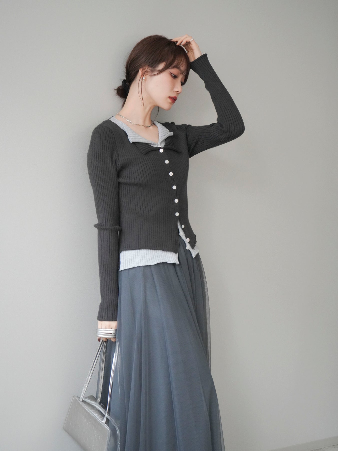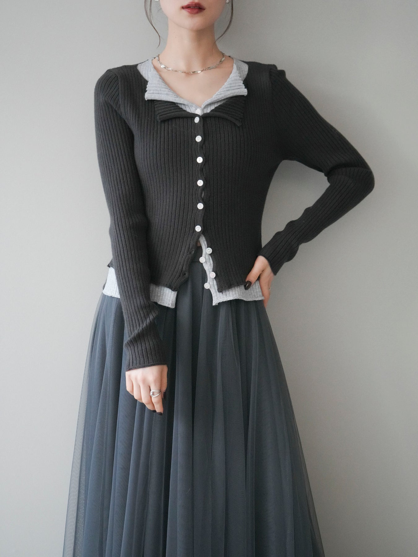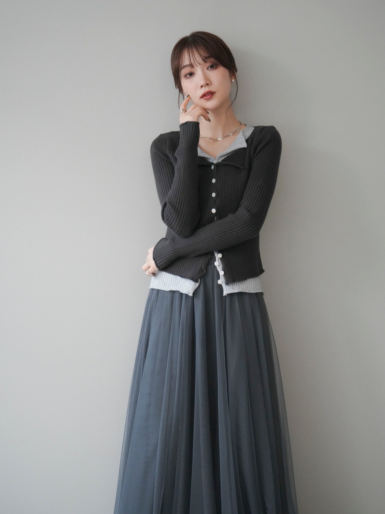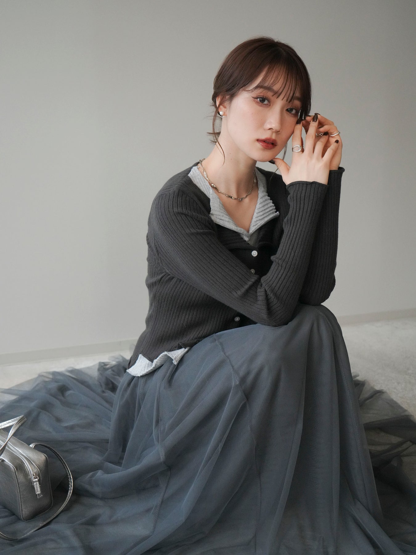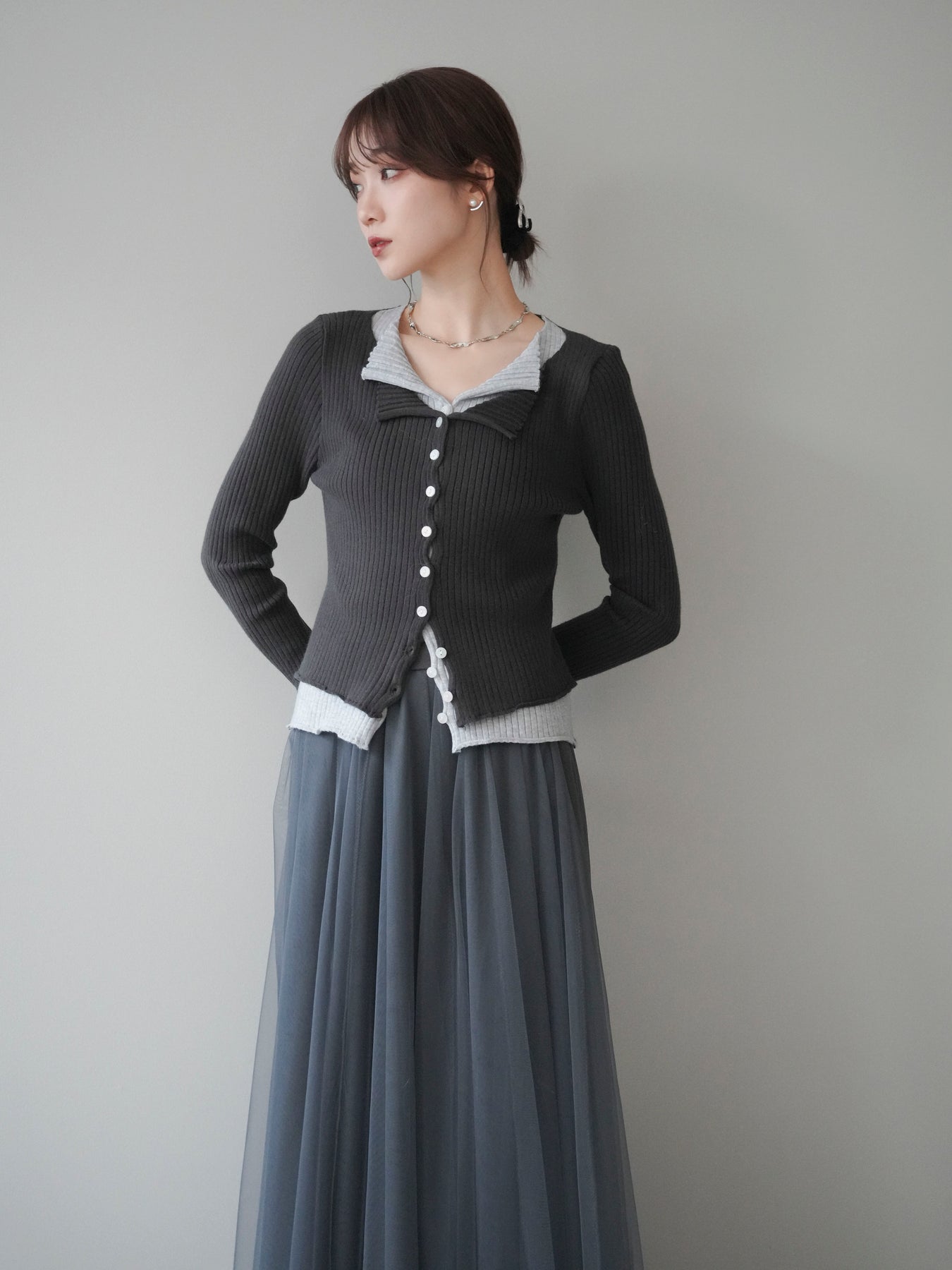 [予約]配色レイヤードリブニットカーディガン/charcoal