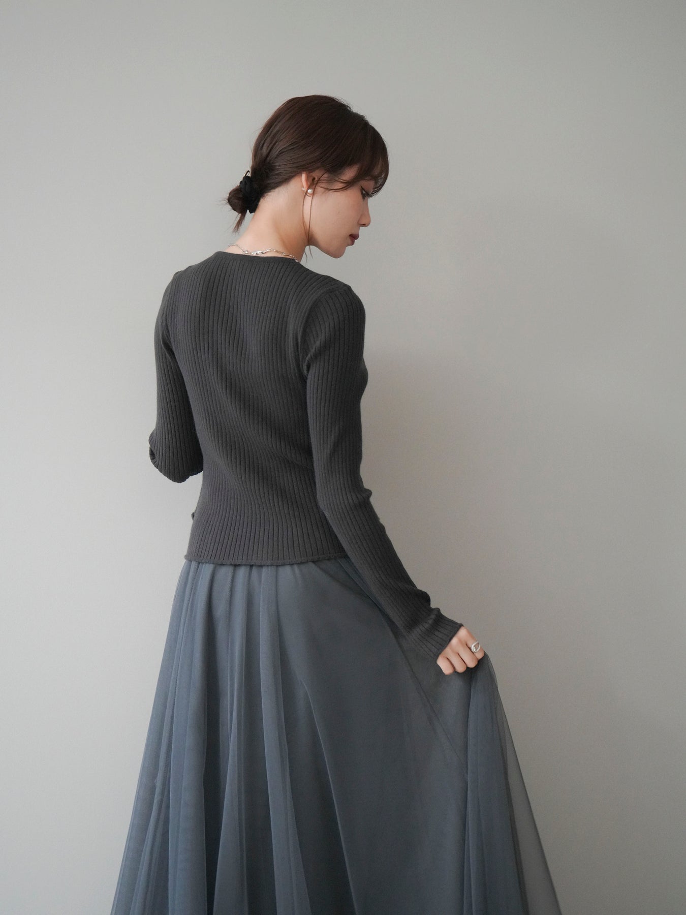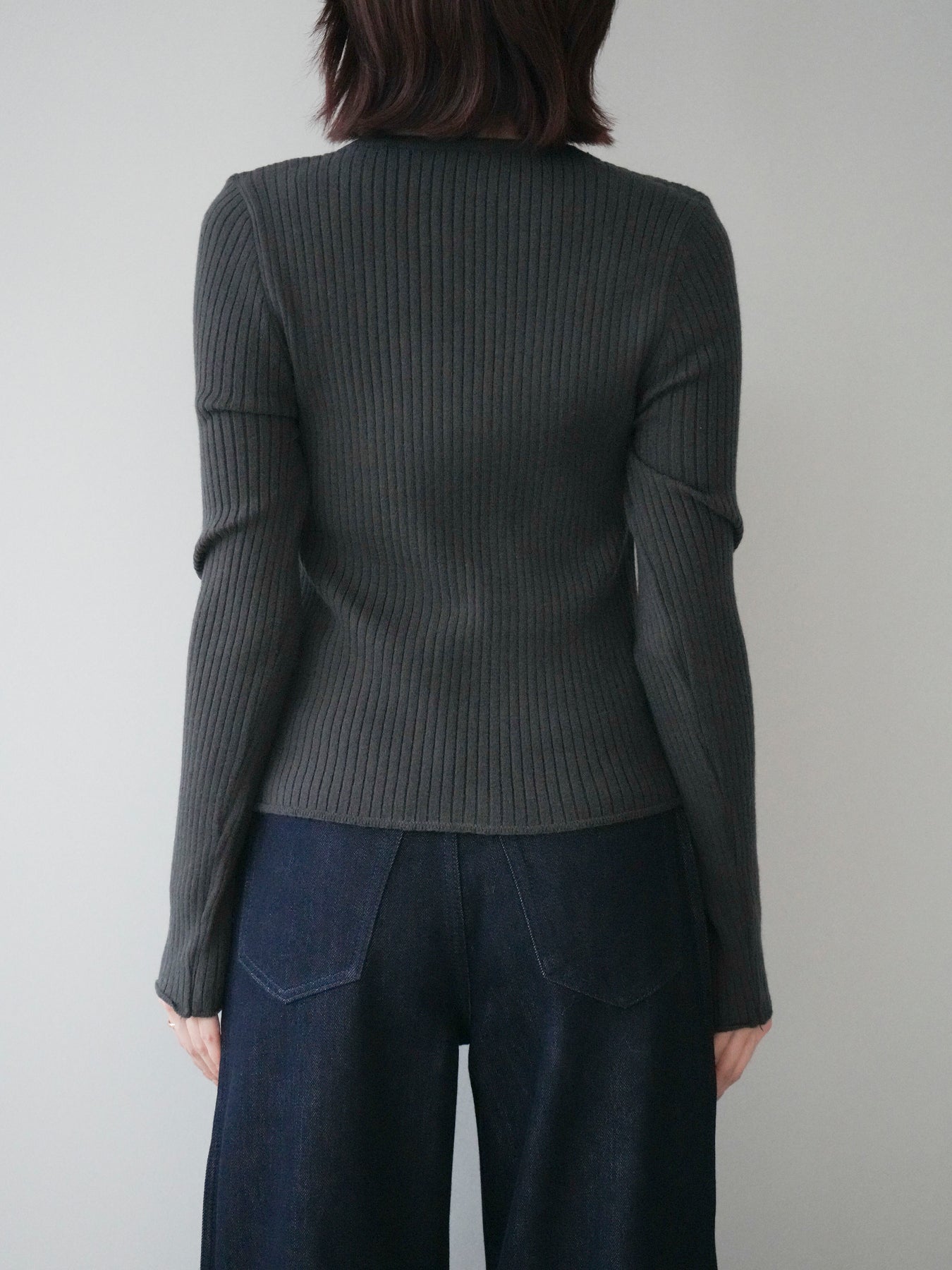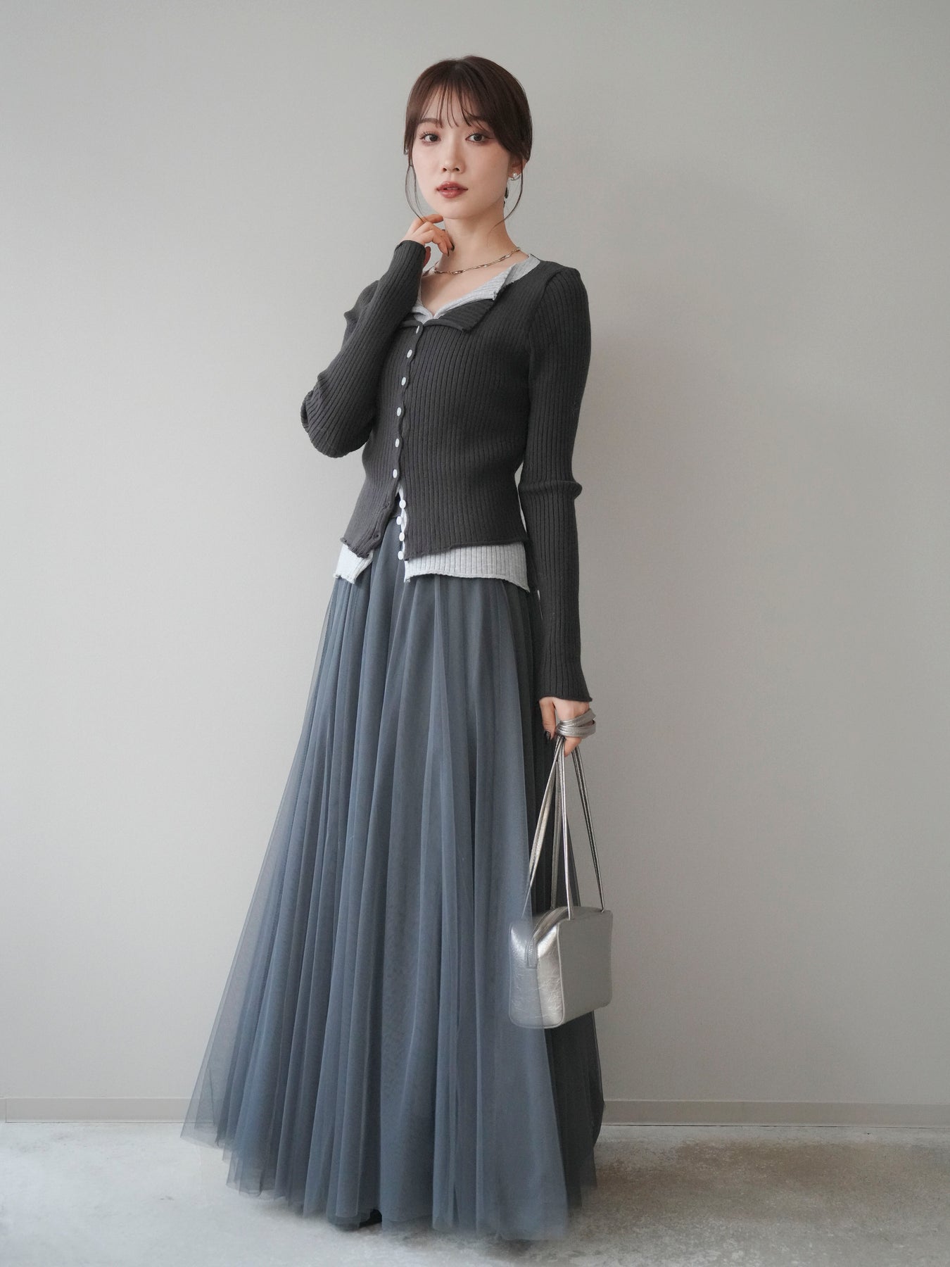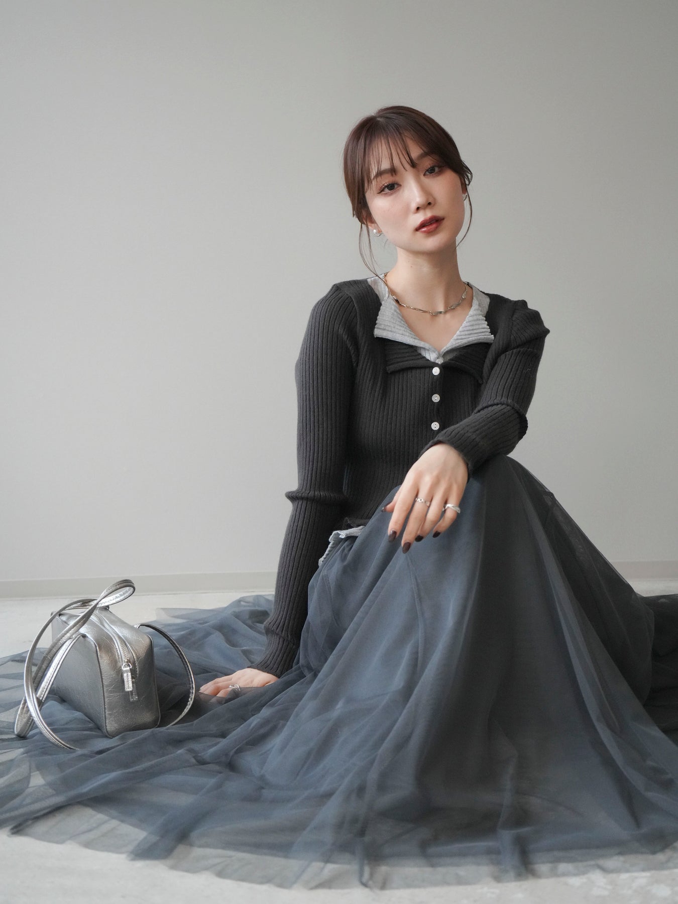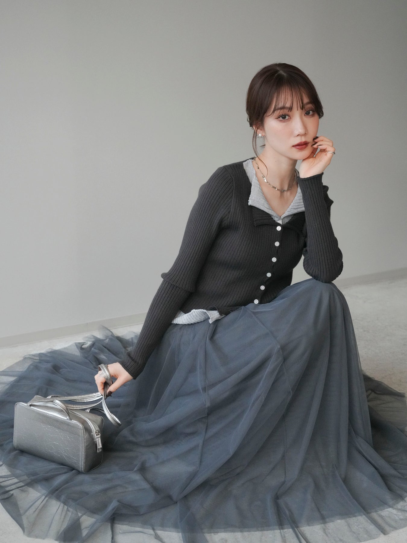 [予約]配色レイヤードリブニットカーディガン/charcoal