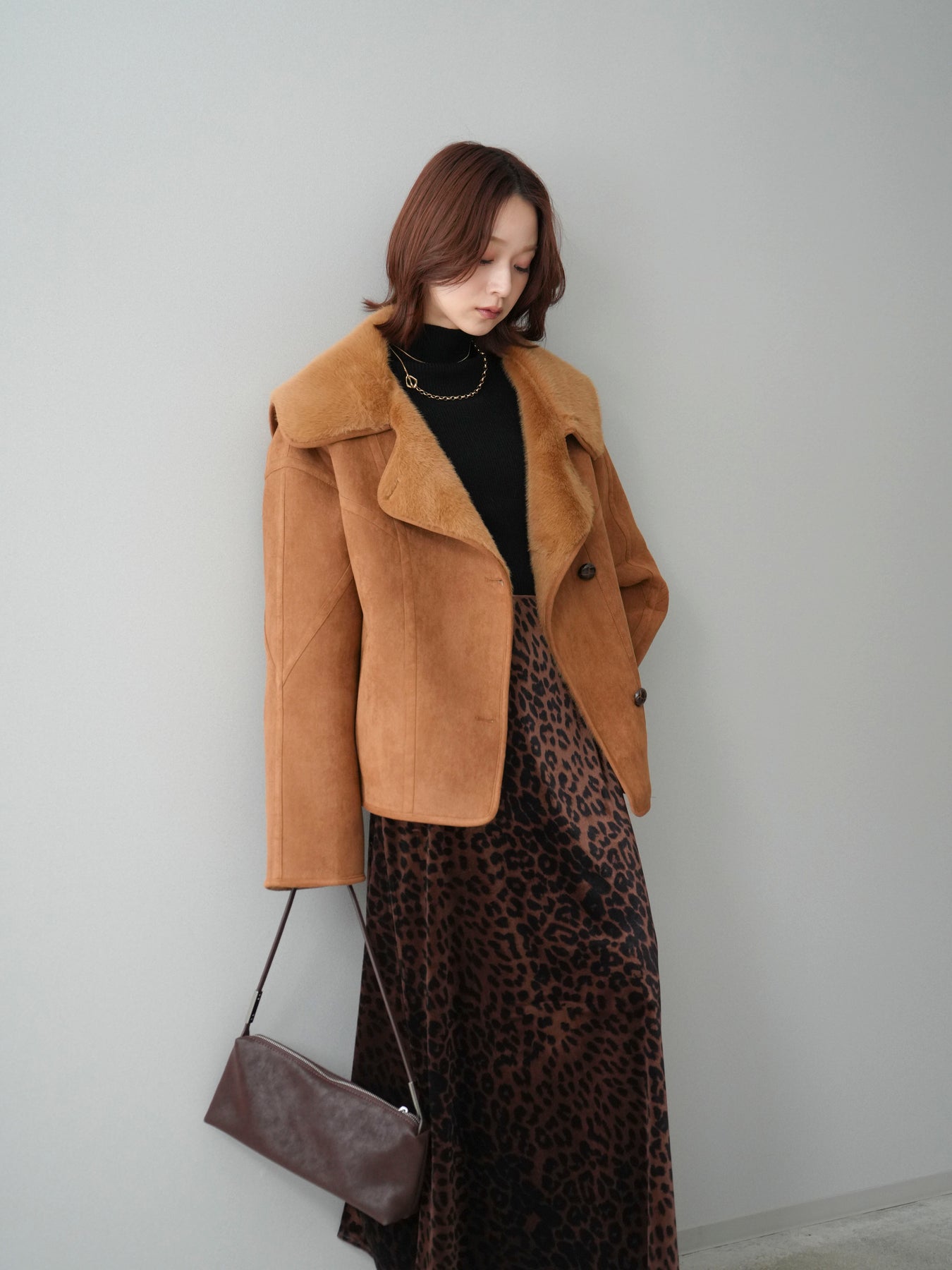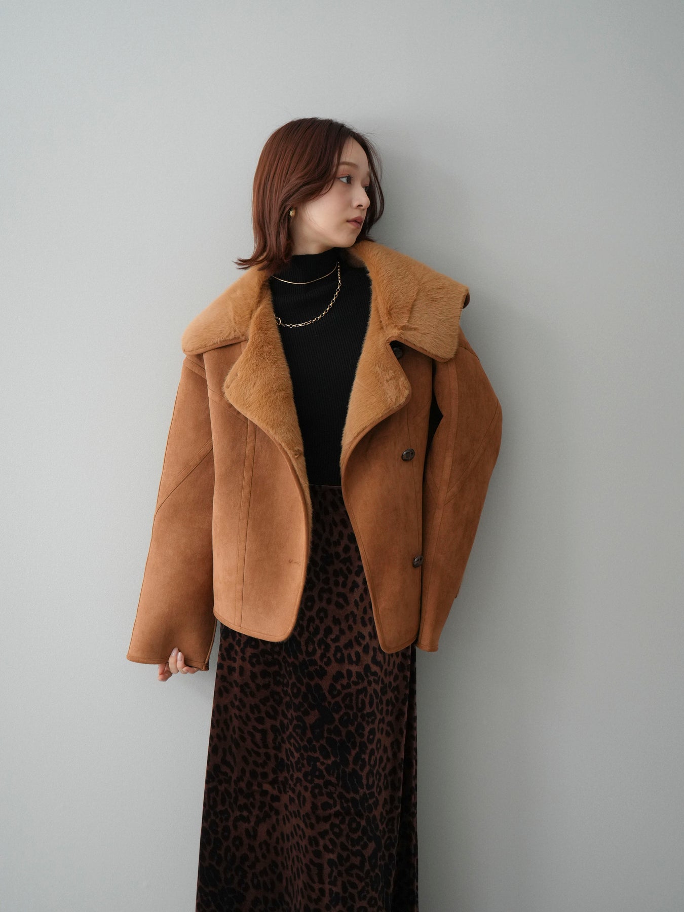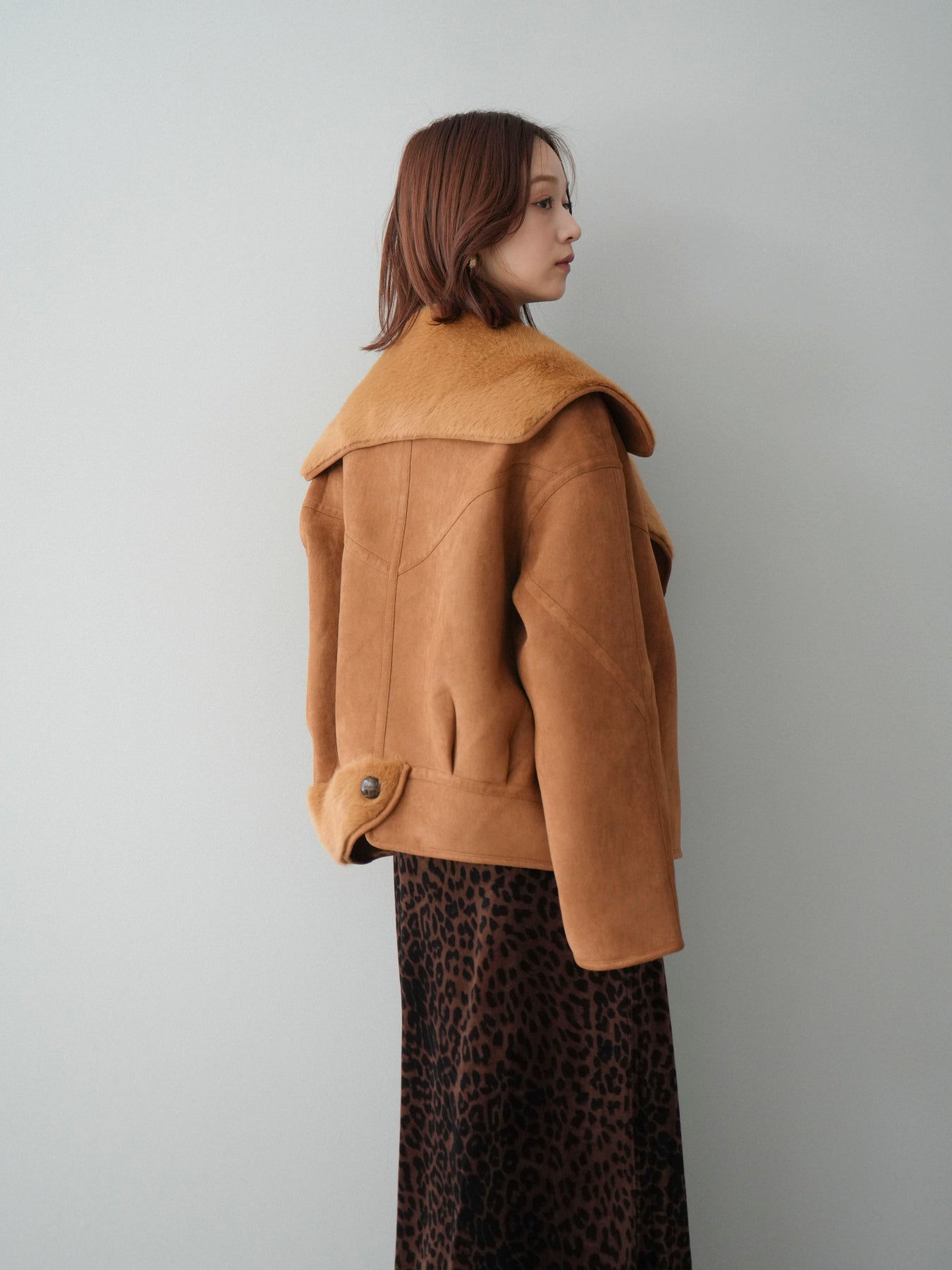 ムートン調素材を使用したショート丈ジャケット。ボリュームのある襟デザインが顔まわりに存在感を与えつつ、バランスの取りやすい丈感でスタイリングをすっきりとまとめます。羽織るだけで季節感のあるコーディネートが完成する一着です。