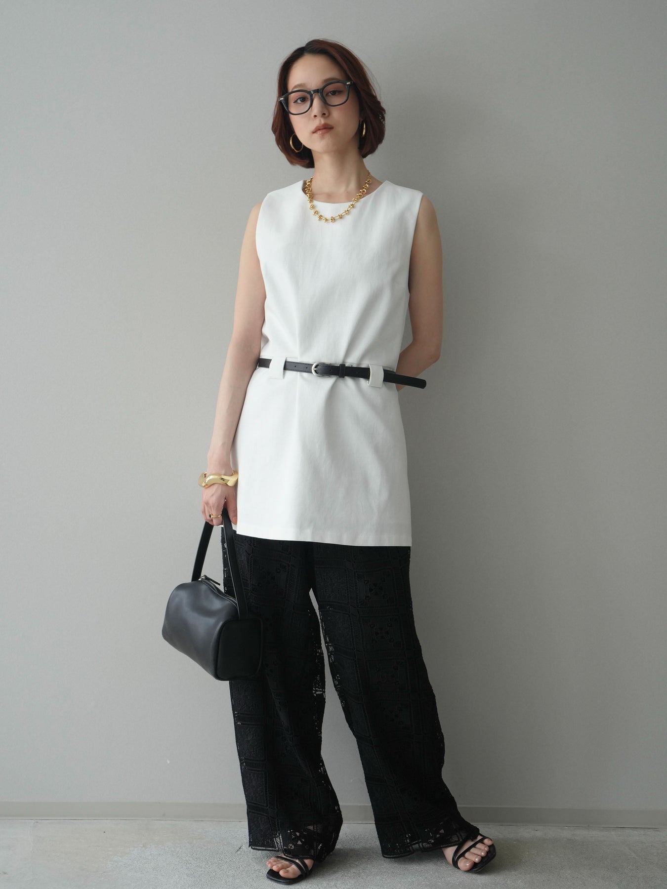 さらりとした風合いが魅力のリネンライク素材を使用したノースリーブチュニック。すっきりとしたIラインシルエットに共布ベルトを添えることで、ウエストマークしたメリハリのある着こなしが楽しめます。ヒップまわりをさりげなくカバーする丈感で、パンツ合わせはもちろん、細身ボトムとのレイヤードにも好相性。シンプルながらも洗練された印象に仕上がる一枚です。 ※ボトムス、キャミソール(インナー)以外の商品は一律でインナーは付属していません