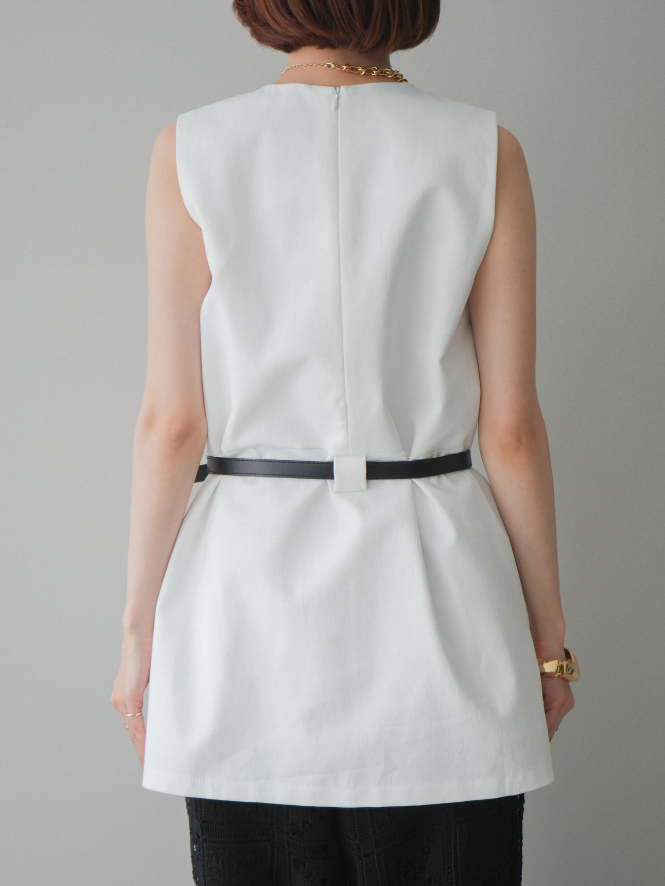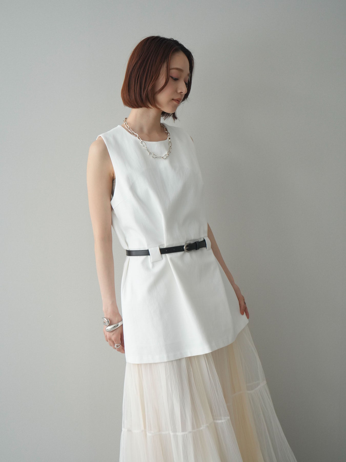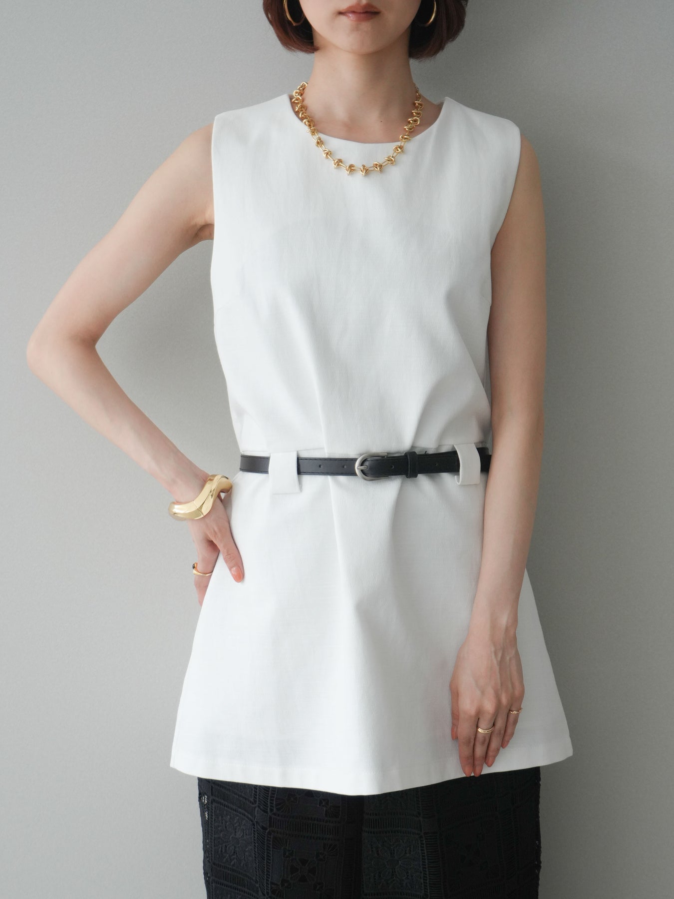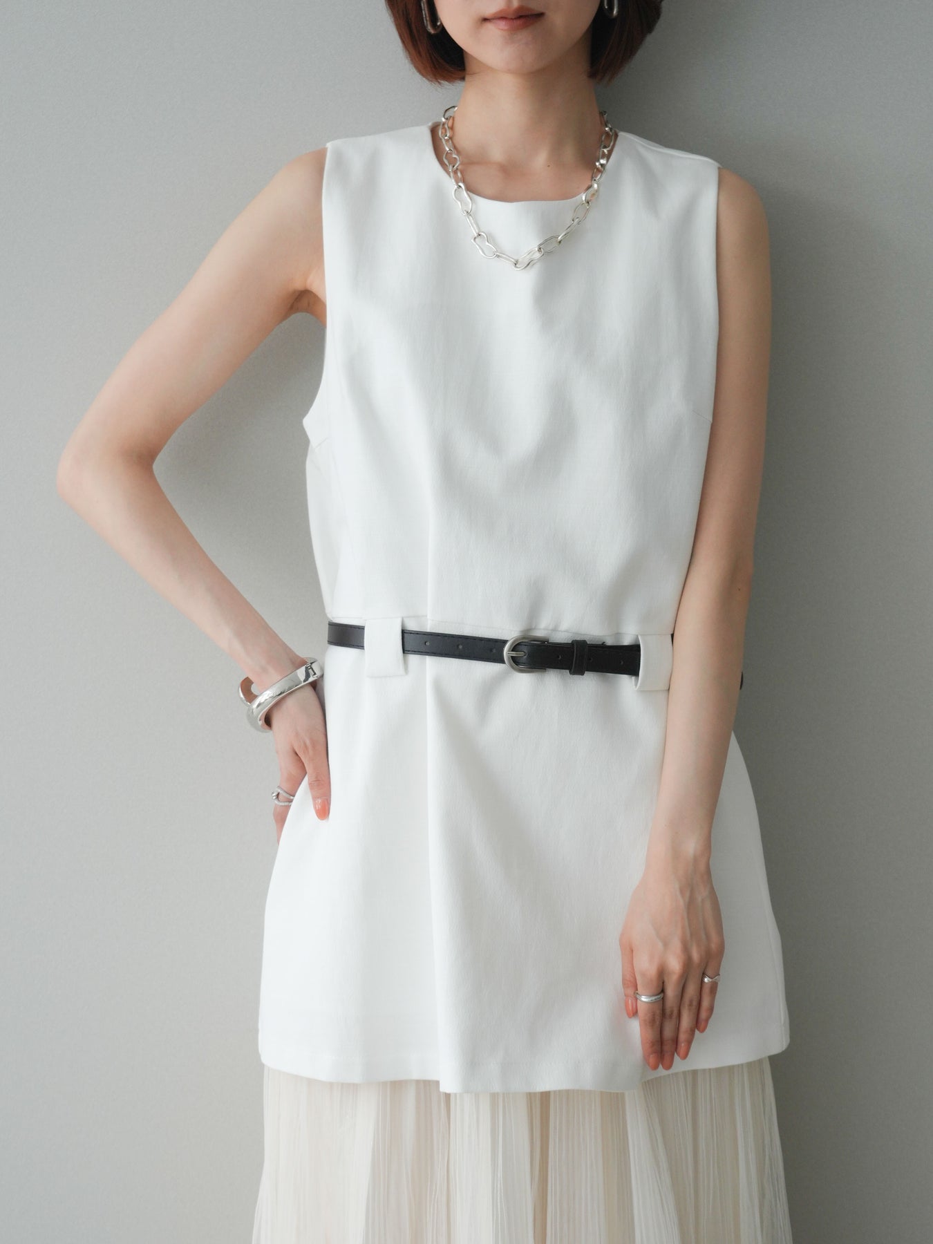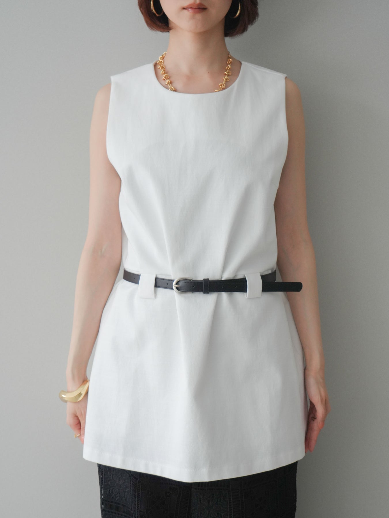 [予約]ベルト付リネンライクノースリチュニック/white