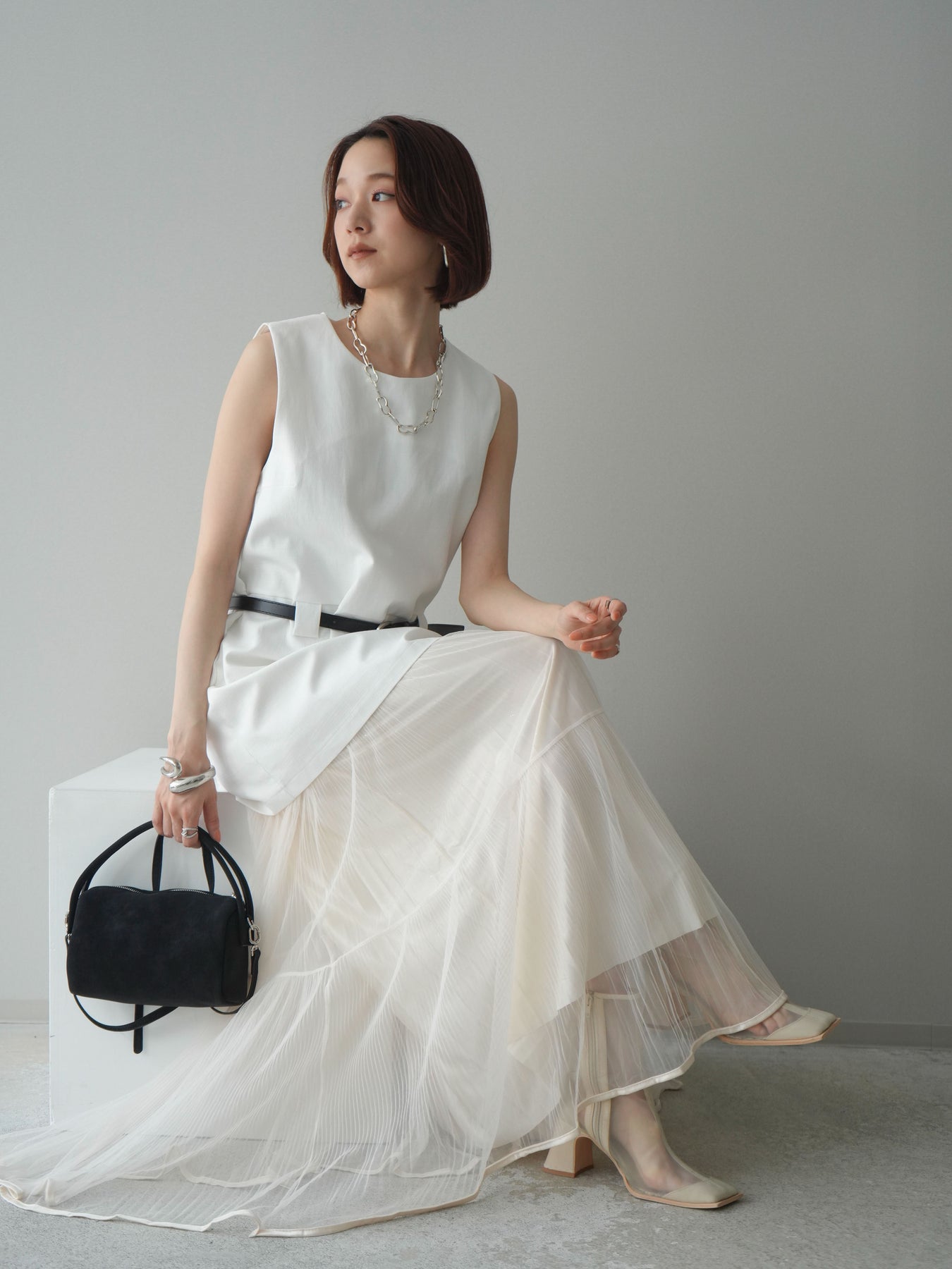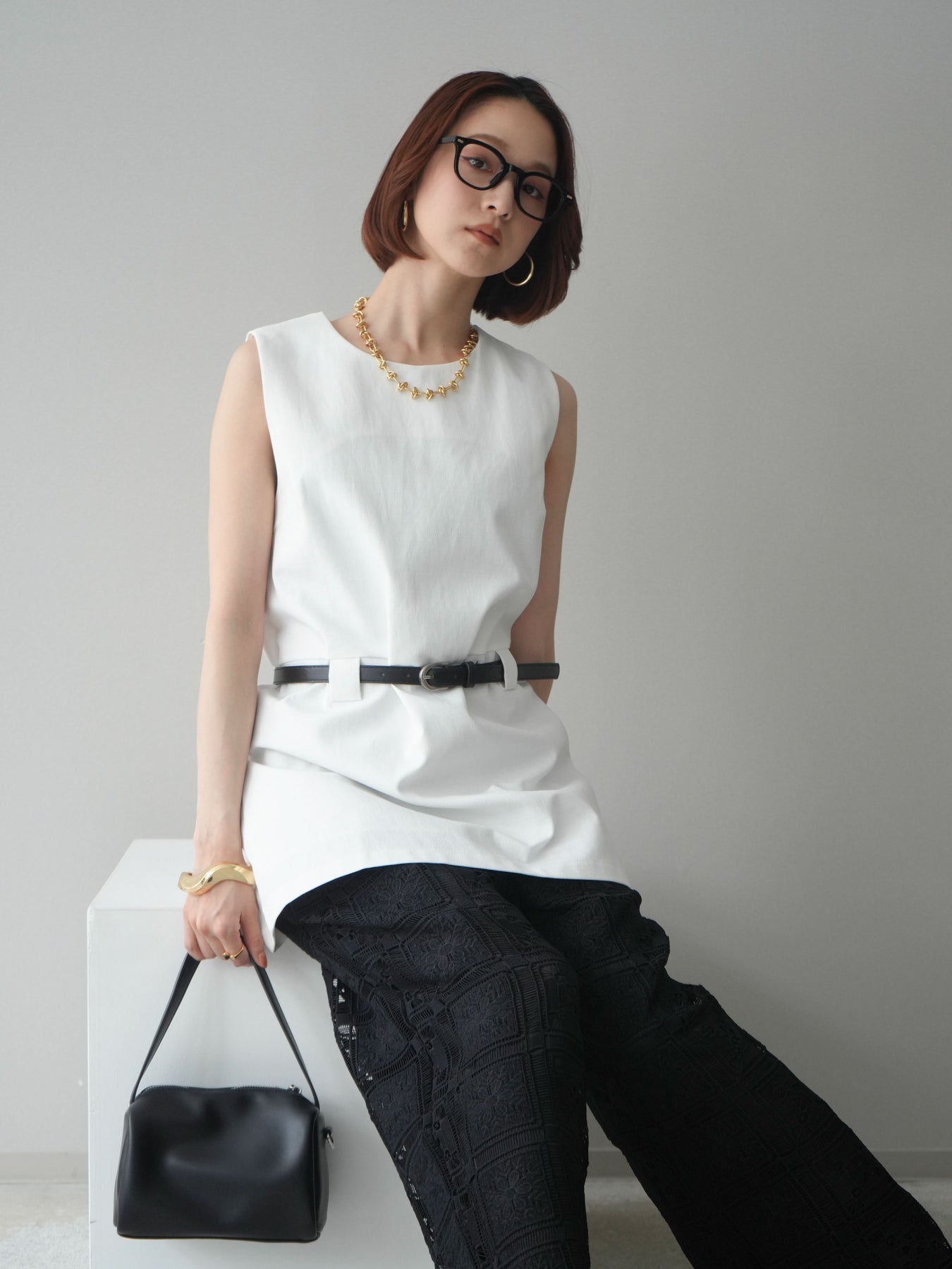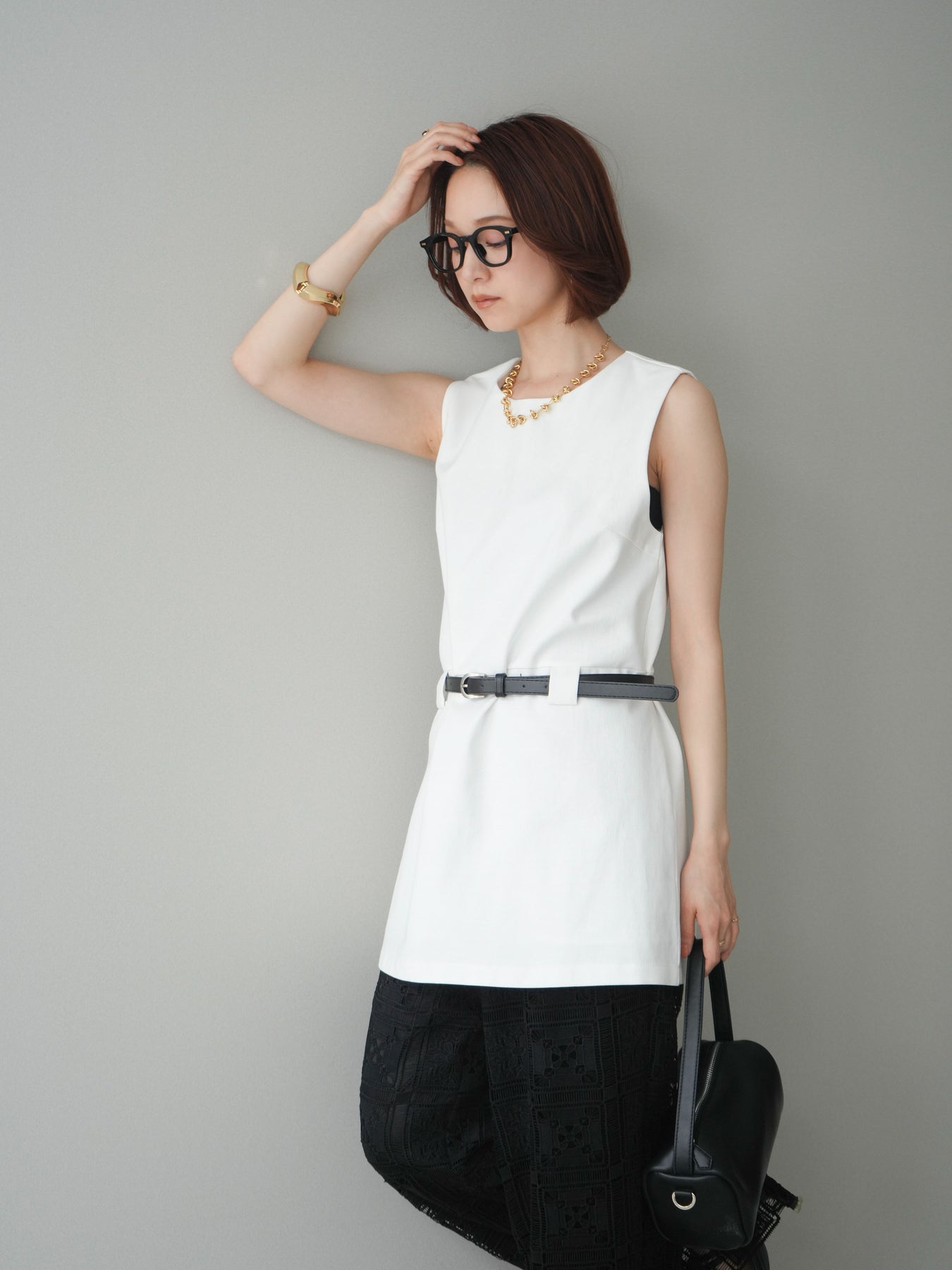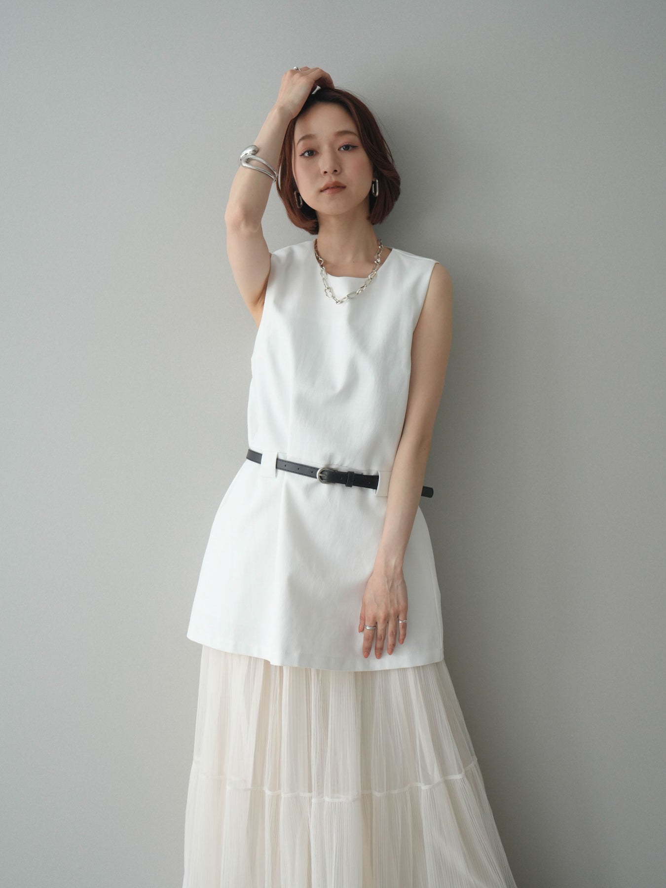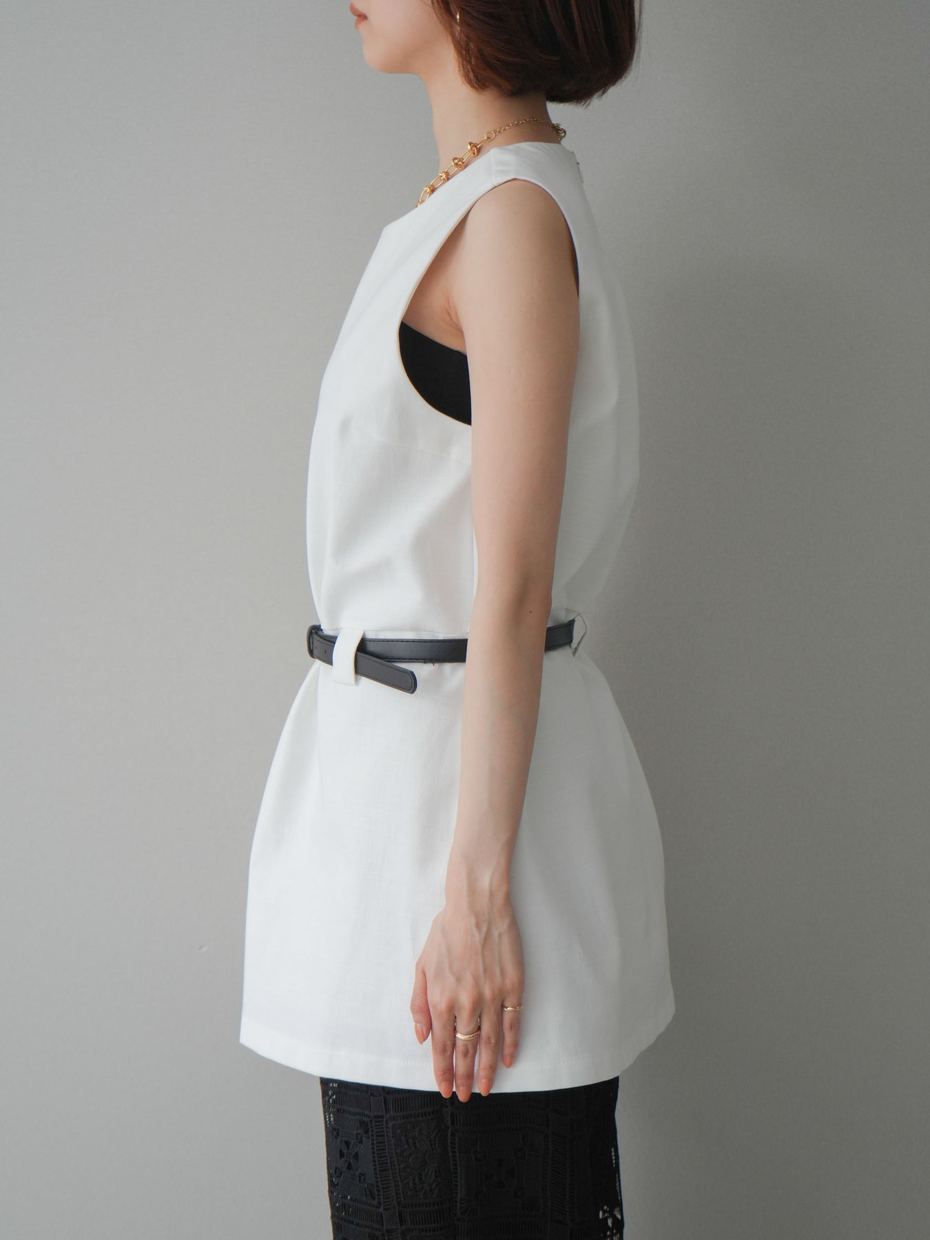 [予約]ベルト付リネンライクノースリチュニック/white