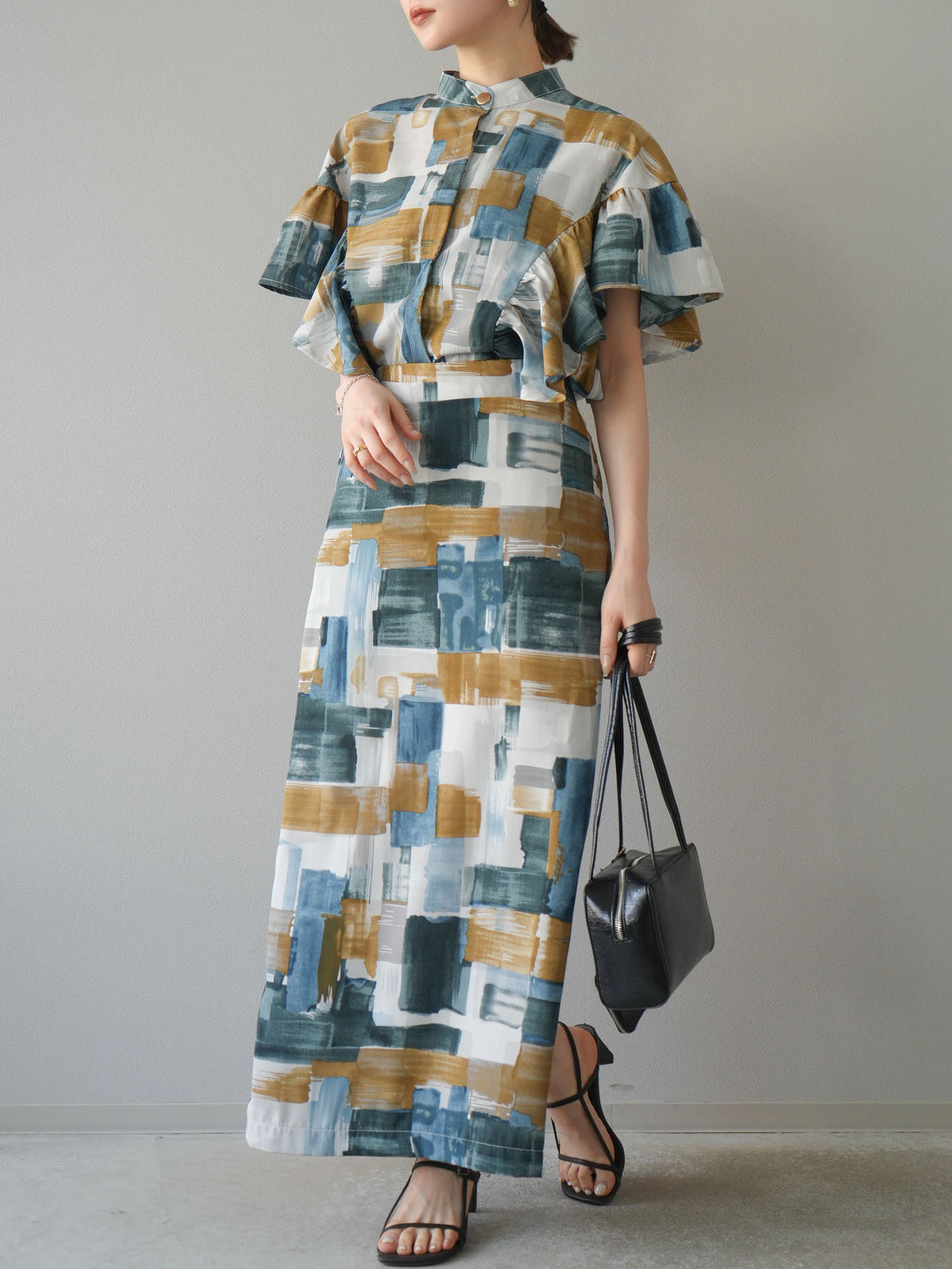 大胆なペイント柄が目を惹くナロースカート。落ち着いた配色で取り入れやすく、大人のモードスタイルにぴったりな一枚。すっきりとした縦ラインのシルエットがスタイルアップを叶え、Tシャツやブラウスとのコーデでこなれ感のある着こなしに。今季のトレンドを取り入れたアート感覚のある一着です。 ※ボトムス、キャミソール(インナー)以外の商品は一律でインナーは付属していません