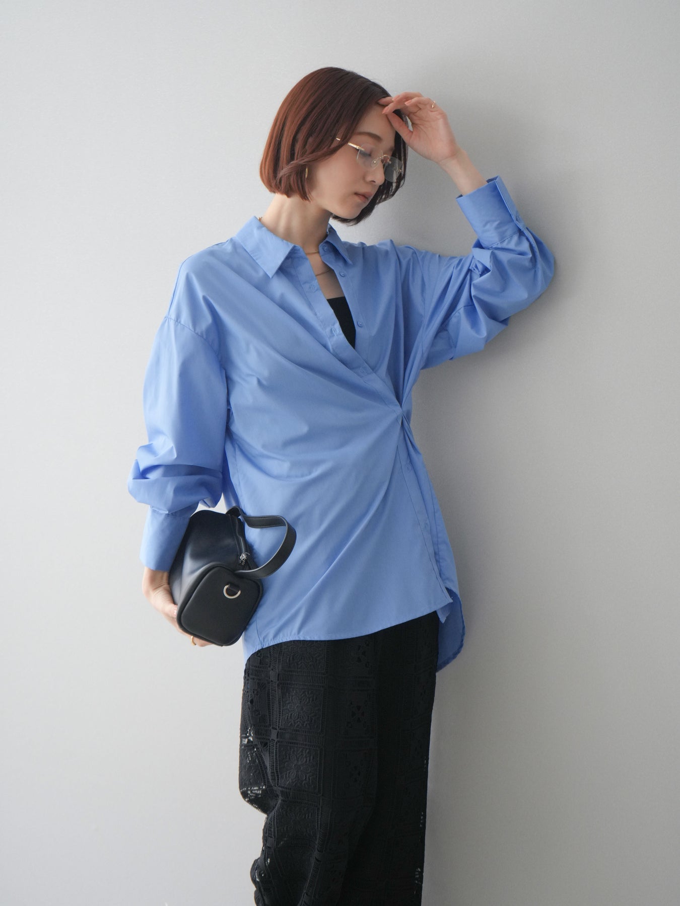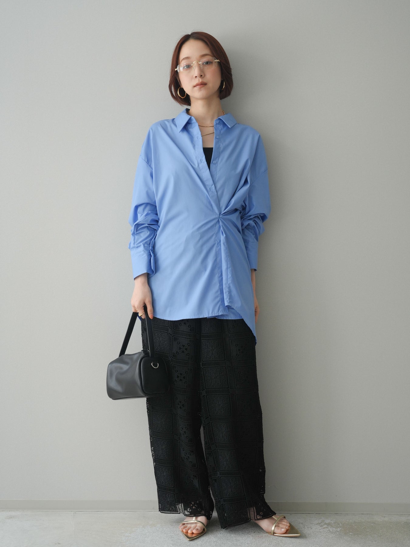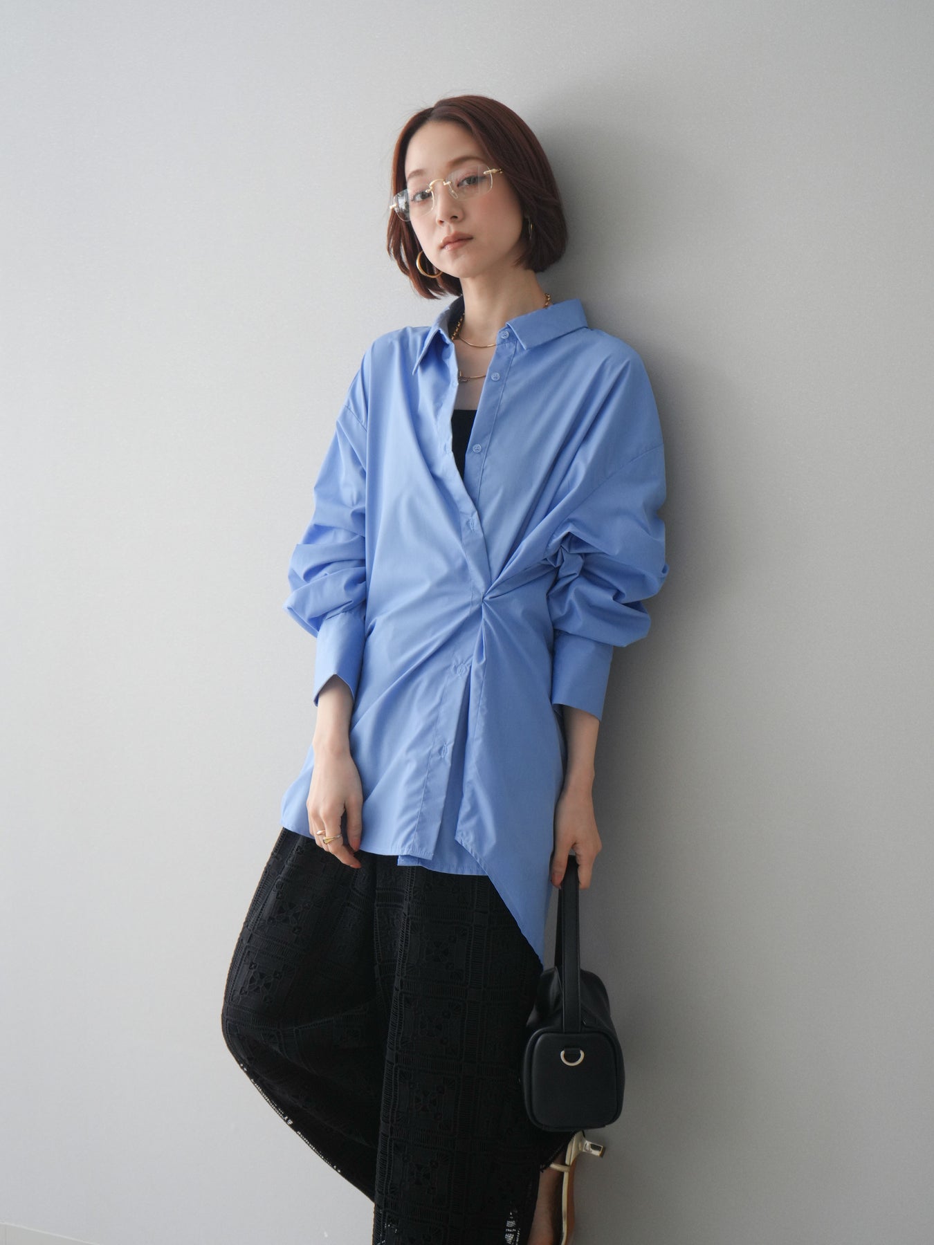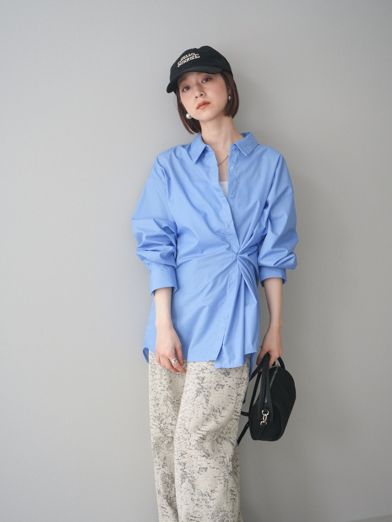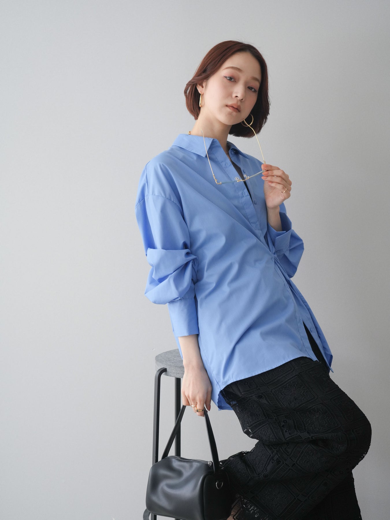 程よいハリと落ち感のある素材で仕立てた、着回し力の高いルーズシャツ。ゆとりのあるシルエットが抜け感を演出し、ヒップにかかる長めの着丈でバランスよく着こなせます。前後2way仕様で、ベーシックなシャツとしてはもちろん、フロントをアレンジしてねじりデザインのように着用することもでき、スタイリングの幅が広がる一枚。デイリーからきれいめコーデまで幅広く活躍します。 ※ボトムス、キャミソール(インナー)以外の商品は一律でインナーは付属していません