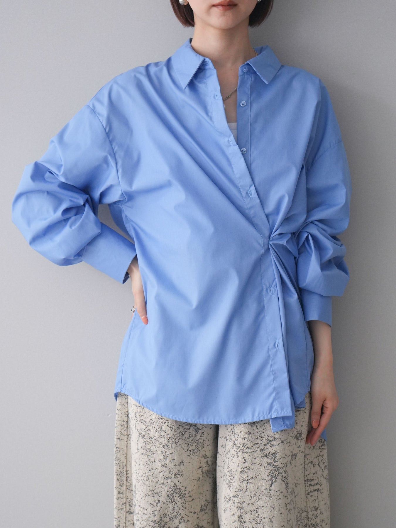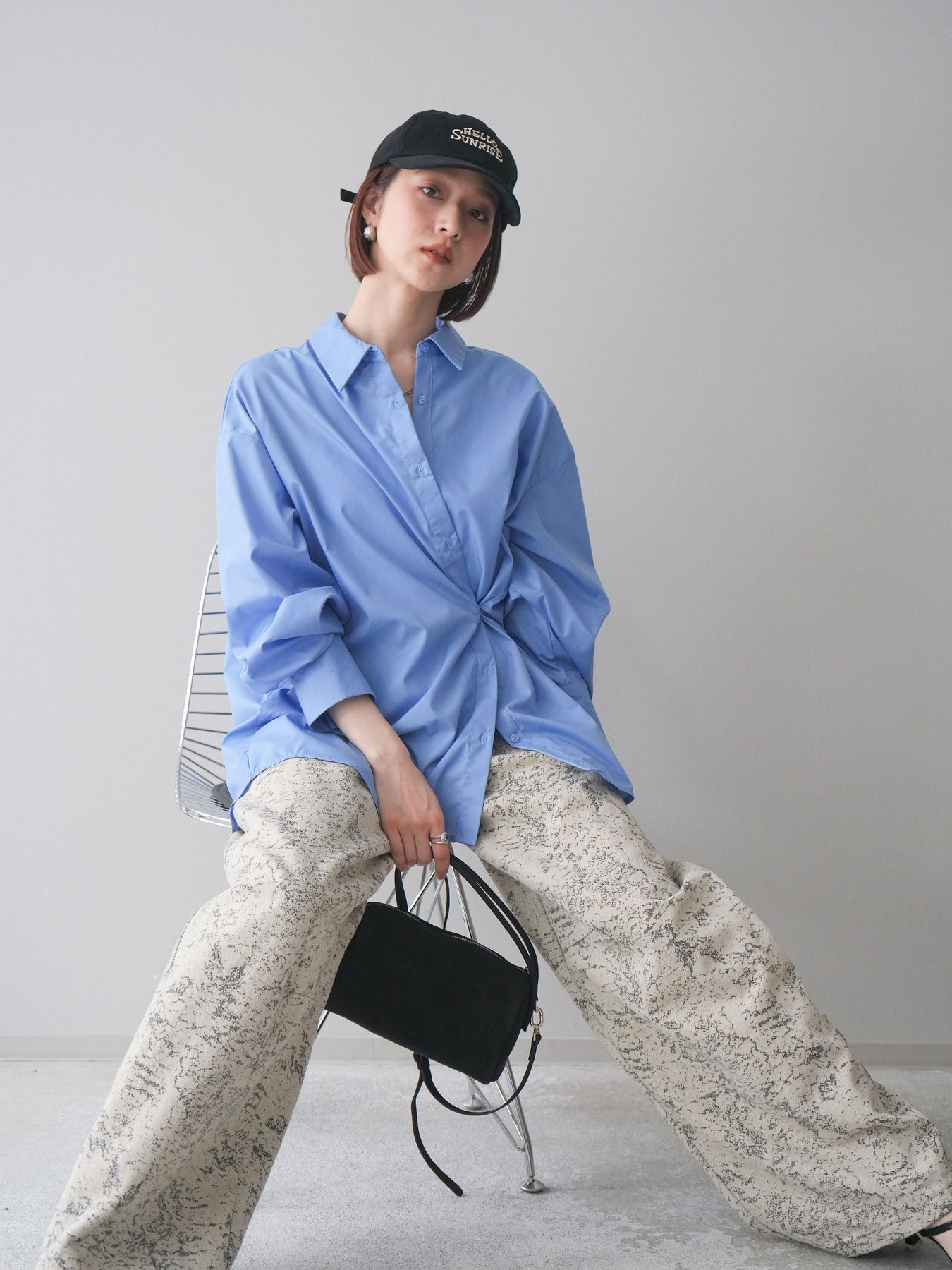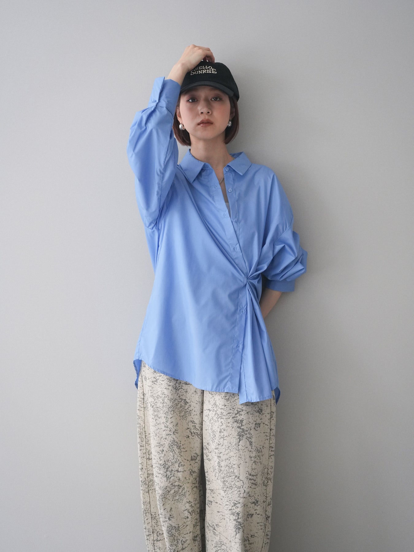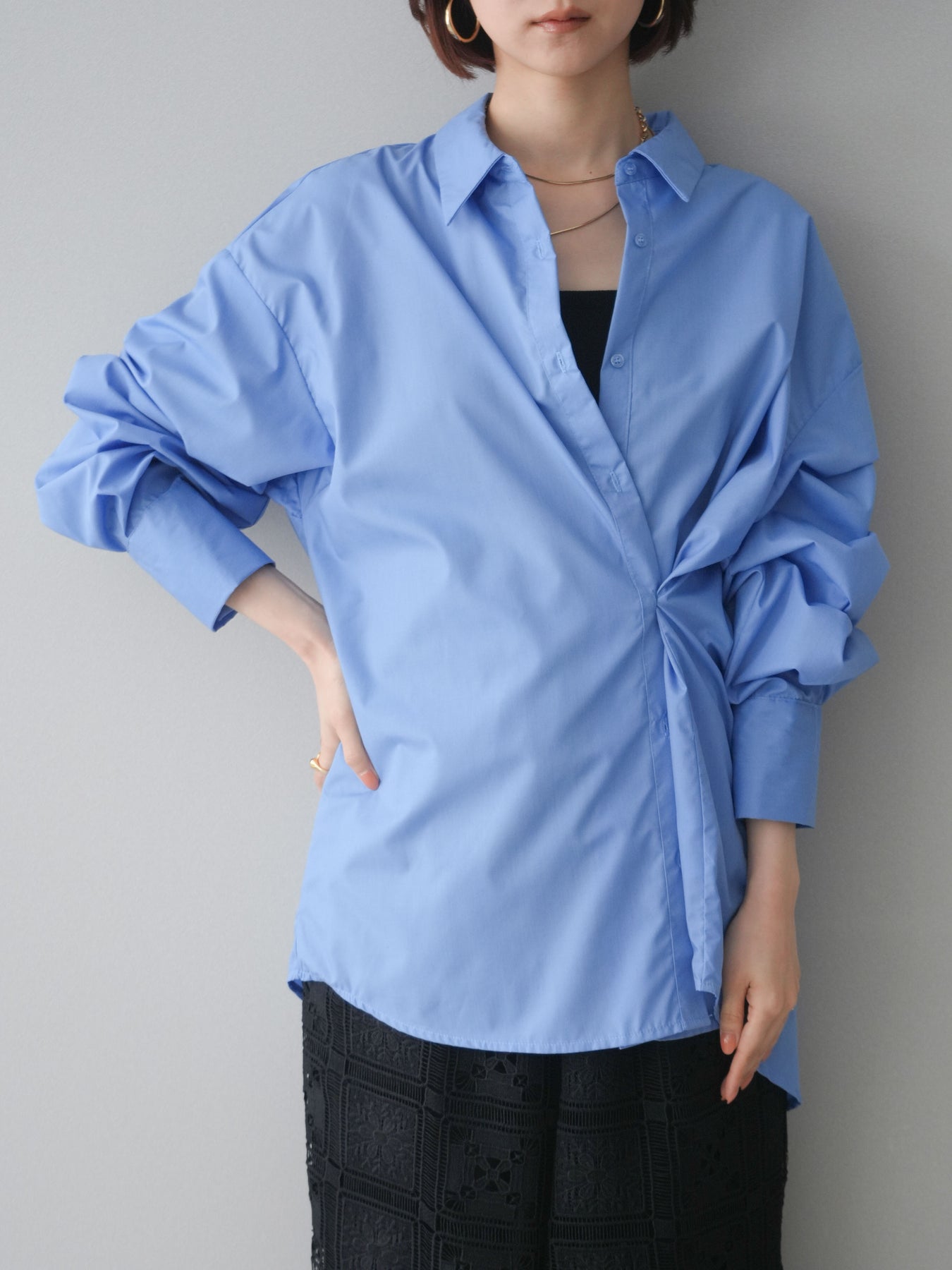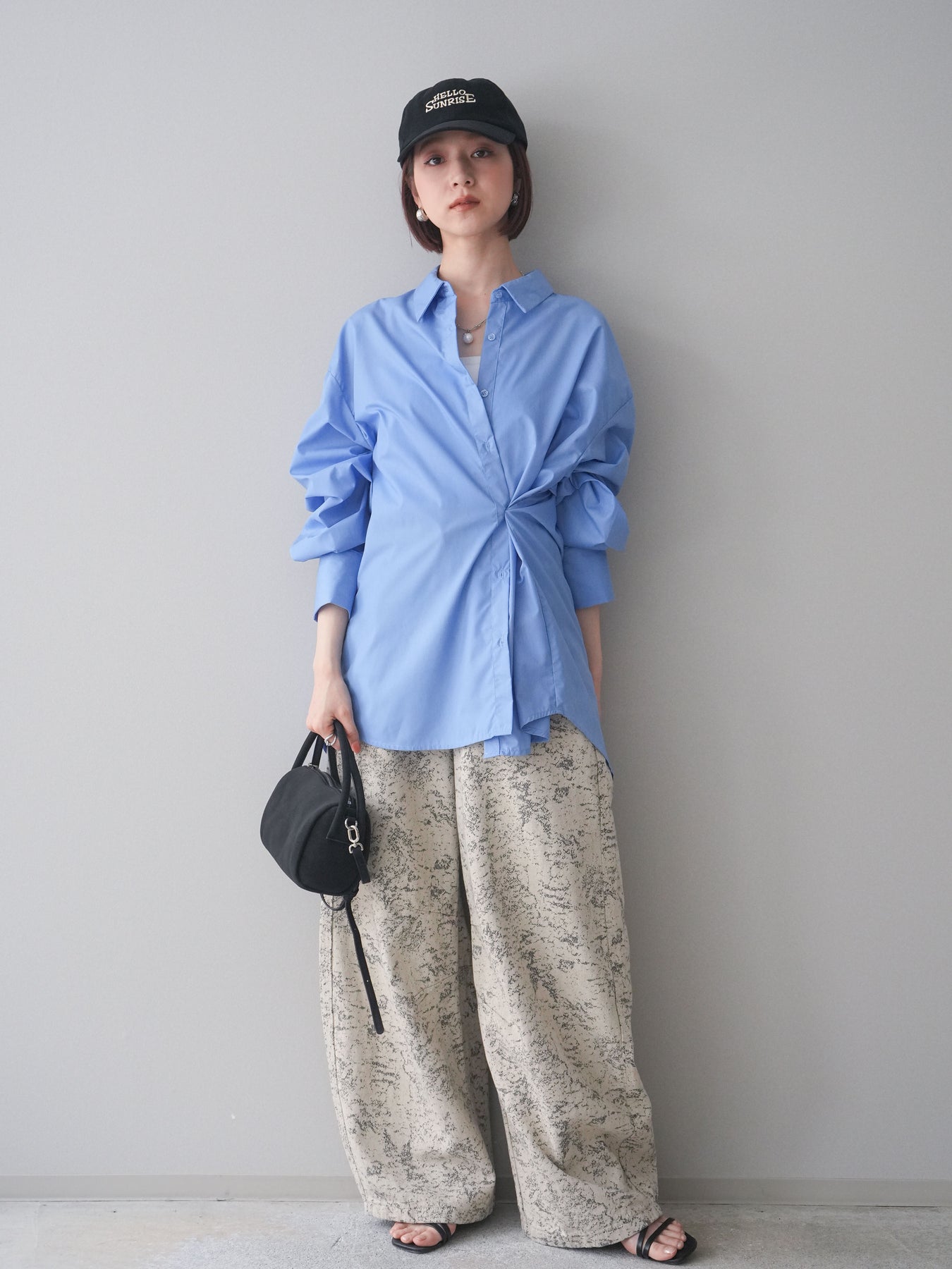 程よいハリと落ち感のある素材で仕立てた、着回し力の高いルーズシャツ。ゆとりのあるシルエットが抜け感を演出し、ヒップにかかる長めの着丈でバランスよく着こなせます。前後2way仕様で、ベーシックなシャツとしてはもちろん、フロントをアレンジしてねじりデザインのように着用することもでき、スタイリングの幅が広がる一枚。デイリーからきれいめコーデまで幅広く活躍します。 ※ボトムス、キャミソール(インナー)以外の商品は一律でインナーは付属していません