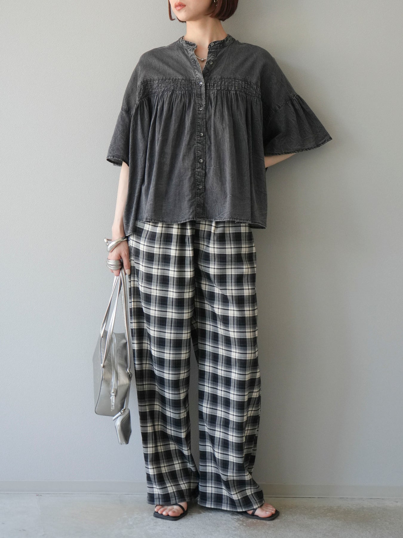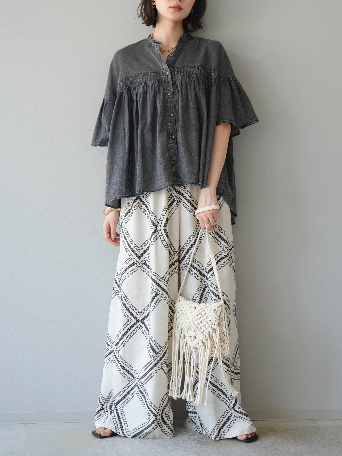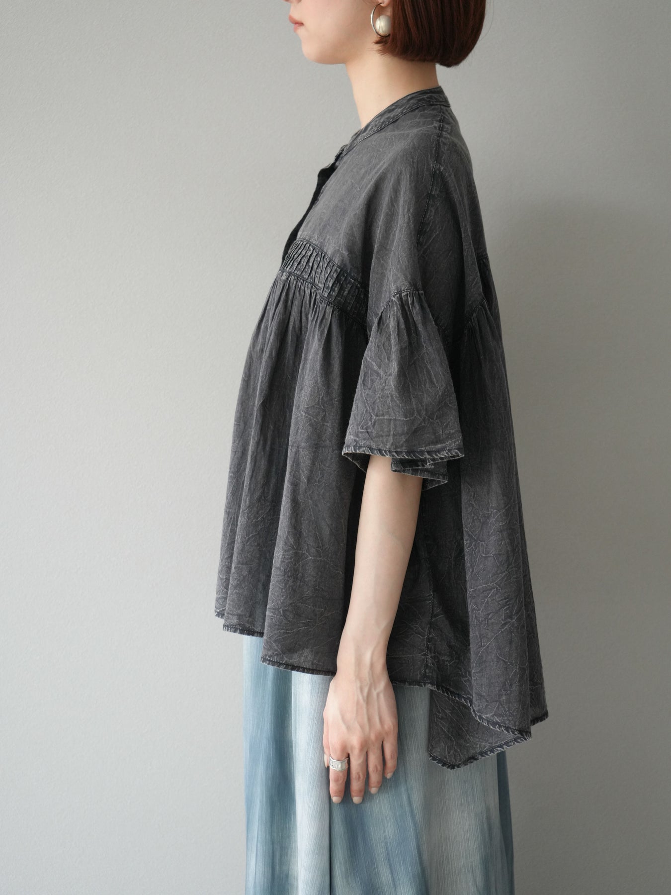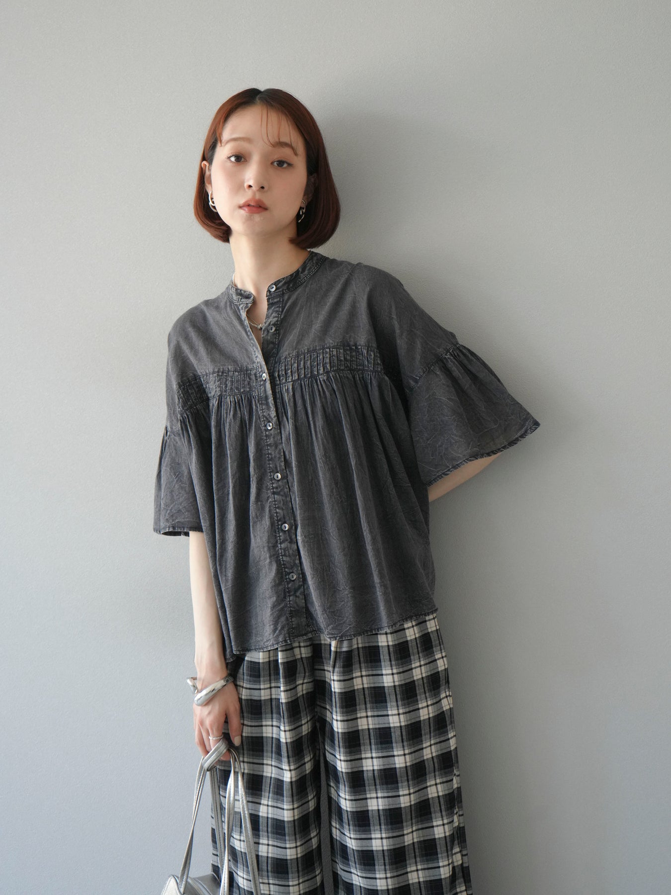 軽やかなインド製コットンボイル素材を使用した、シアー感とヴィンテージ加工が魅力のデニムシャツ。たっぷりとギャザーを施したフレアシルエットが女性らしい抜け感を演出し、動きのある着こなしに。ワッシャー加工による表情のある風合いがこなれ感をプラスし、さらりと羽織るだけで主役級の存在感を放ちます。ヒップが隠れる長め丈で体型カバー効果も◎。ボトムを選ばず、カジュアルにもフェミニンにも着回せる万能アイテムです。 ※ボトムス、キャミソール(インナー)以外の商品は一律でインナーは付属していません。