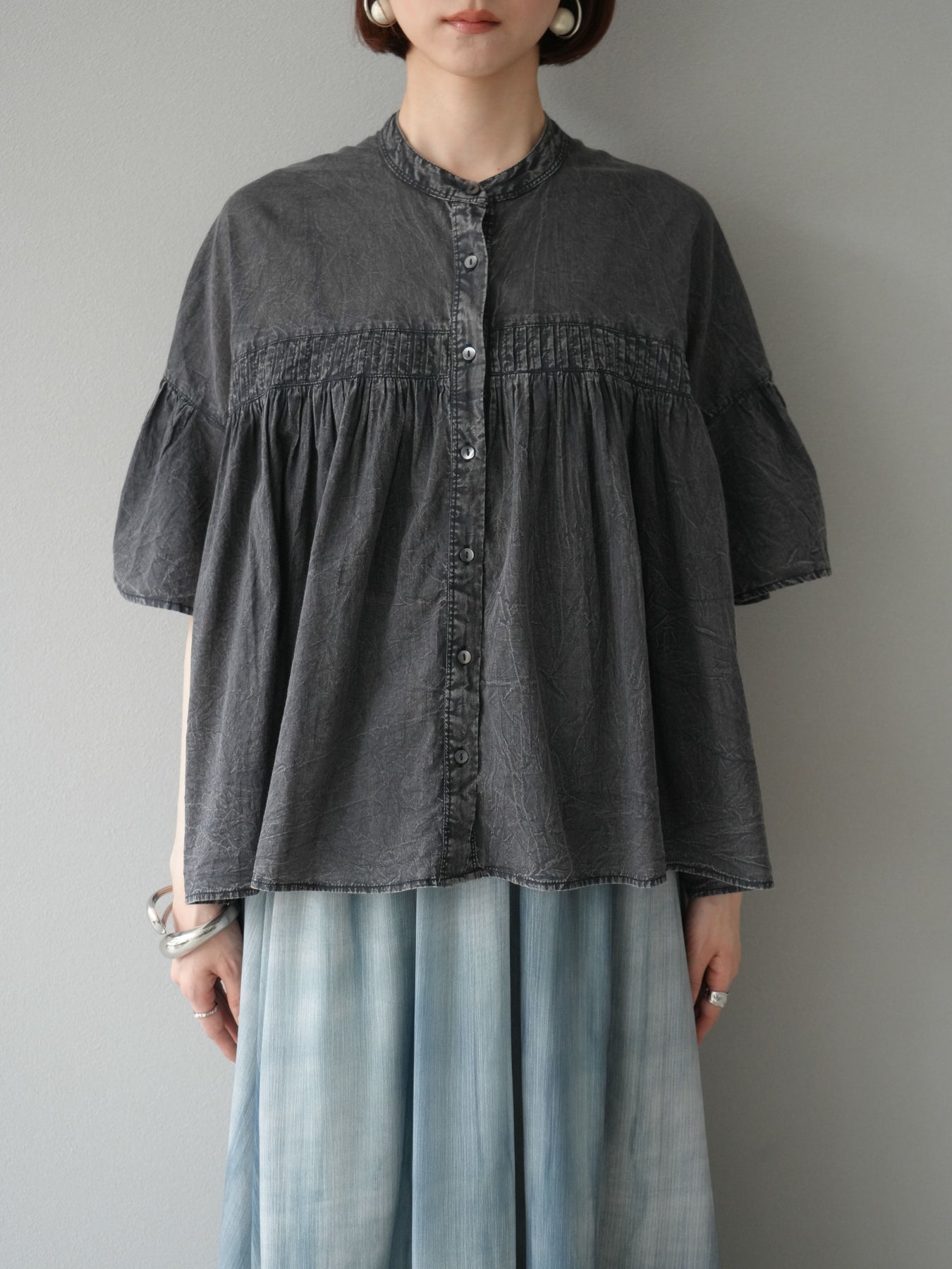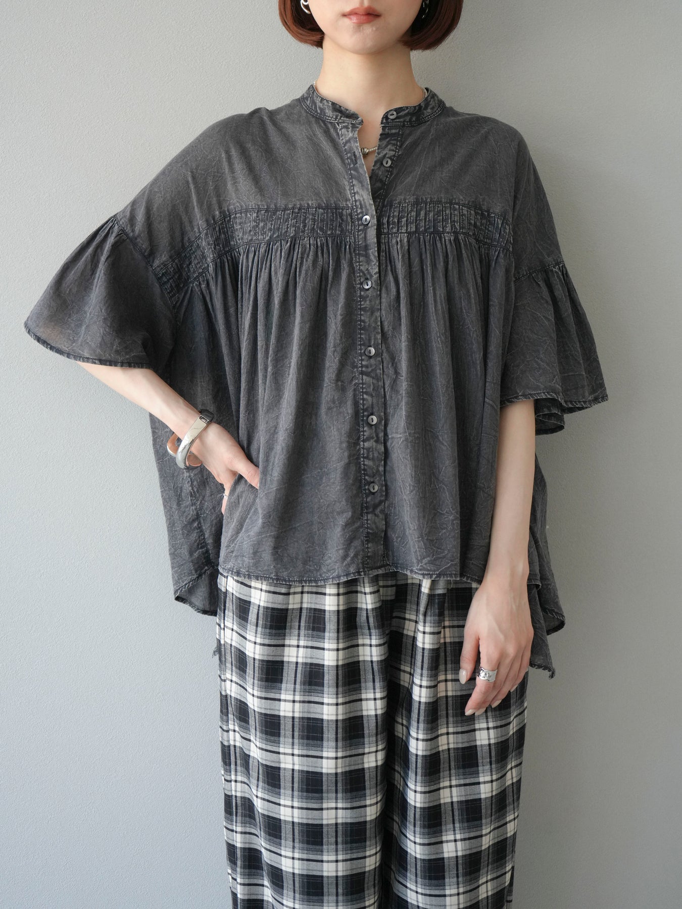 [予約]インド製コットンボイルシアービンテージデニムシャツ/ブラック