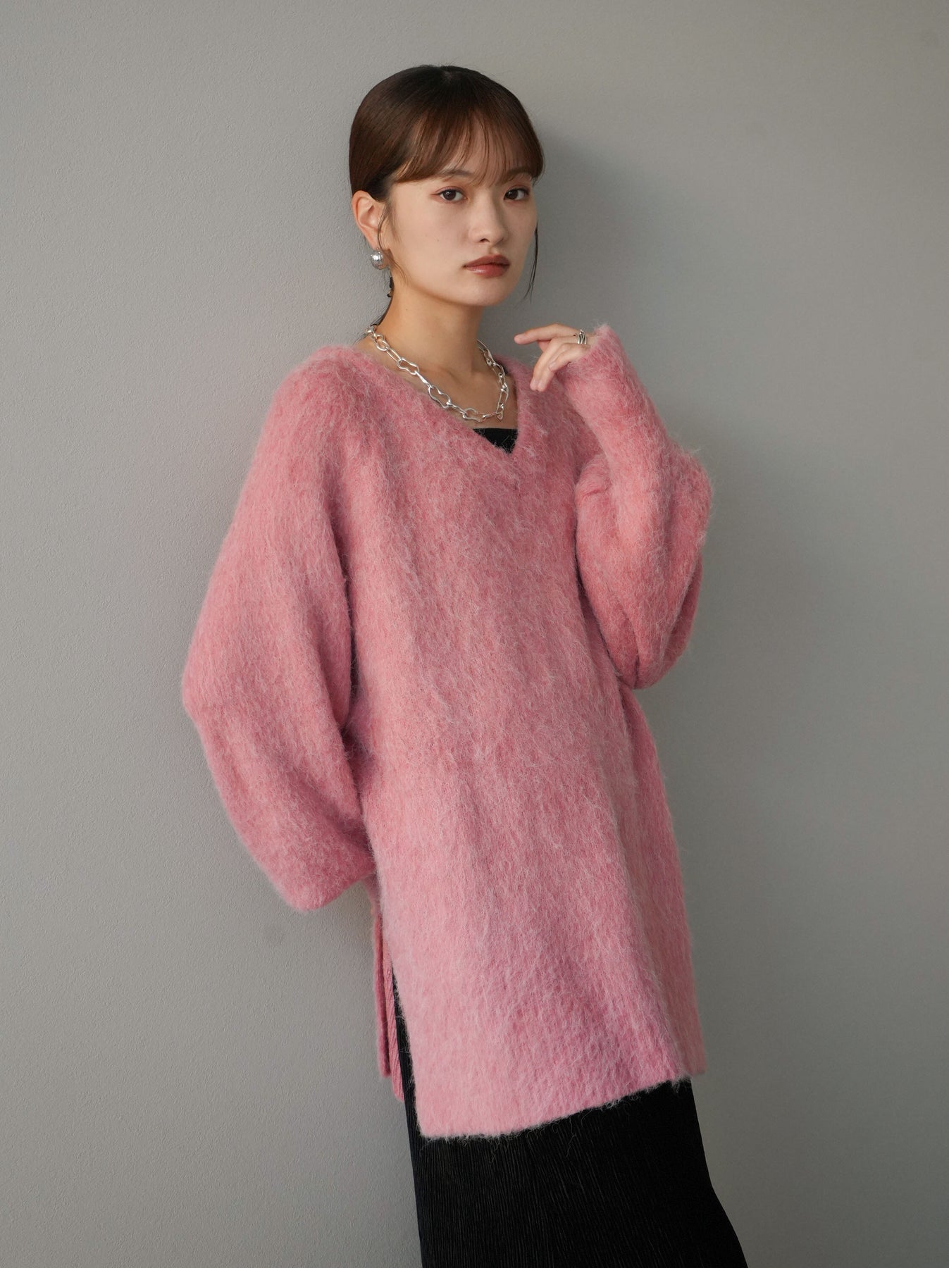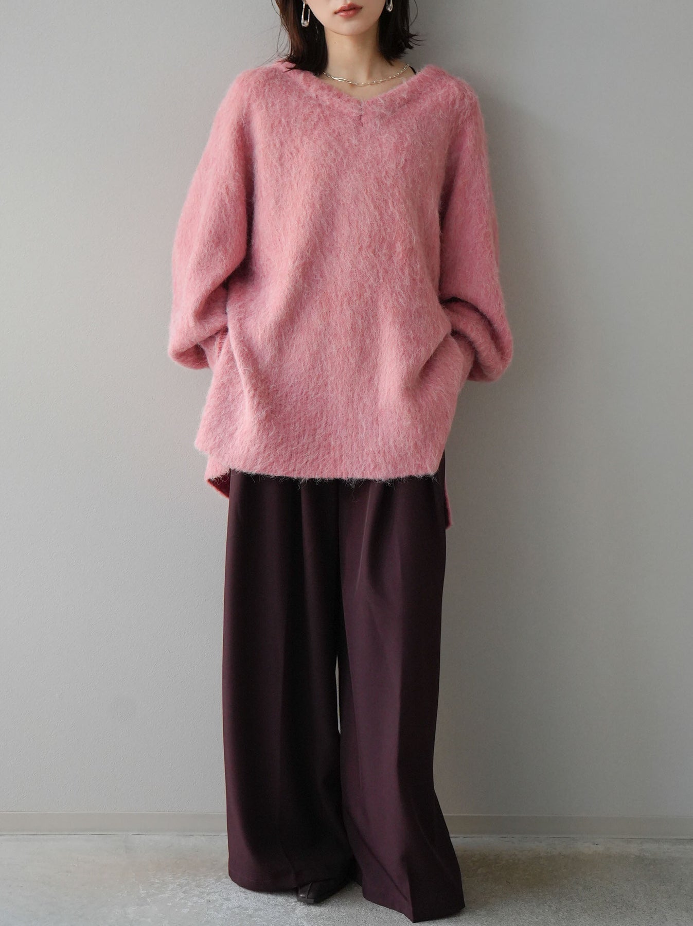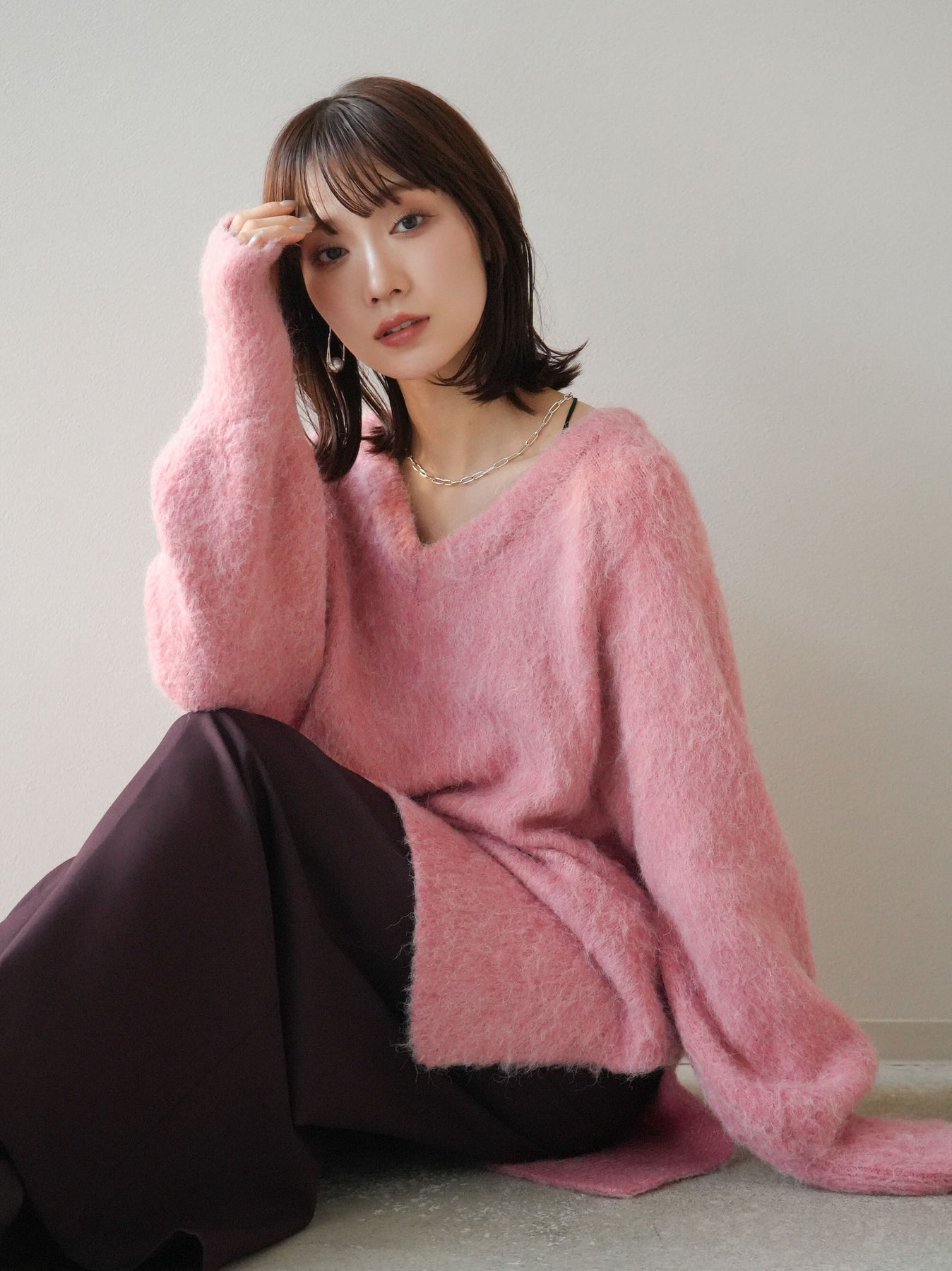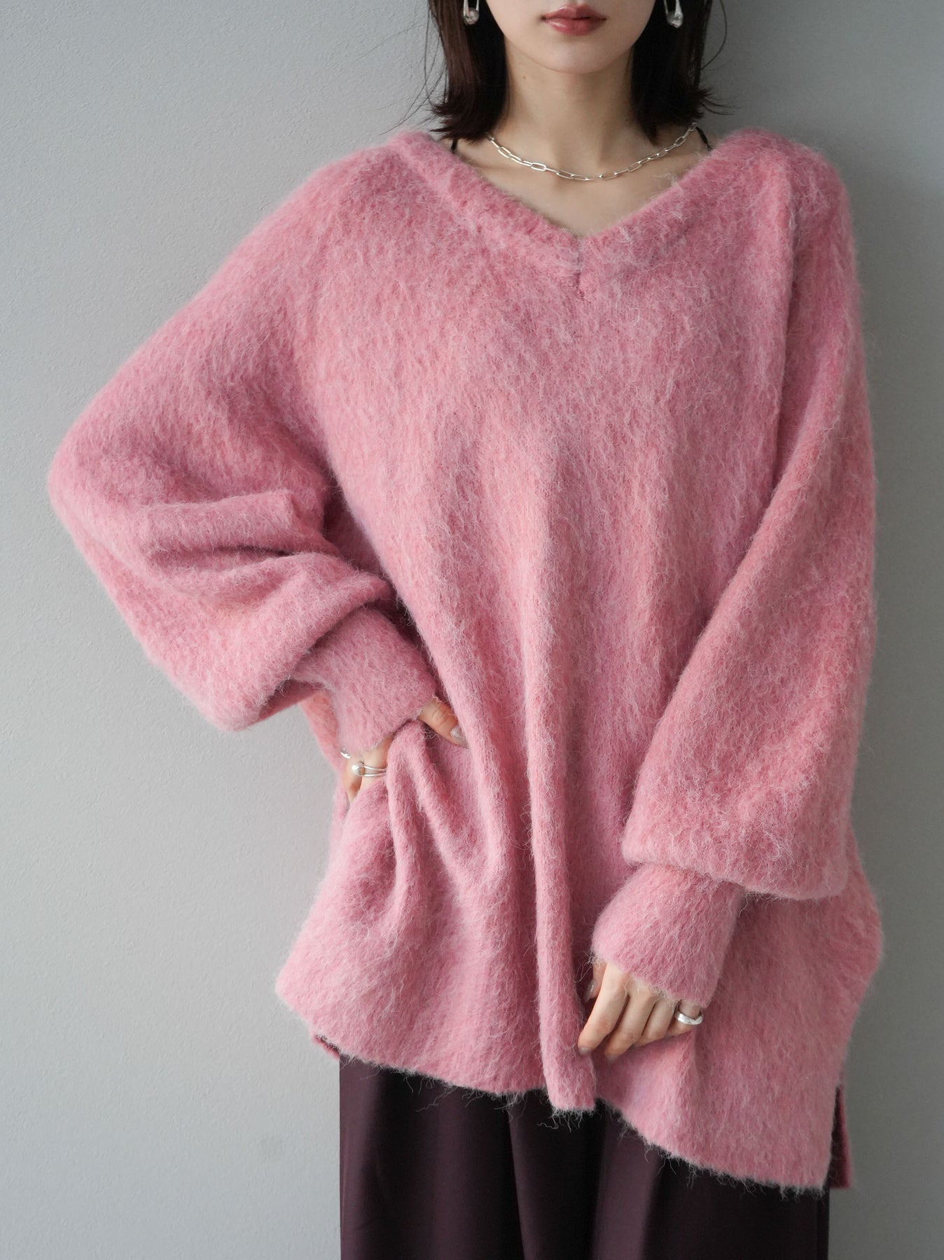 [予約]Vネックオーバーモヘアニットプルオーバー/ピンク