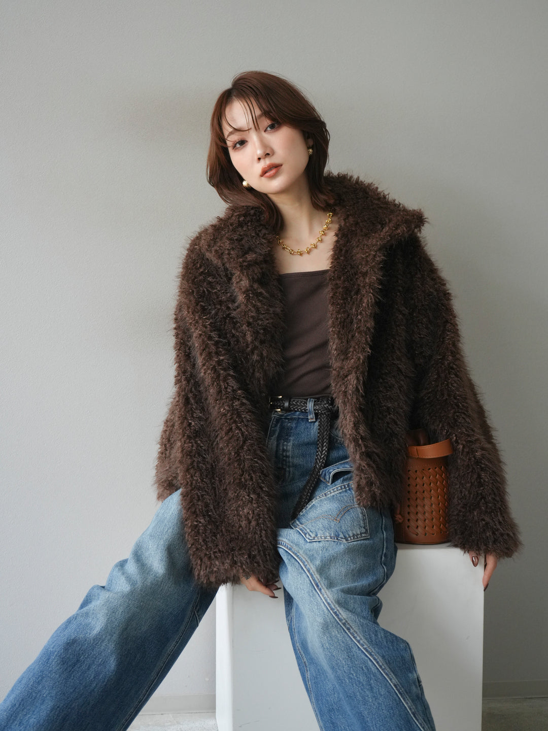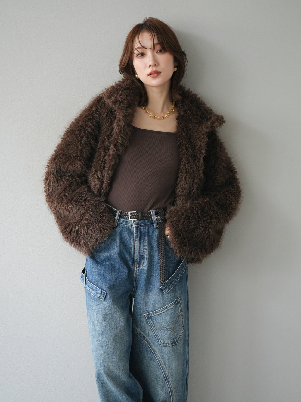 [予約]シャギーファースタンド2WAYジャケット/brown
