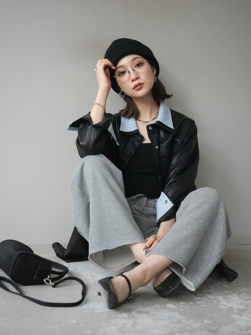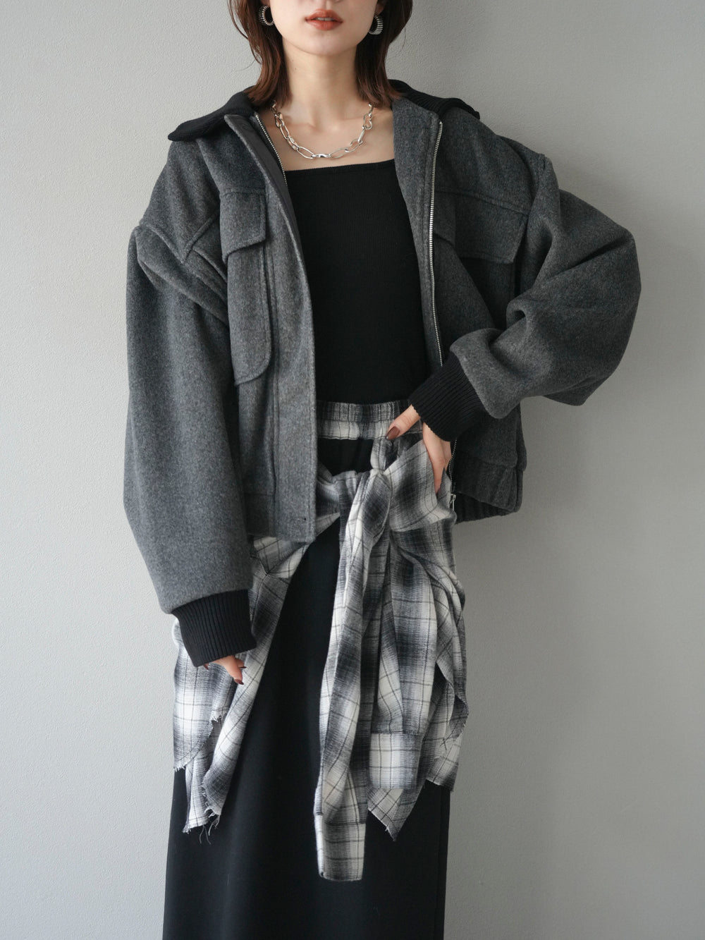 [予約]ウールタッチ襟リブステンカラーショートコート/charcoal