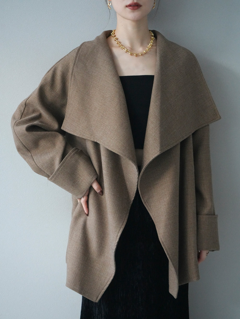 [予約]ウールタッチ襟リブステンカラーショートコート/oatmeal