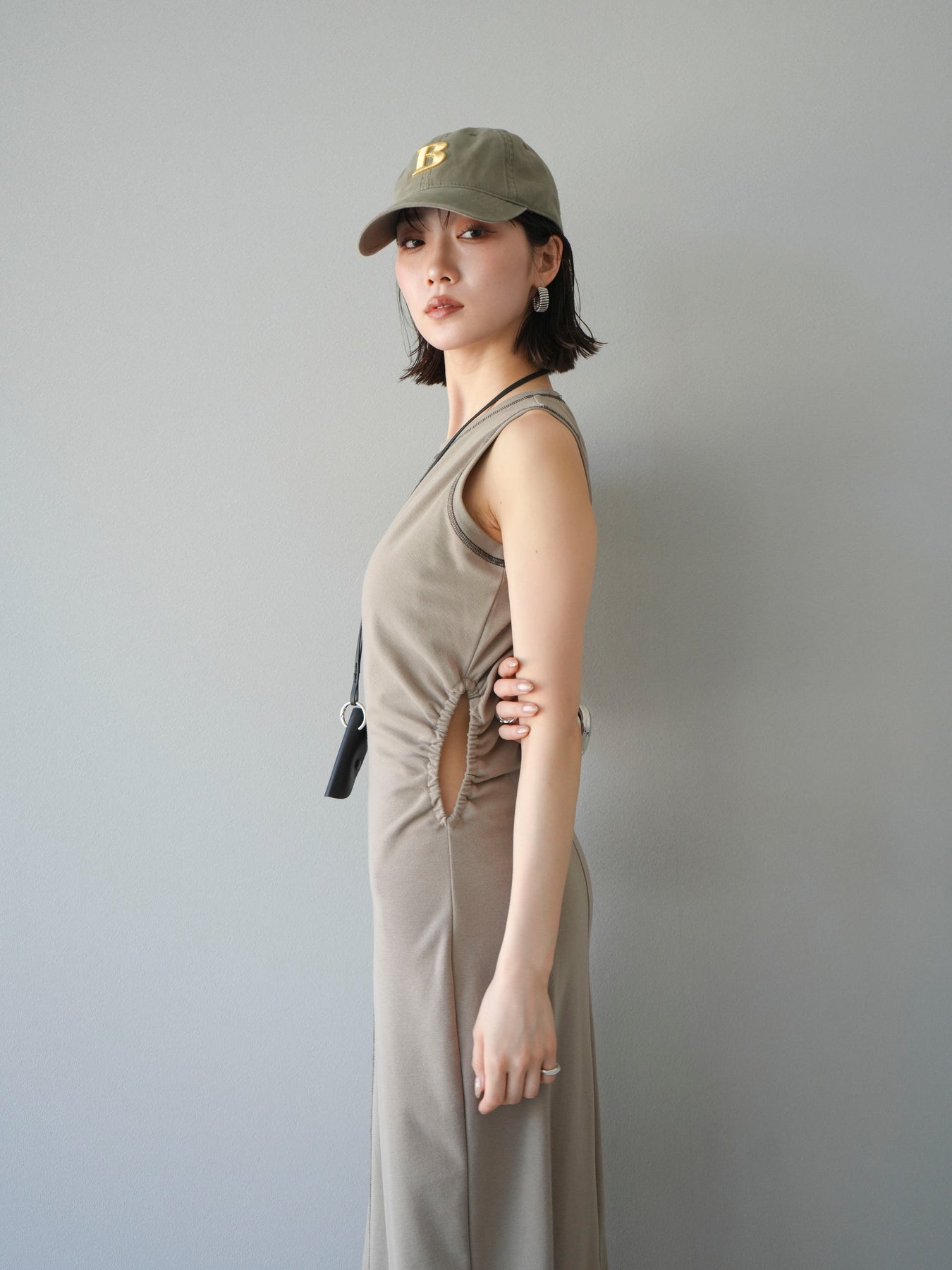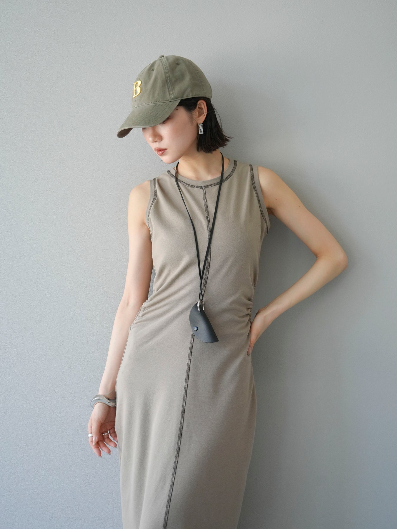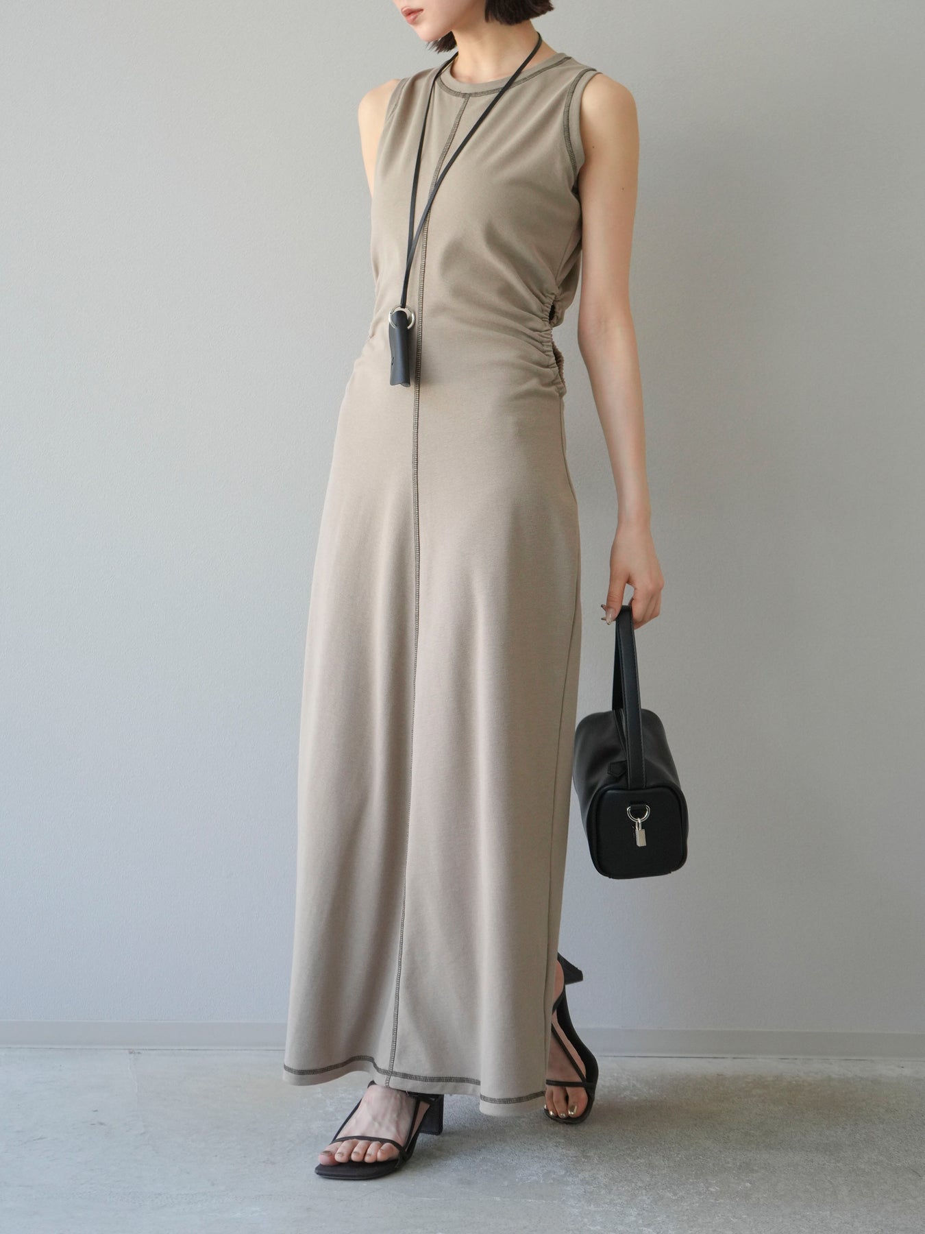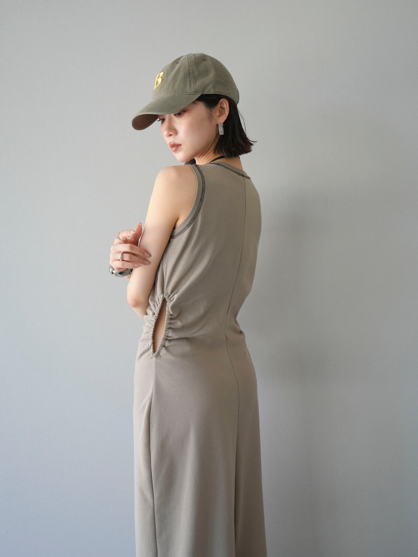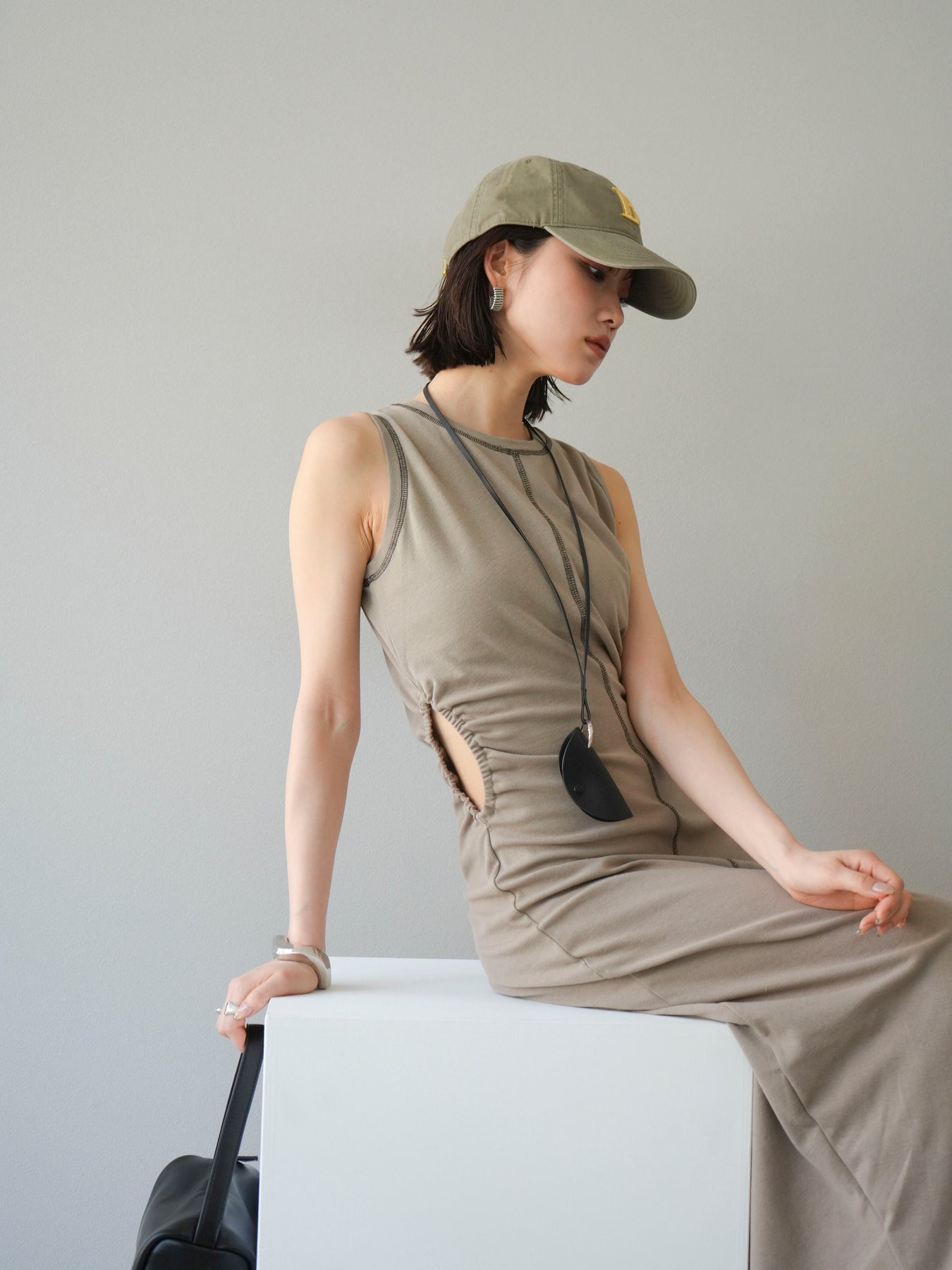 [予約]ウエストオープンステッチカットワンピース/ベージュ