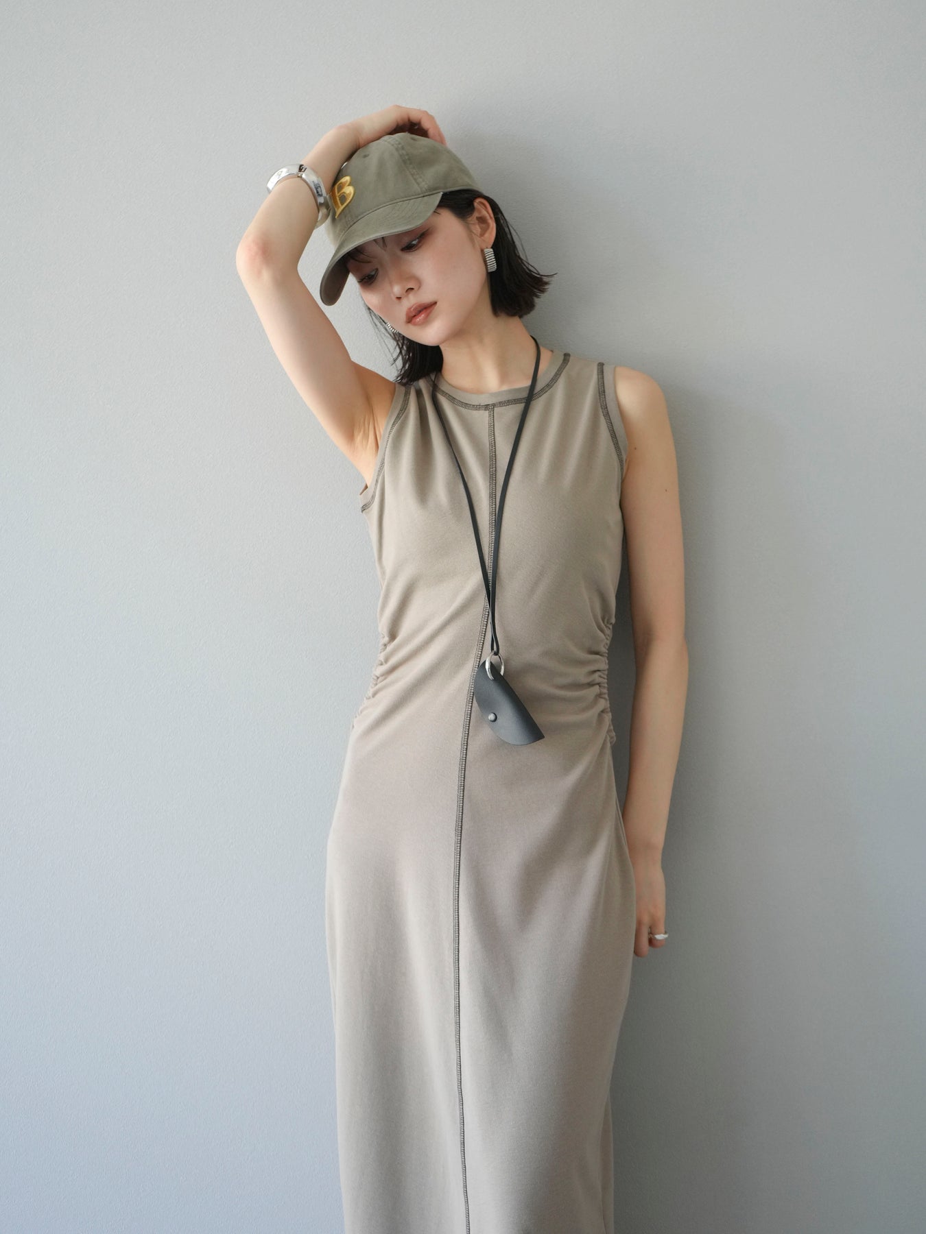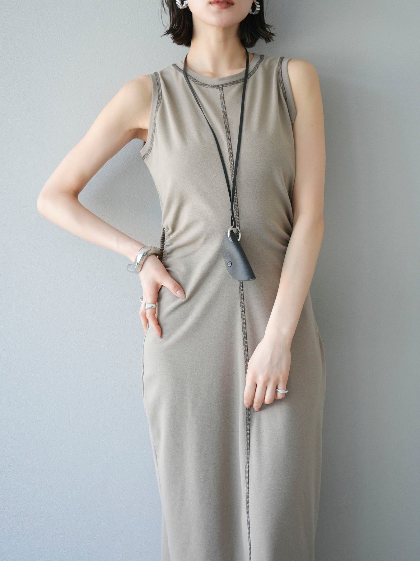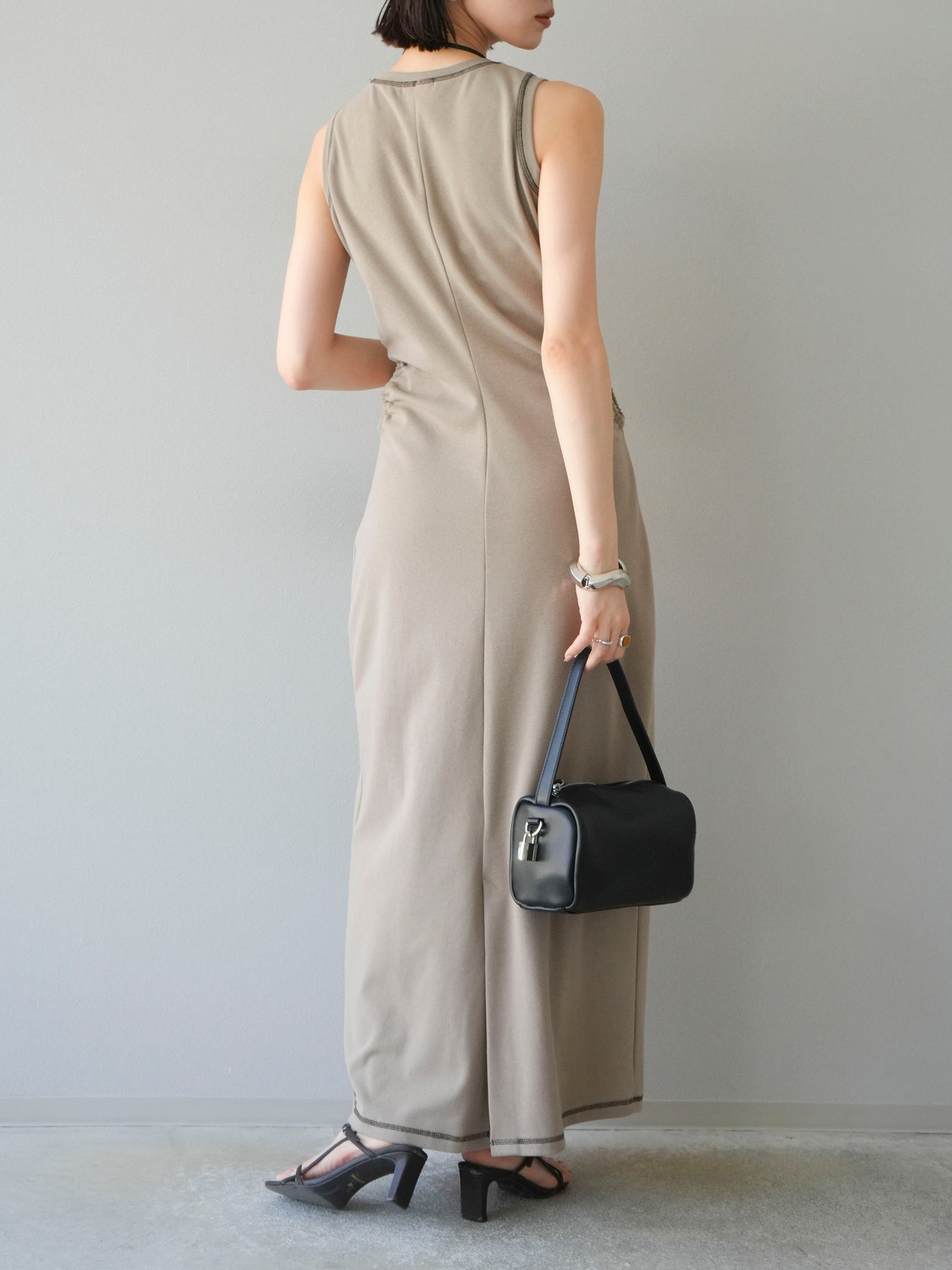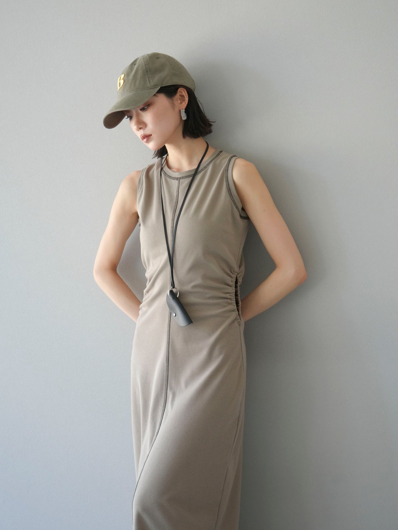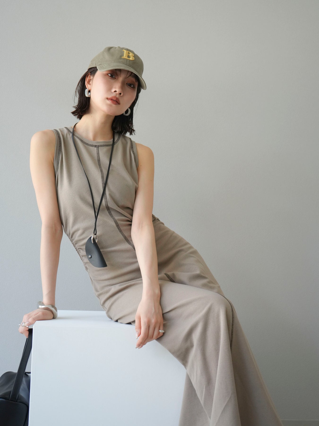 [予約]ウエストオープンステッチカットワンピース/ベージュ