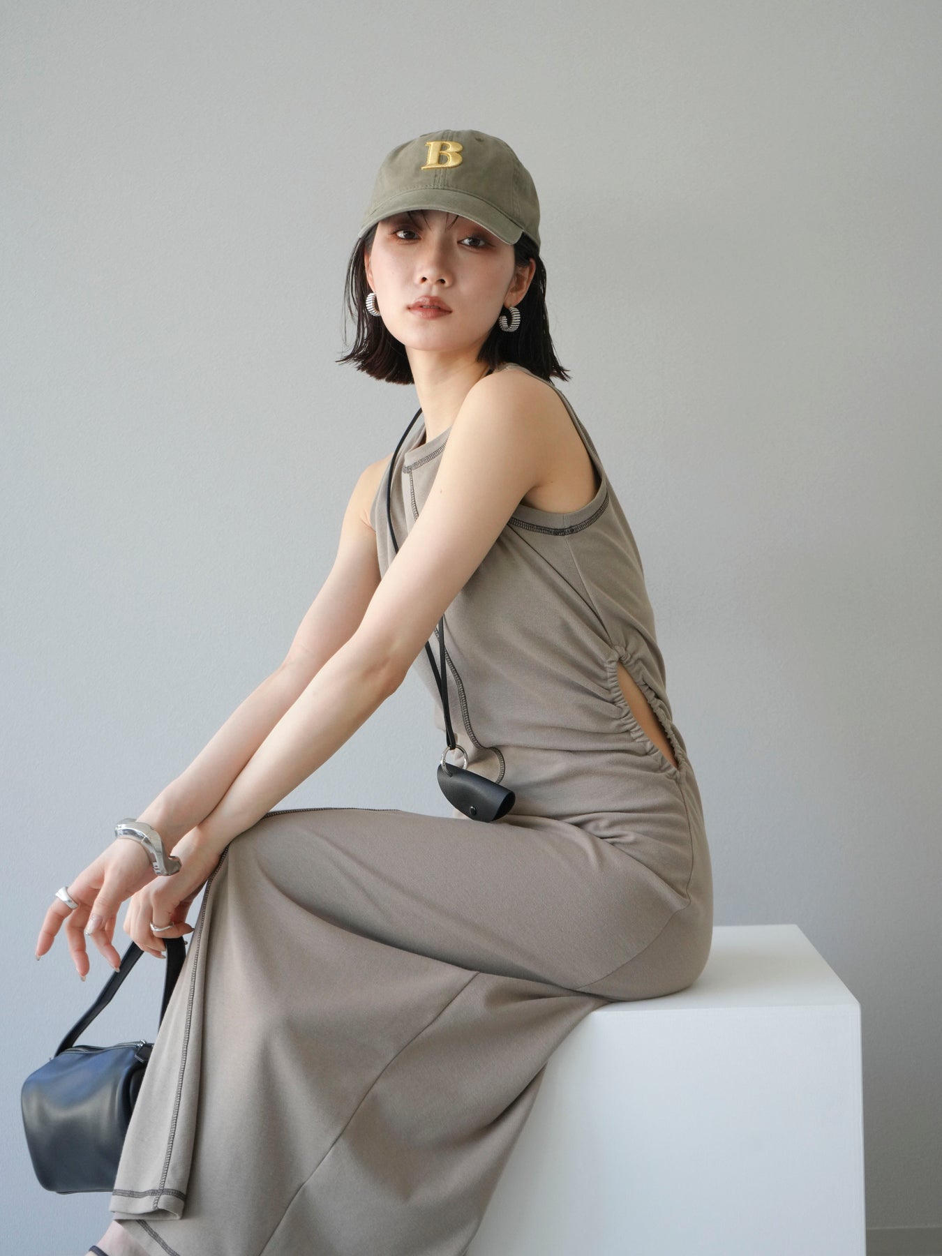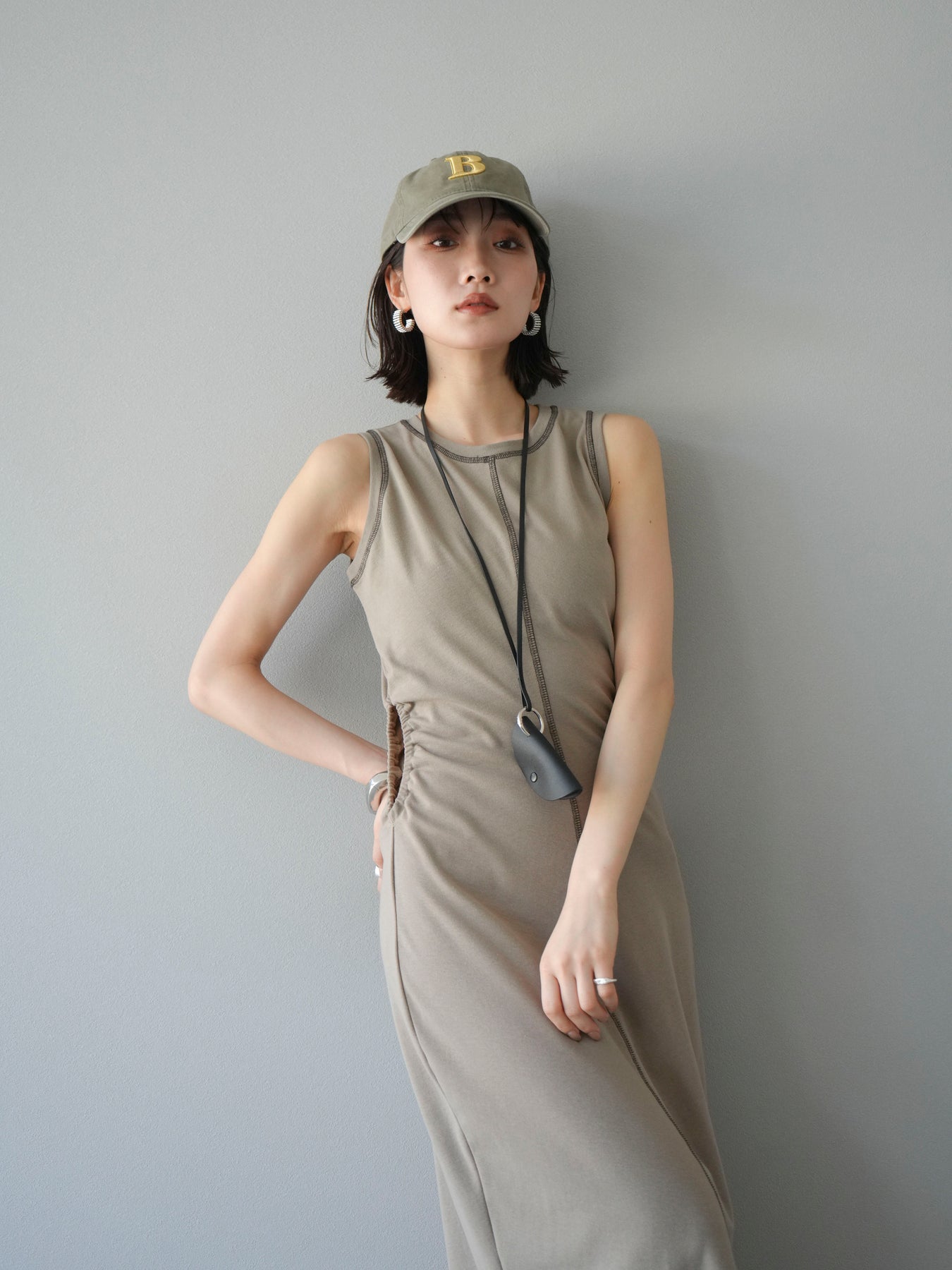 配色ステッチがアクセントになったカットソー素材のワンピース。ウエストサイドに施されたオープンデザインが、程よい肌見せで抜け感を演出し、トレンド感のある仕上がりに。ストレッチ性のある柔らかな素材で、リラックスした着心地も魅力です。シンプルながらもディテールで差がつく一着で、デニムジャケットやキャップを合わせたカジュアルミックスコーデもおすすめ。1枚で主役になる、春夏のスタイリングにぴったりなアイテムです。 ※ボトムス、キャミソール(インナー)以外の商品は一律でインナーは付属していません。