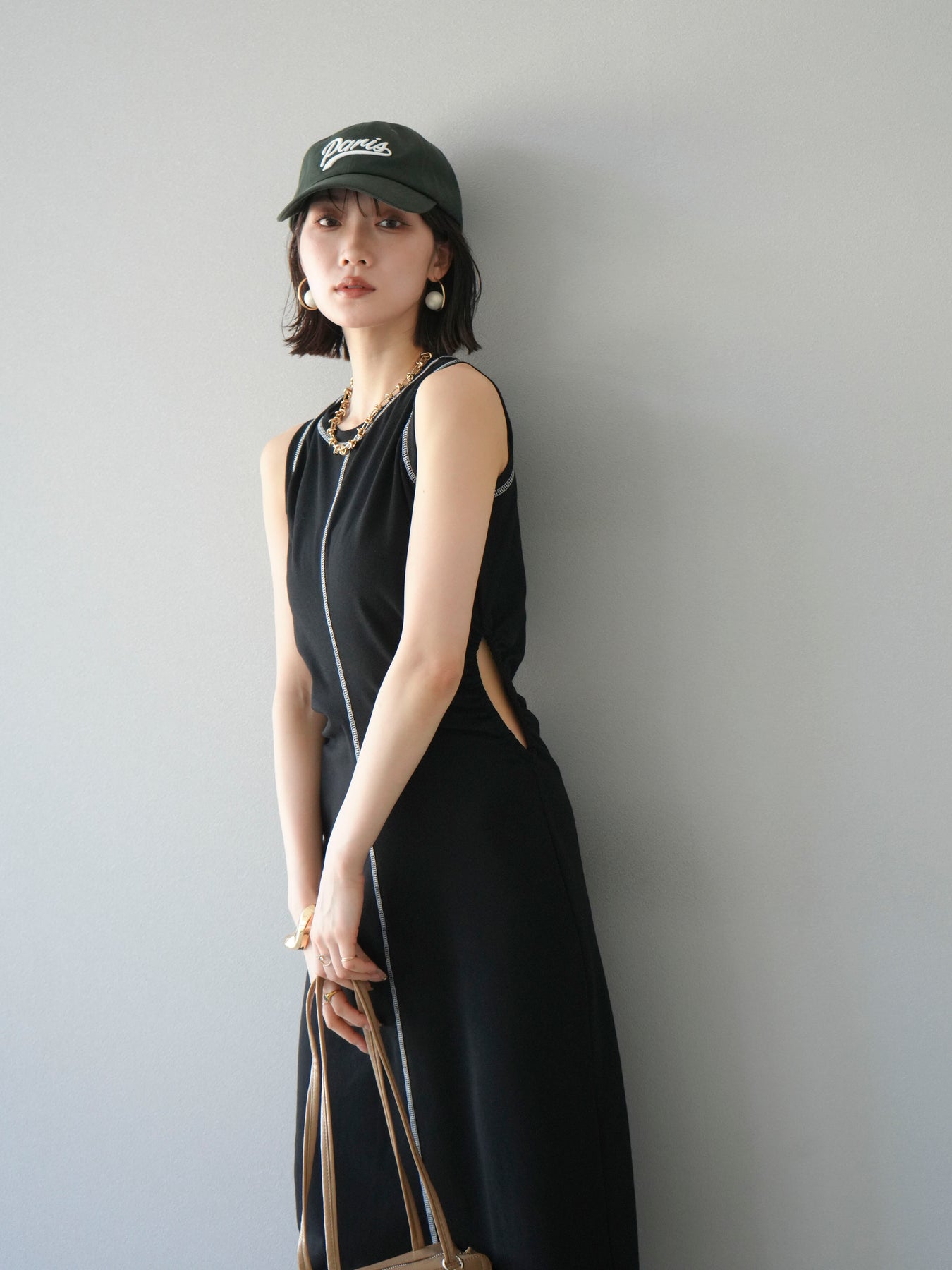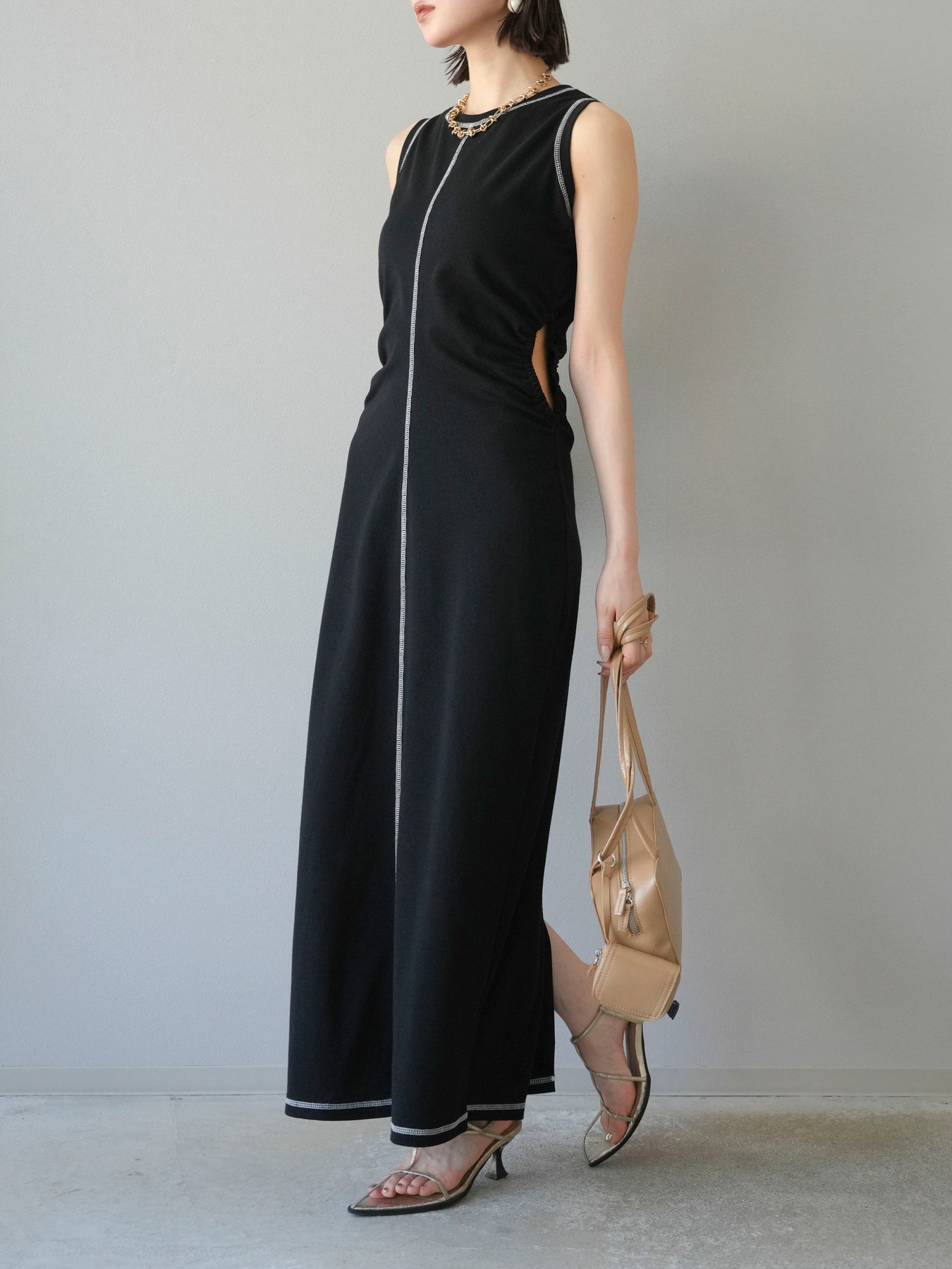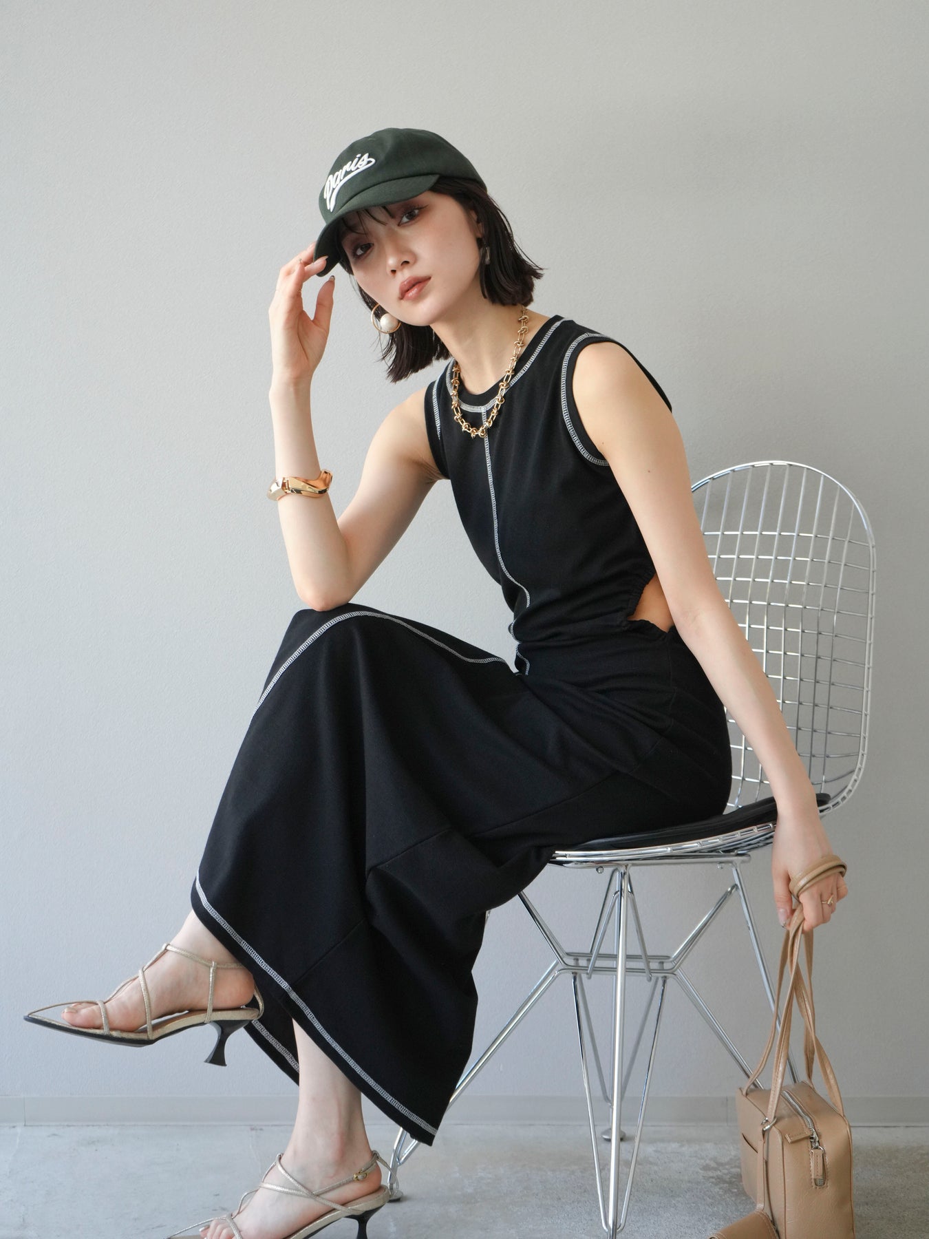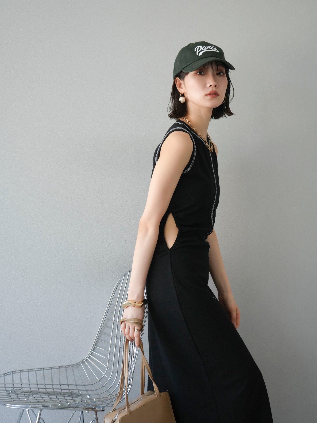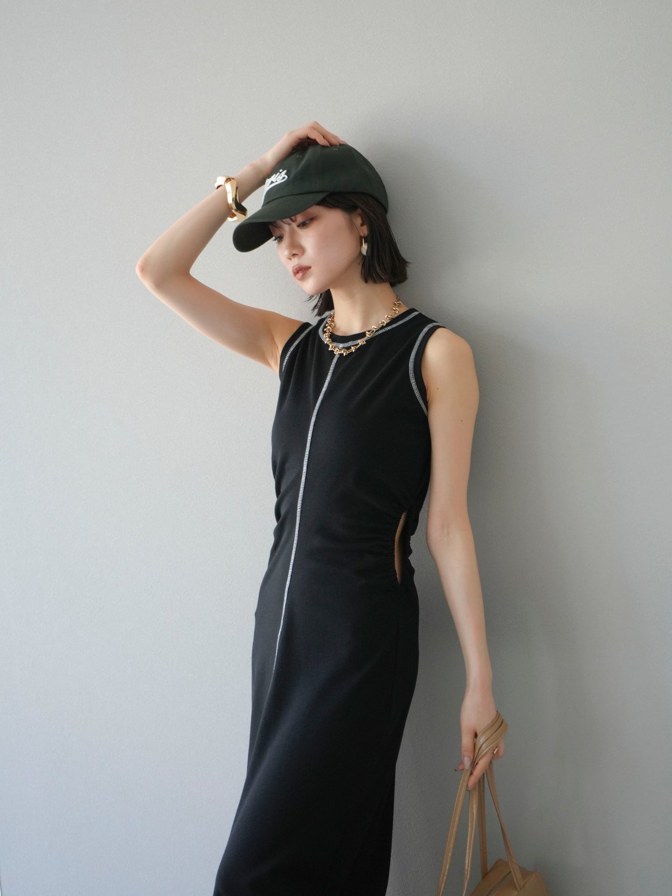 [予約]ウエストオープンステッチカットワンピース/ブラック
