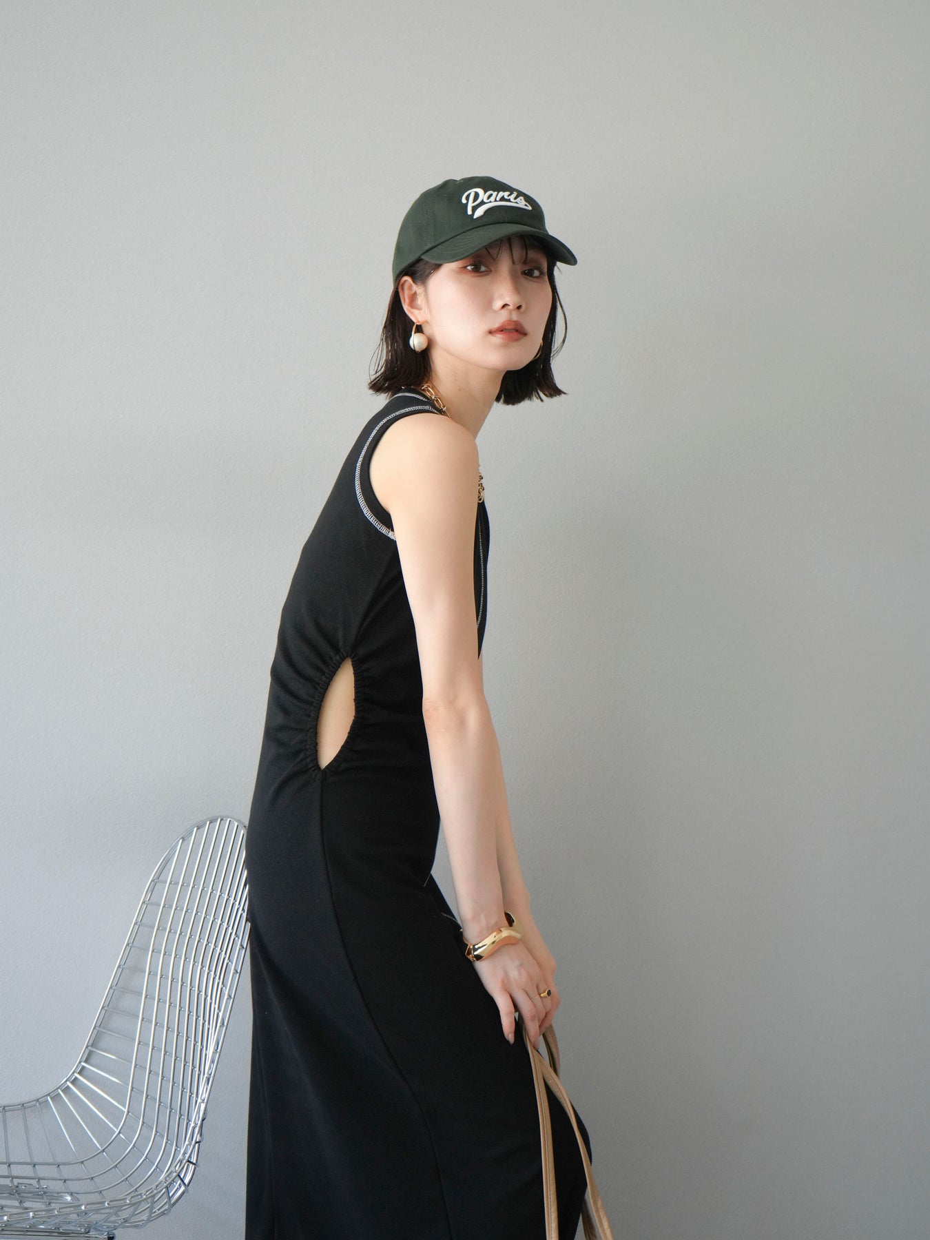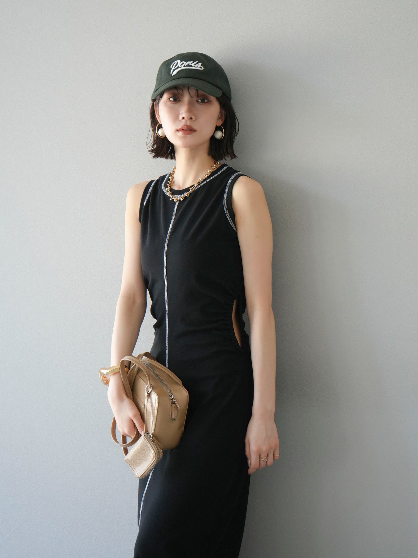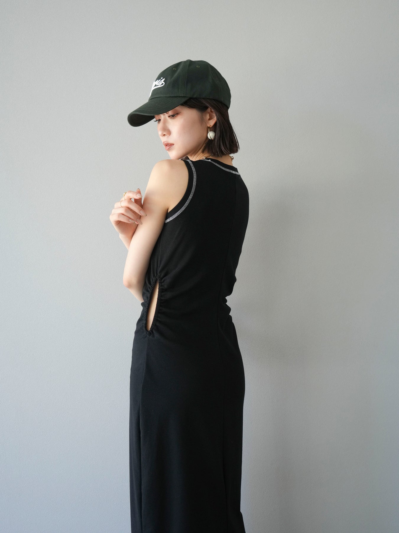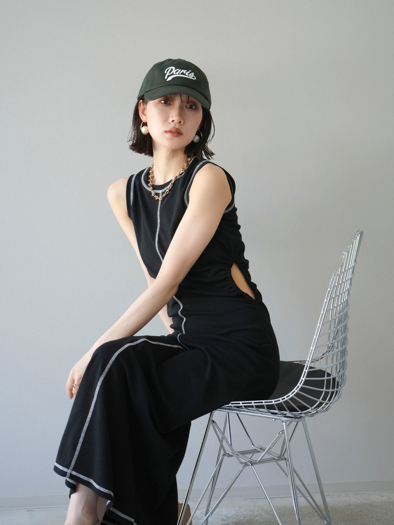 [予約]ウエストオープンステッチカットワンピース/ブラック