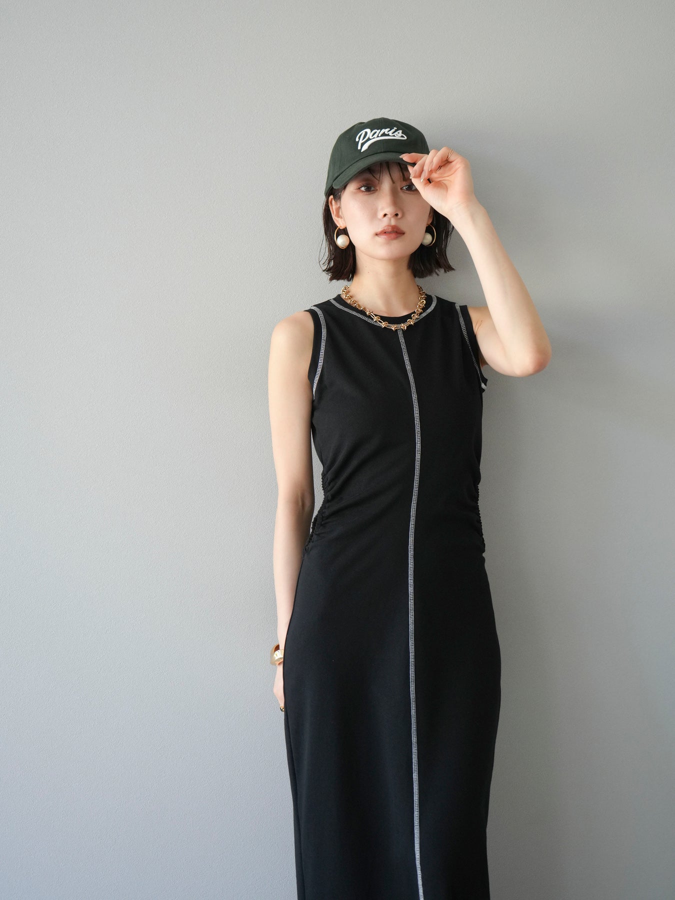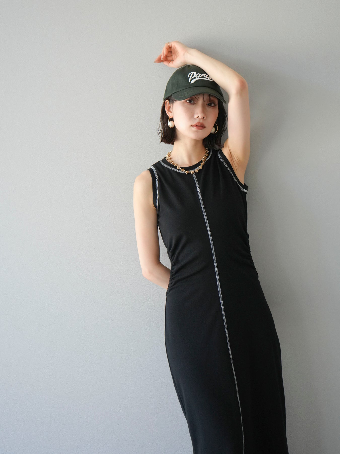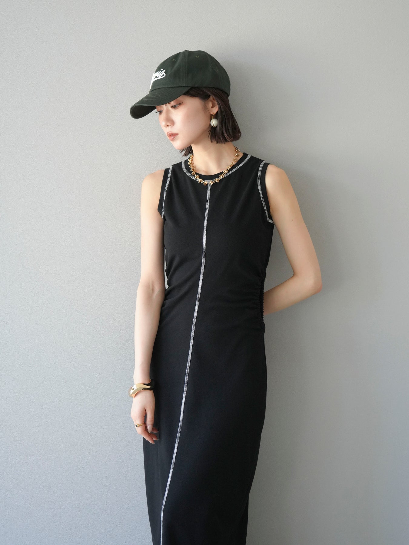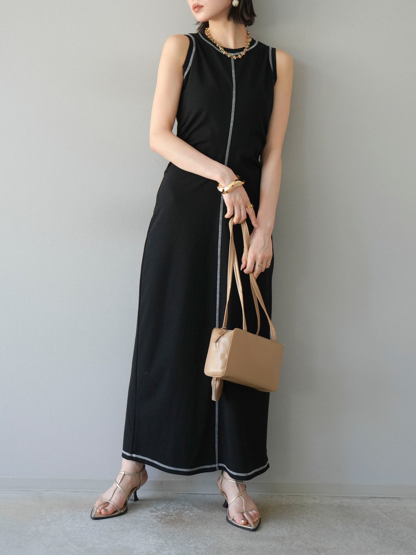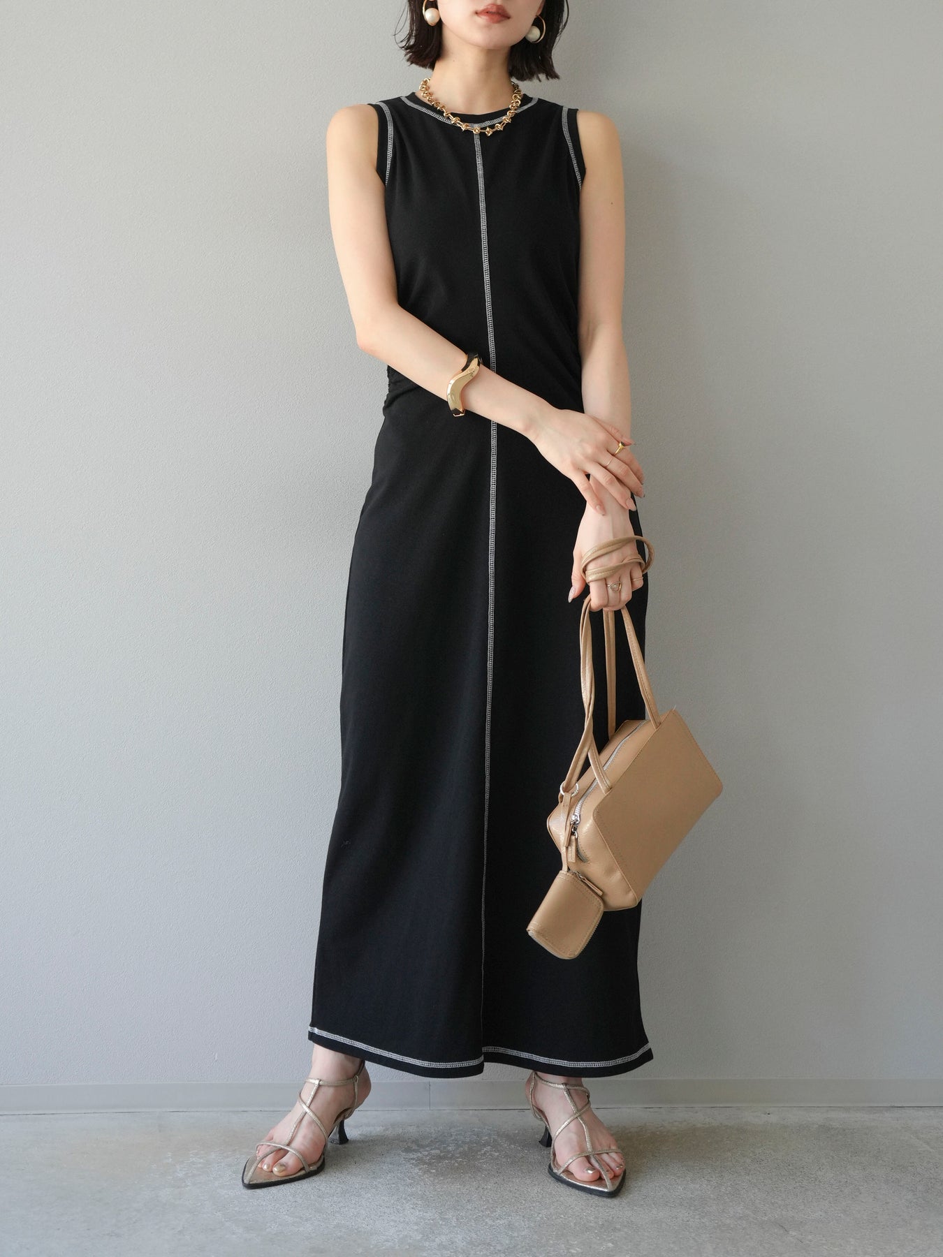 [予約]ウエストオープンステッチカットワンピース/ブラック
