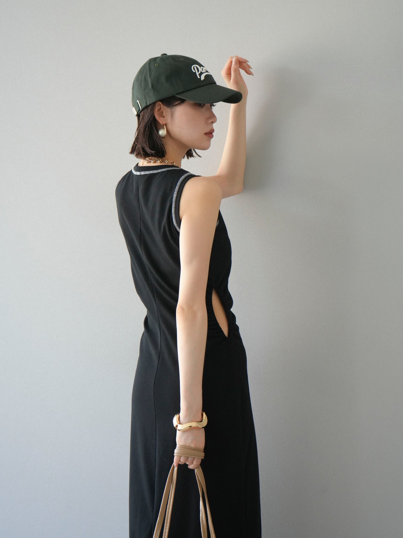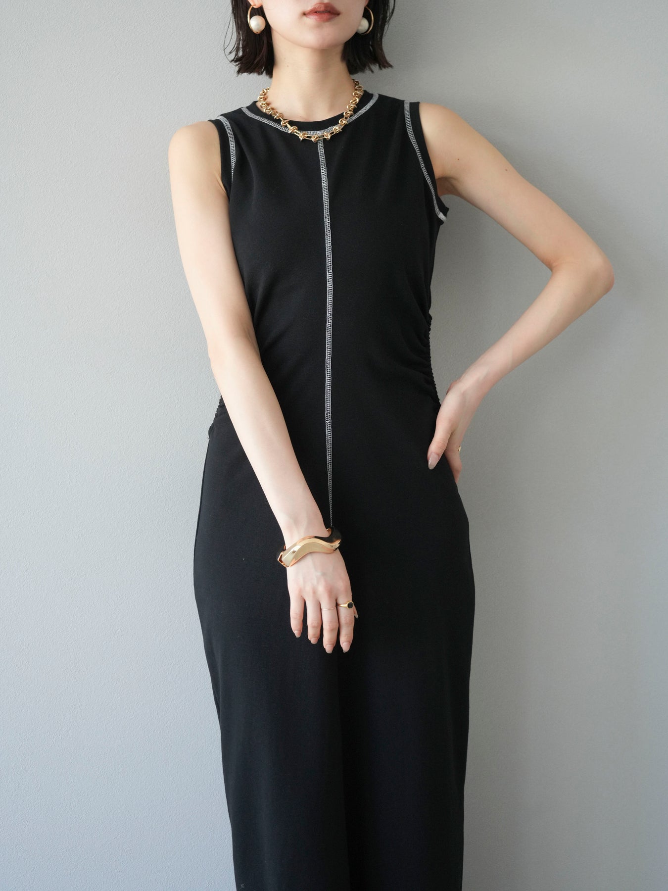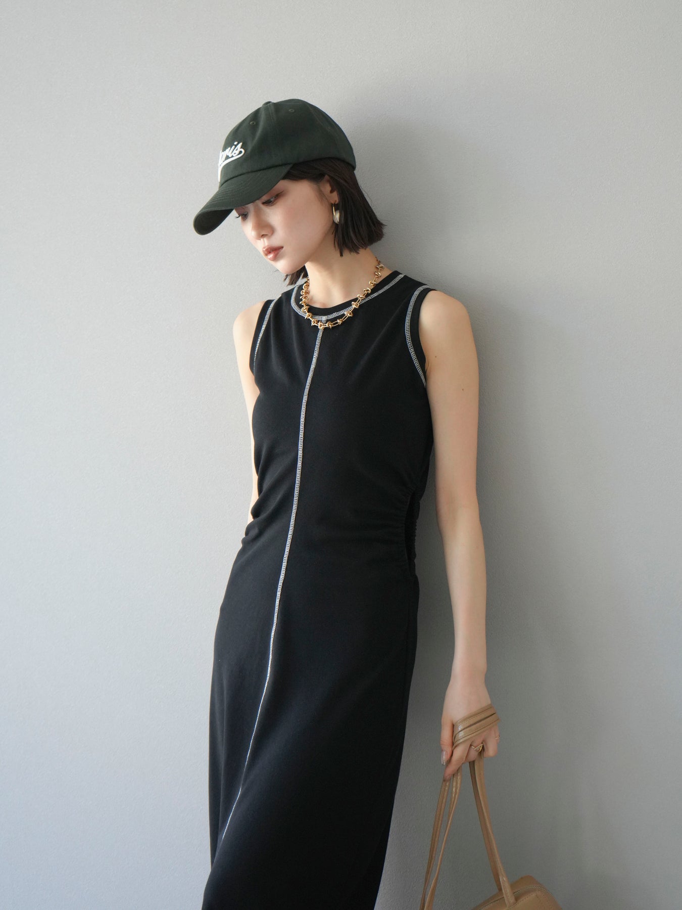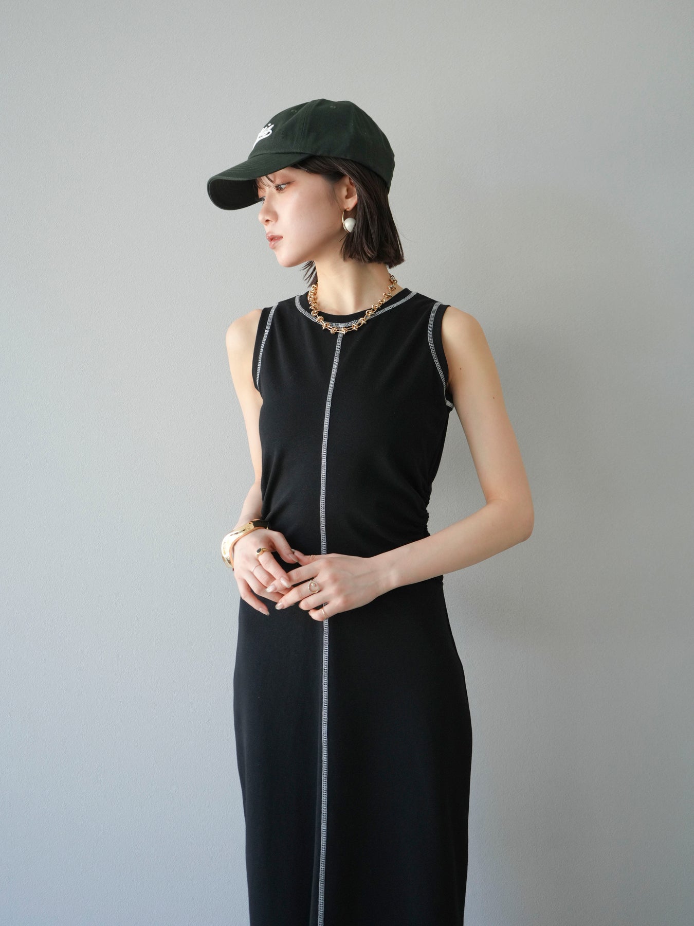 [予約]ウエストオープンステッチカットワンピース/ブラック