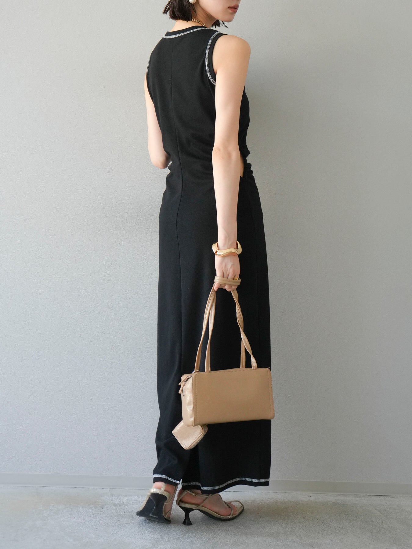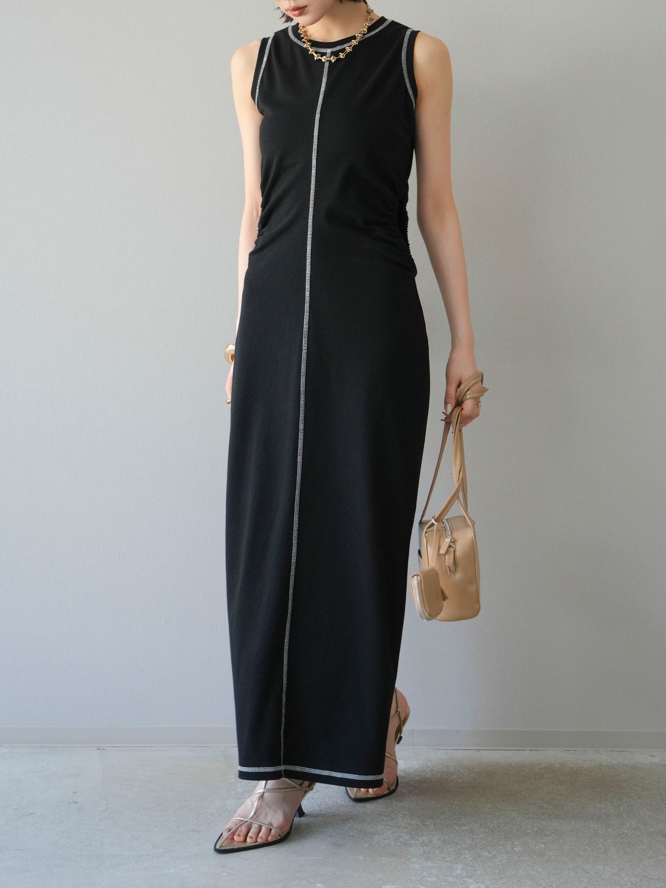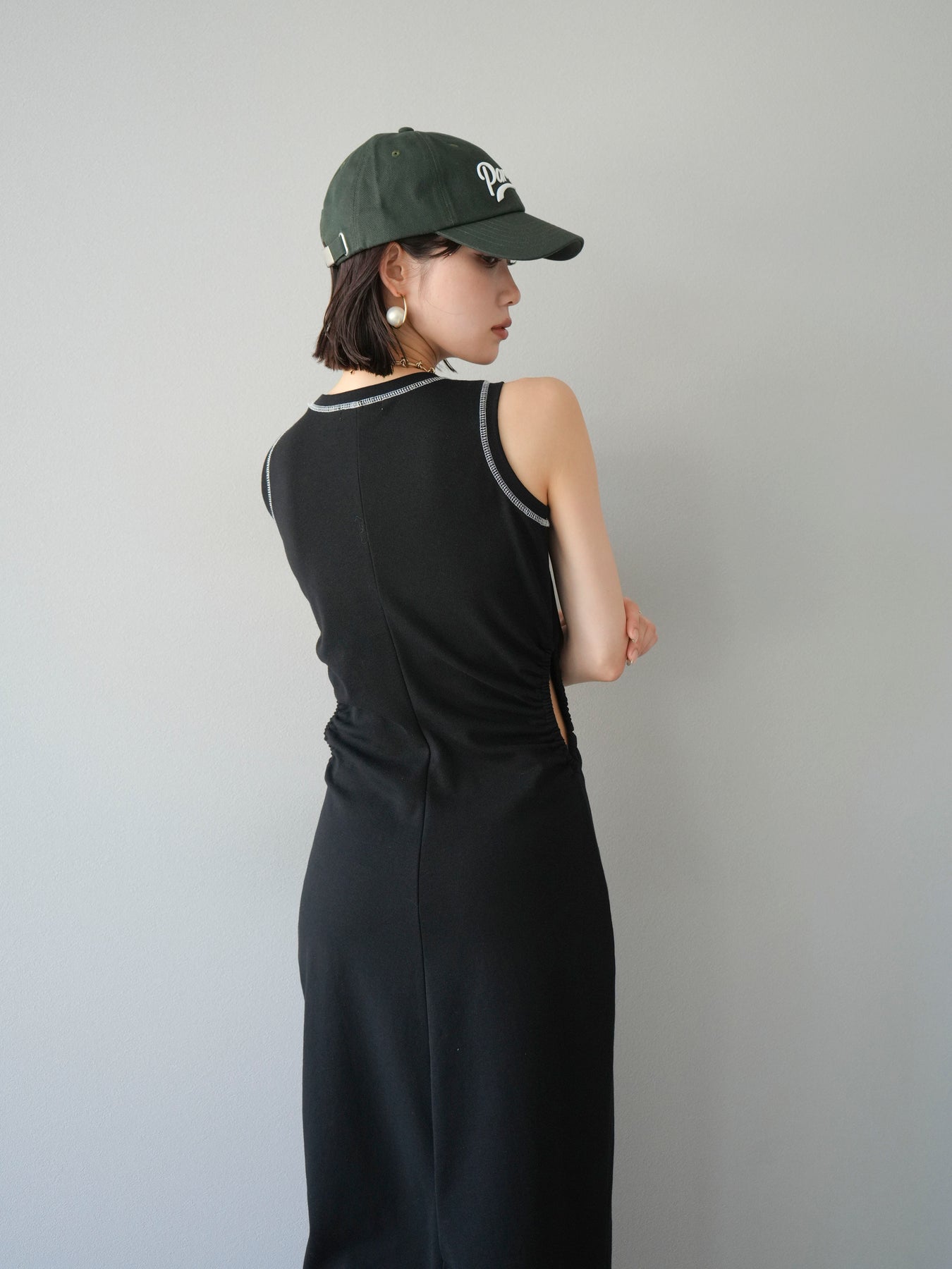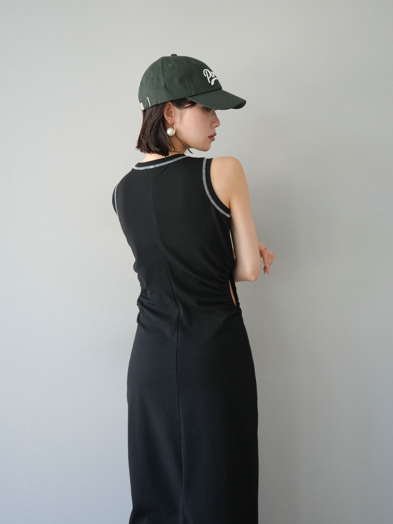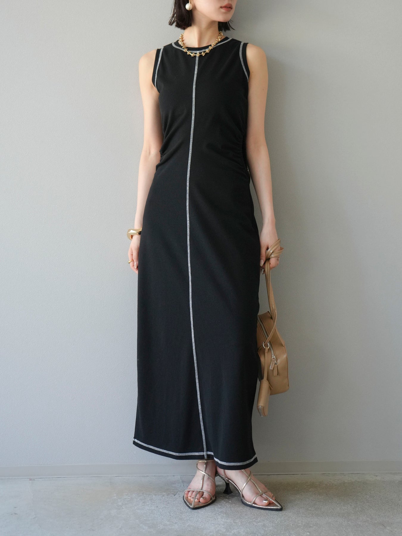 [予約]ウエストオープンステッチカットワンピース/ブラック